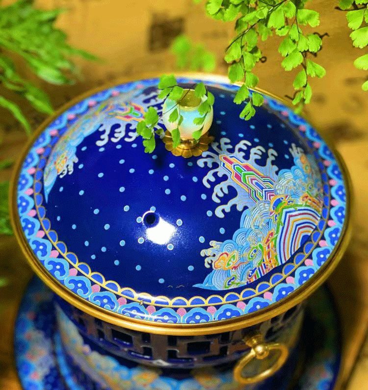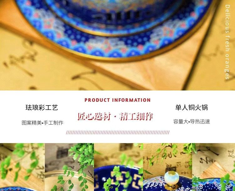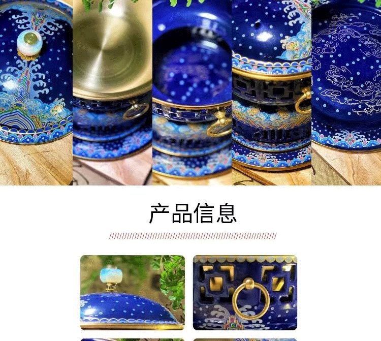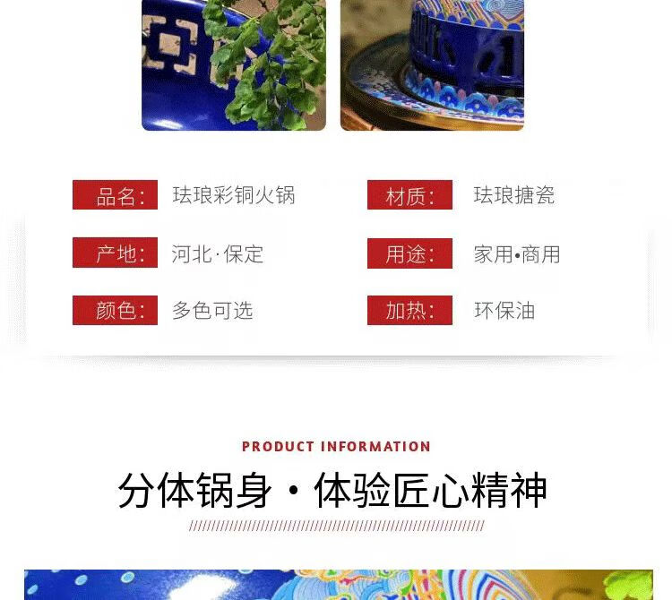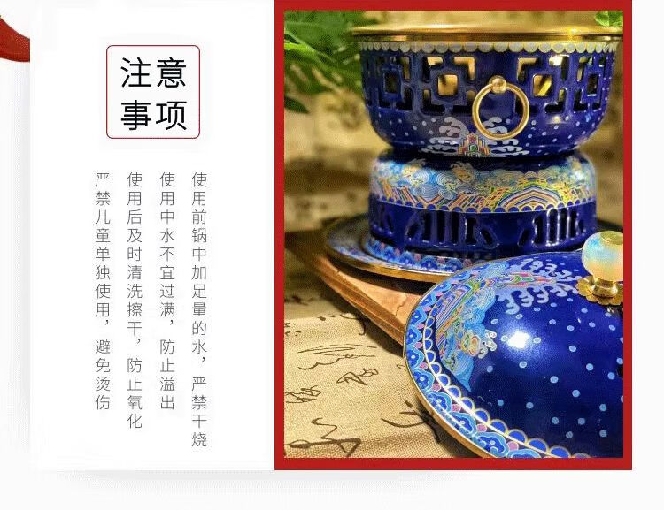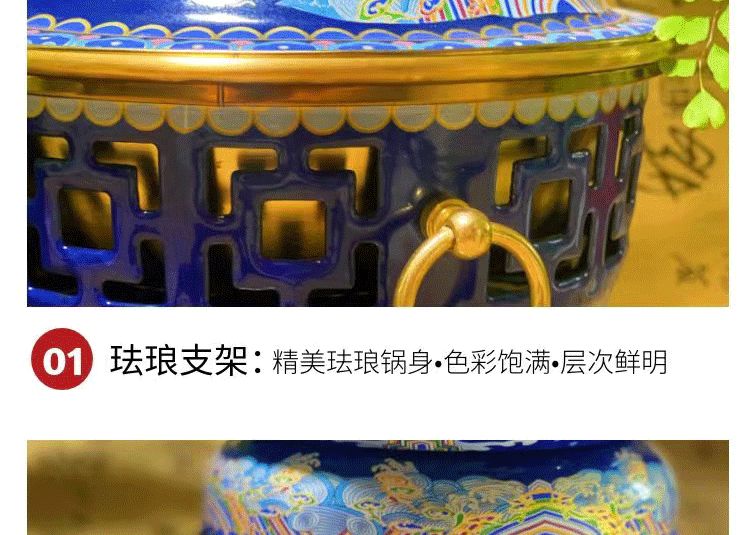 Cloisonné pure copper household small hot pot for one person and one pot enamel household small copper pot alcohol pot single person copper hot pot 1 inch white background Chinese style stainless steel inner pot oil delivery box + wick + oil