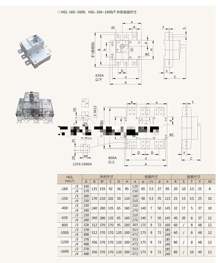 GJXBP Shanghai People's Electrical Appliances load isolation switch HGL63032503J100012504160033 2000A