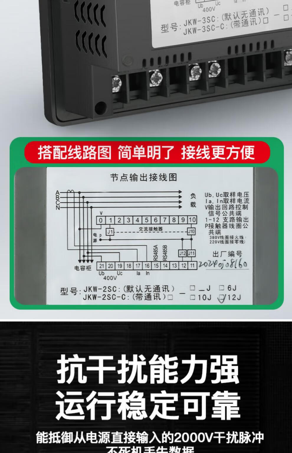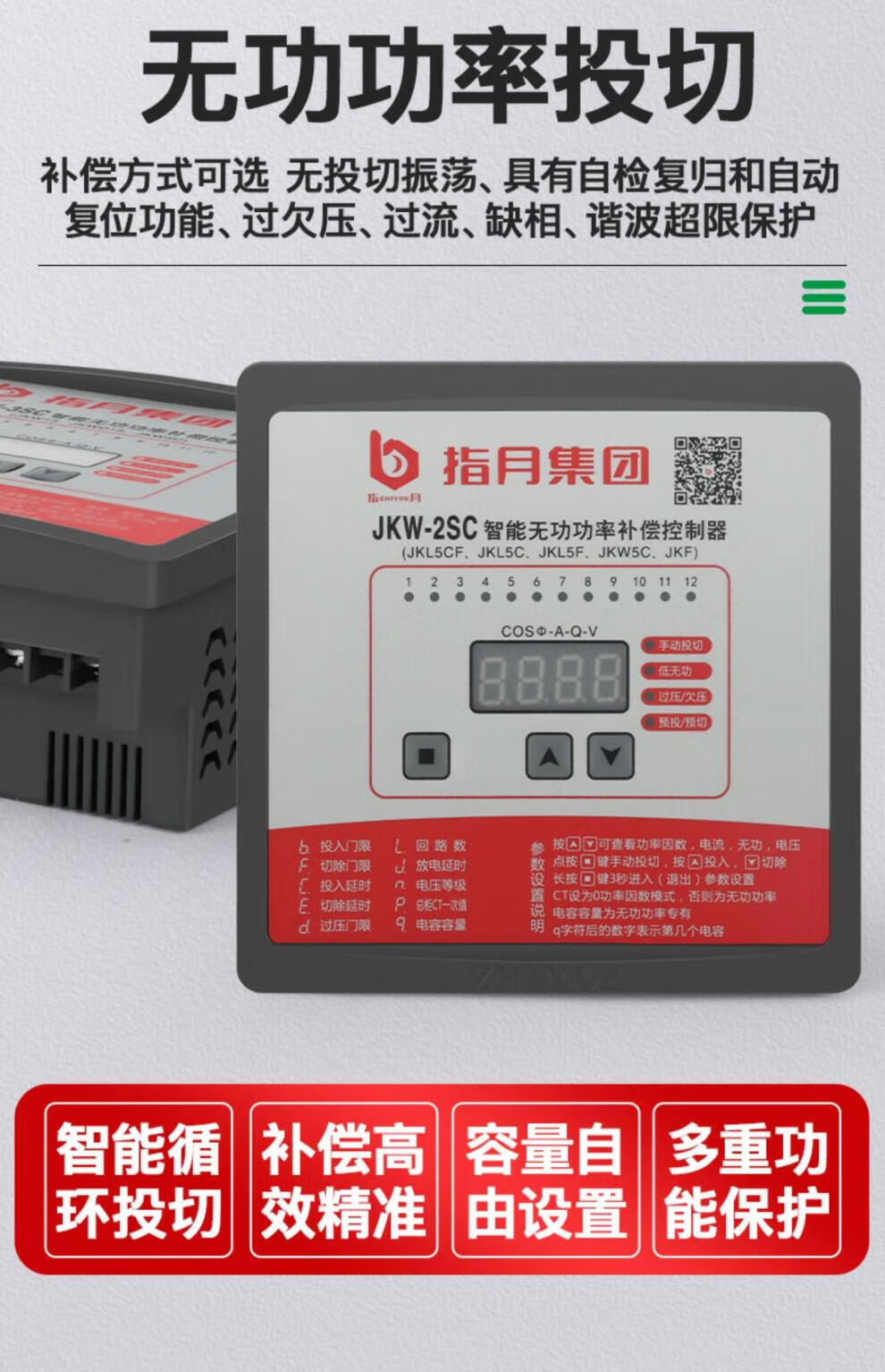 Zhiyue intelligent reactive power compensation controller JKW-2SC/DC/JKL5CF380v12 loop capacitor cabinet power JKW-2SC-12J/380V/total compensation