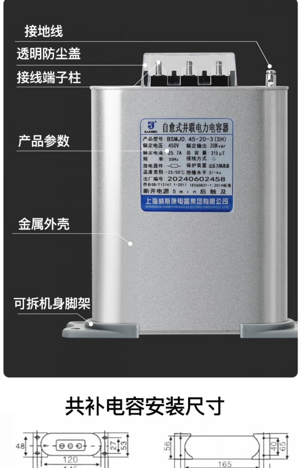 Shanghai Viscon compensation parallel power capacitor 0.45-20-3 30-3 40 50 15Kvar SH Viscon BSMJ0.525-60-3