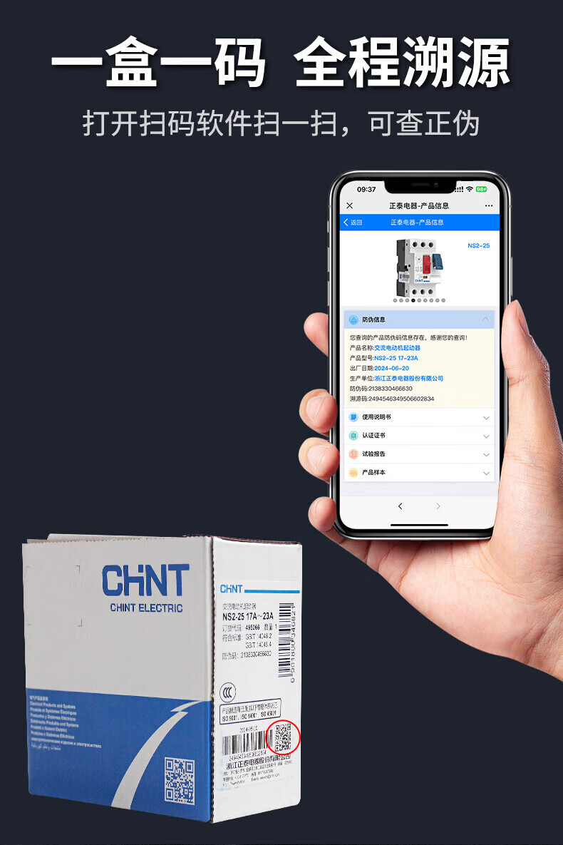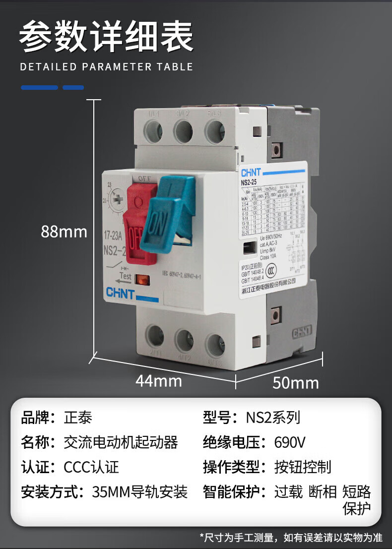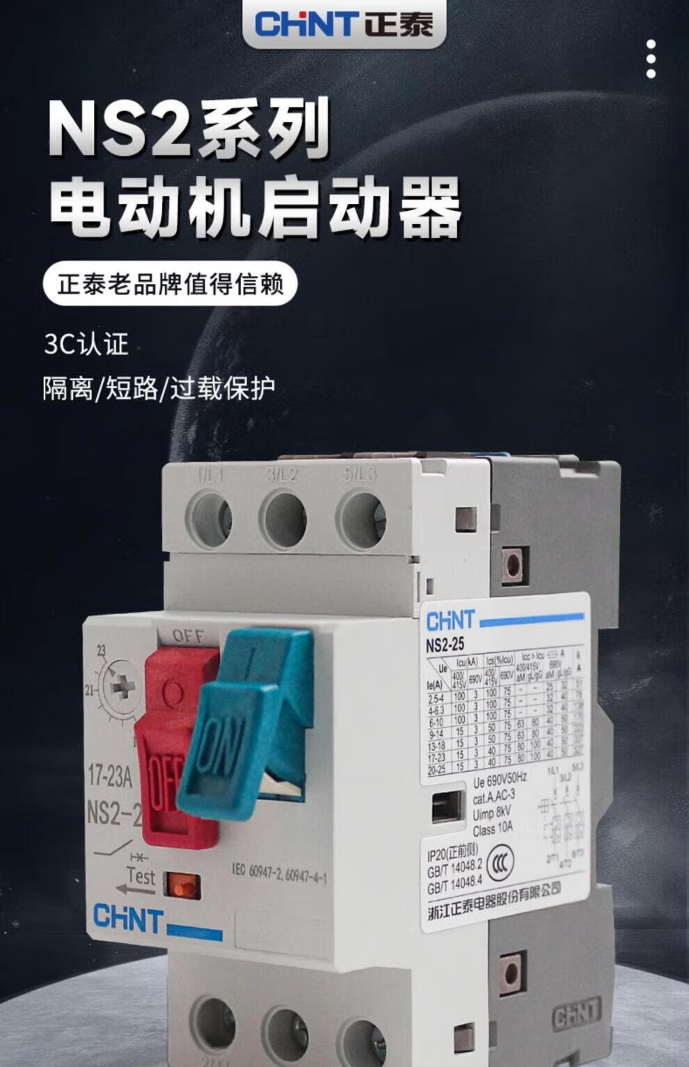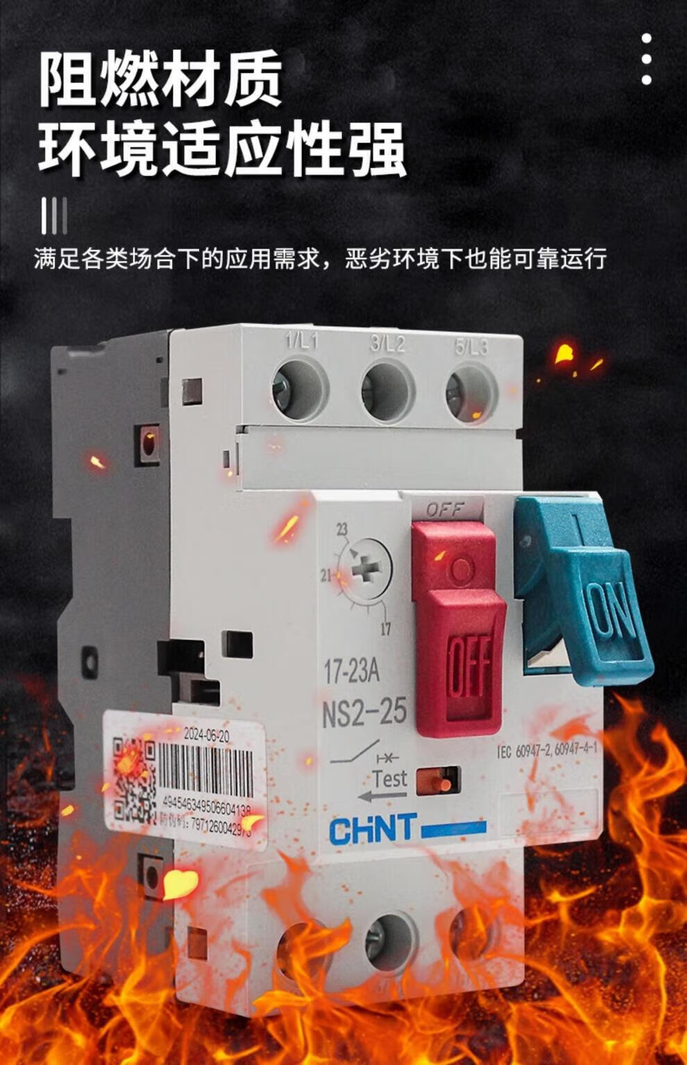 Chint motor protector NS2-25 motor starter three-phase motor overload short circuit protection circuit breaker NS2-25-0.16-0.25A