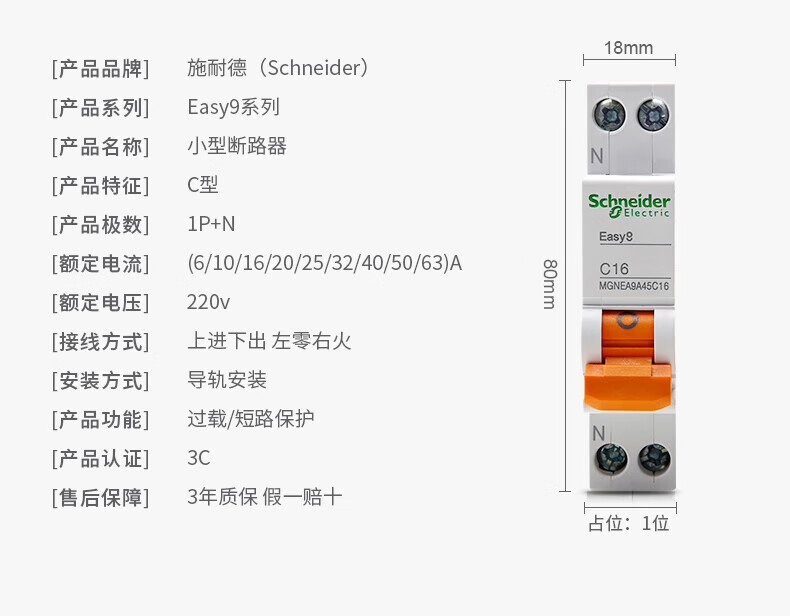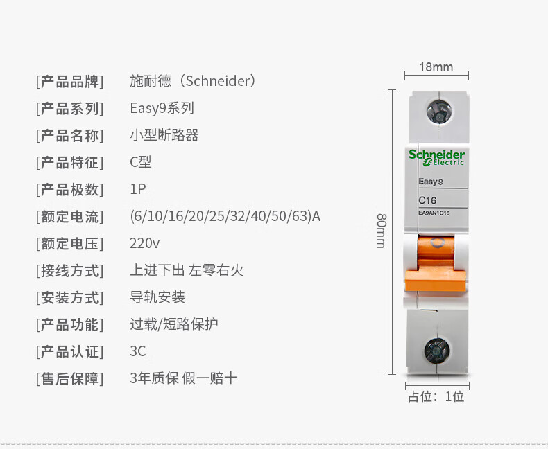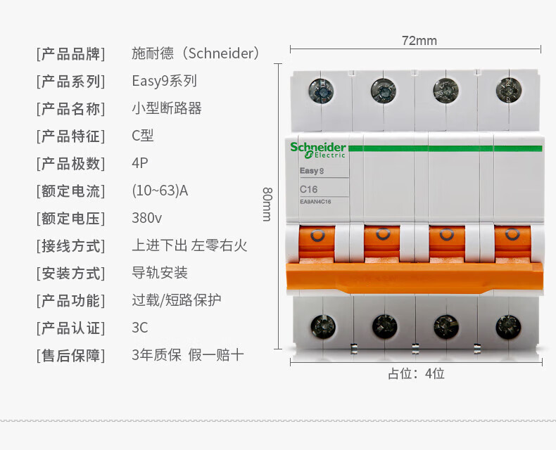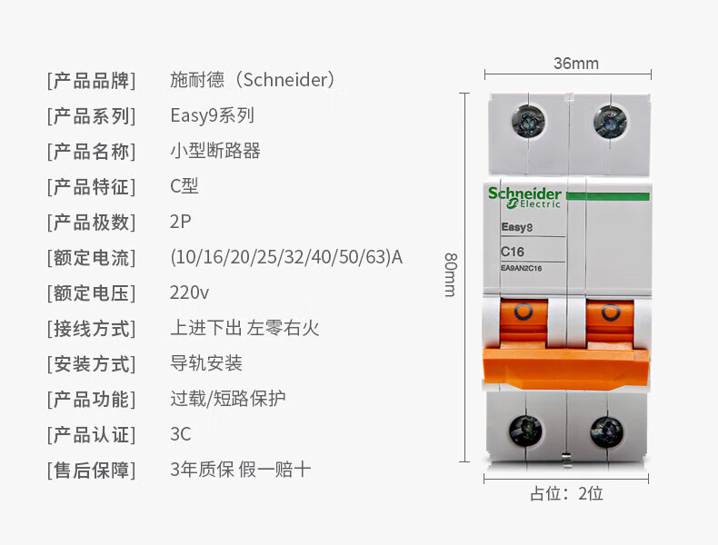 Schneider AN small air circuit breaker 1P/2P/3P/4P 6A-63A household electric switch air switch 4p 125A