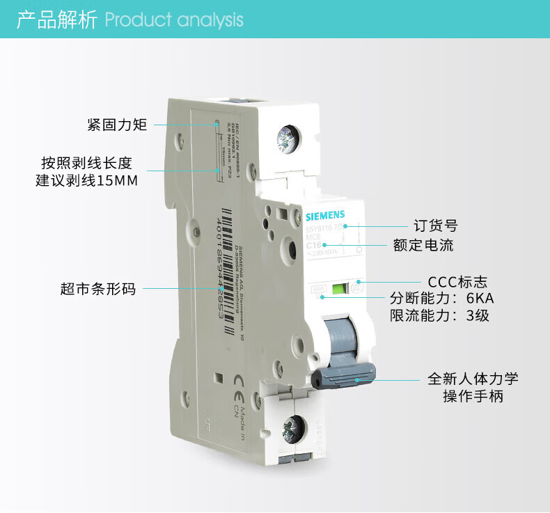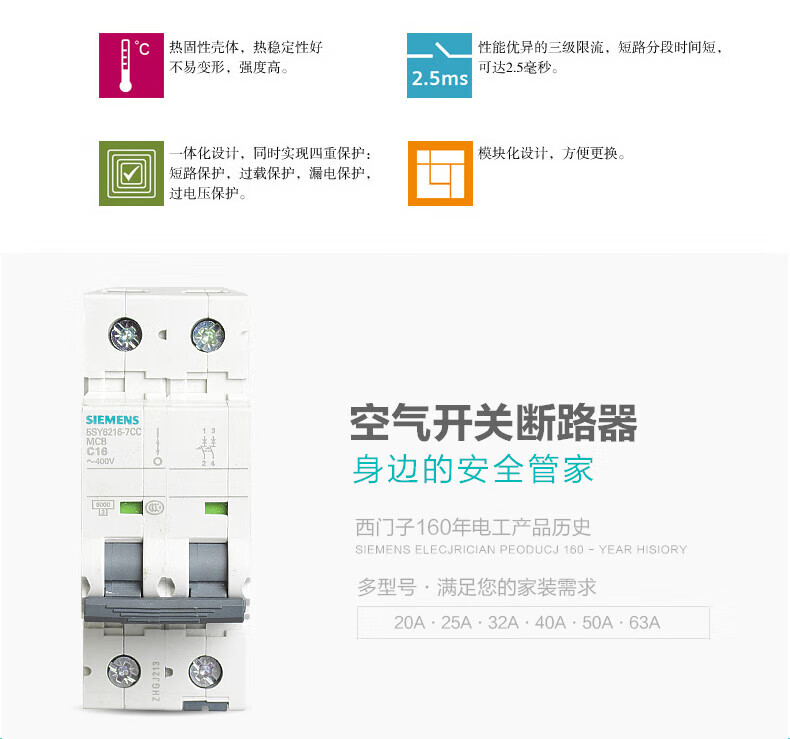 Siemens small circuit breaker 5SY6 5SY41P/2P/3P/4P/ 1A-16A-32A miniature air switch 1A Type C x 1P+N x 5SY4