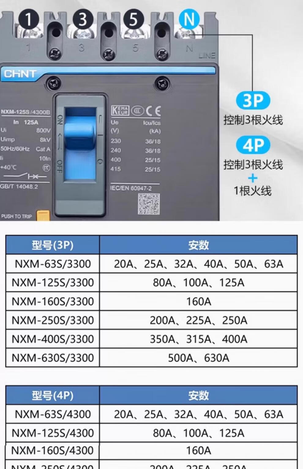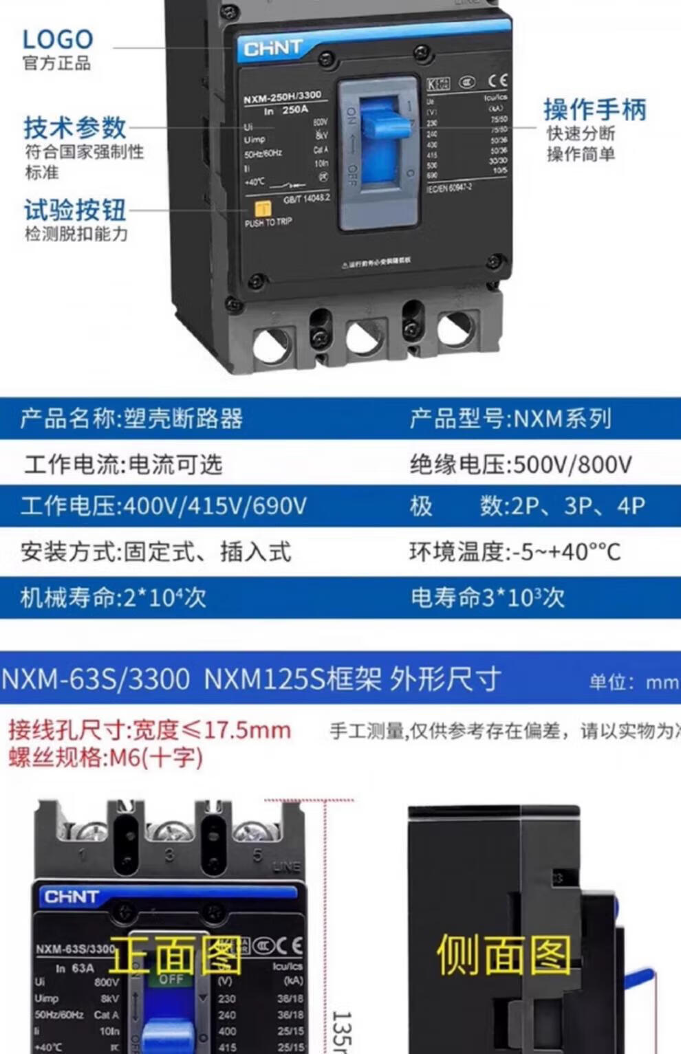 Chint plastic case circuit breaker NXM air switch overload short circuit protection 125A/250A/400A/three-phase four-wire 3P 40A