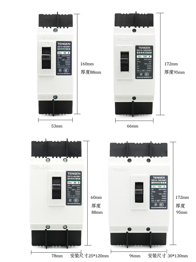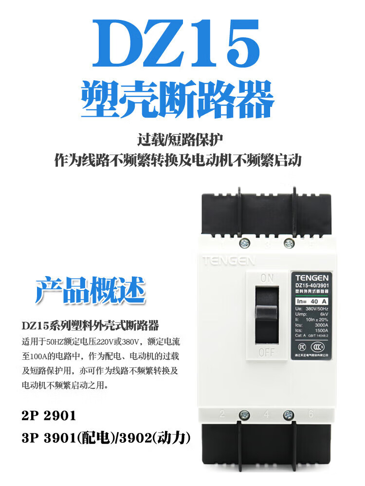 TENGEN Tianzheng DZ15-100/23901 100A63A40A32A molded case circuit breaker air switch 3902 DZ15-40/290140A