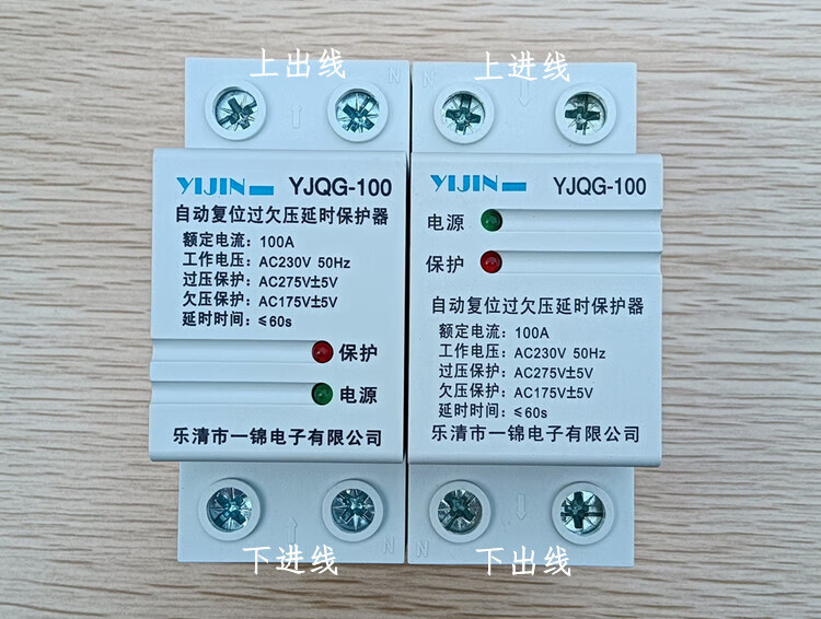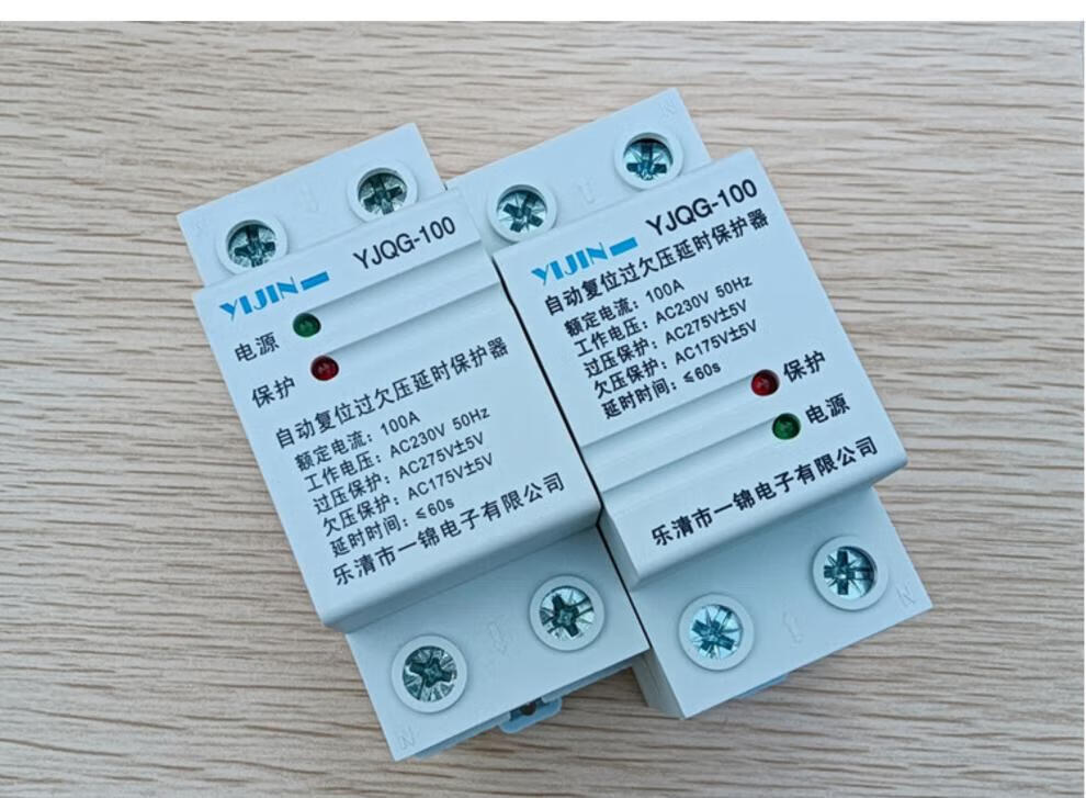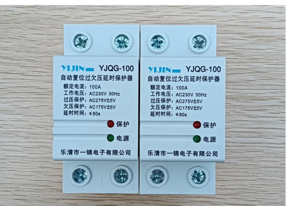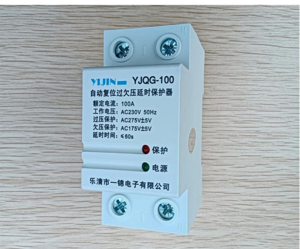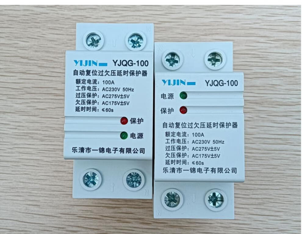 Yijin self-resetting over-voltage and under-voltage protector YJQG-100 automatic reset delay switch household 2P100A80A white 80A lower incoming line and upper outgoing line