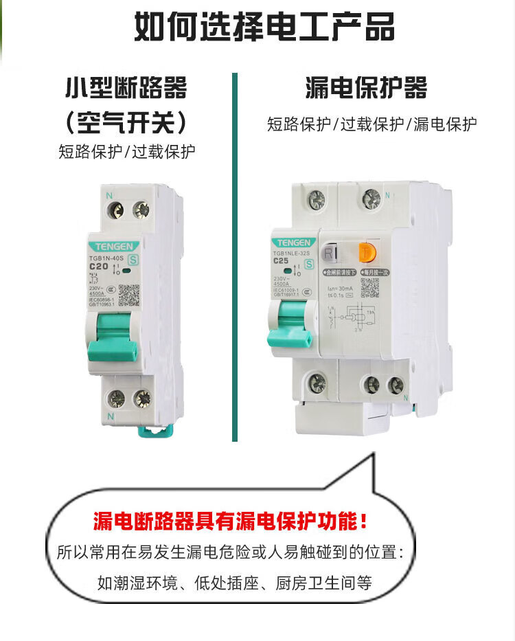 Tianzheng Electric's new 2P leakage protection 63A circuit breaker 3P+N 4P 32A circuit breaker 1P+N leakage protection picture color 100A4p