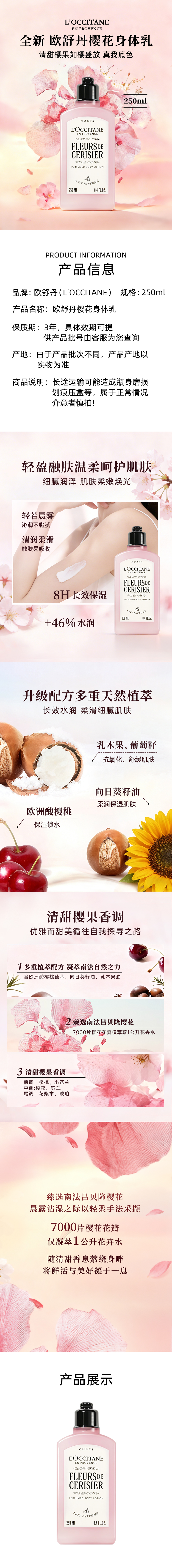 L OCCITANE Body Lotion Cherry Blossom Shower Gel Sweet Almond Shower Oil Body Lotion Moisturizing Wedding Souvenir New Year's Gift L'Occitane Sweet Almond Body Lotion 200ml