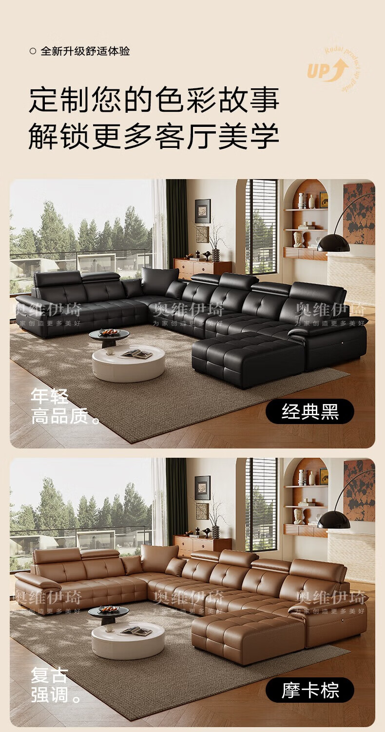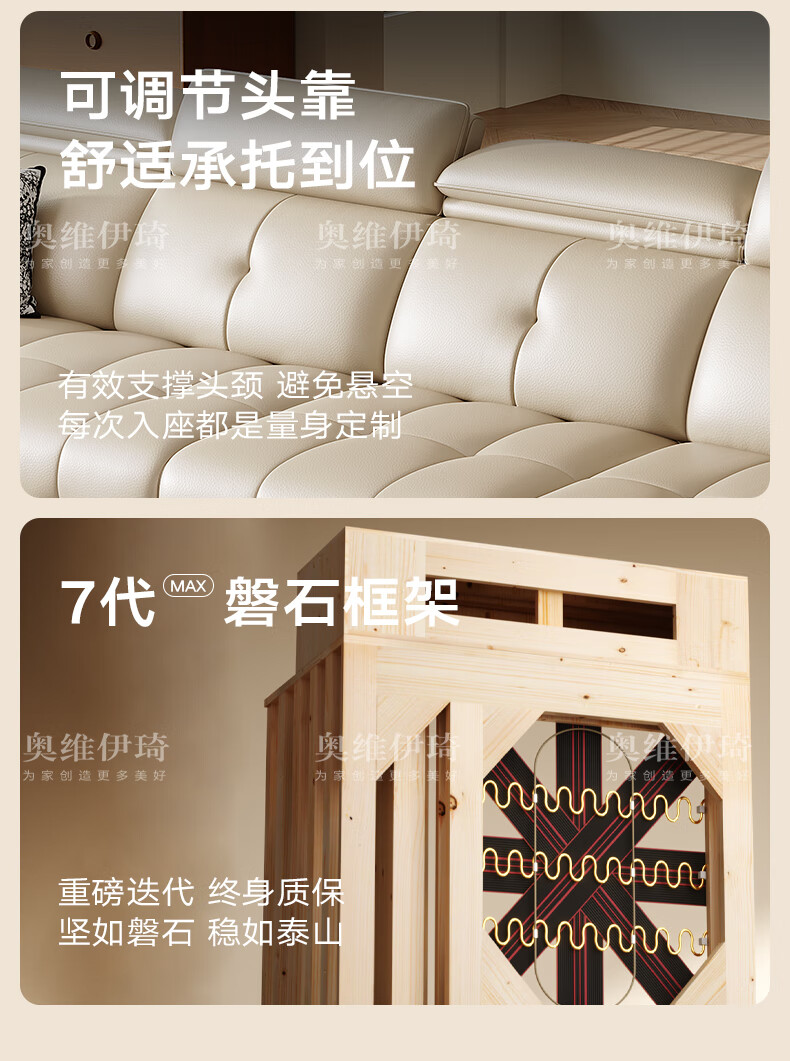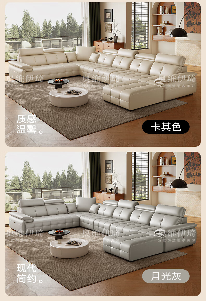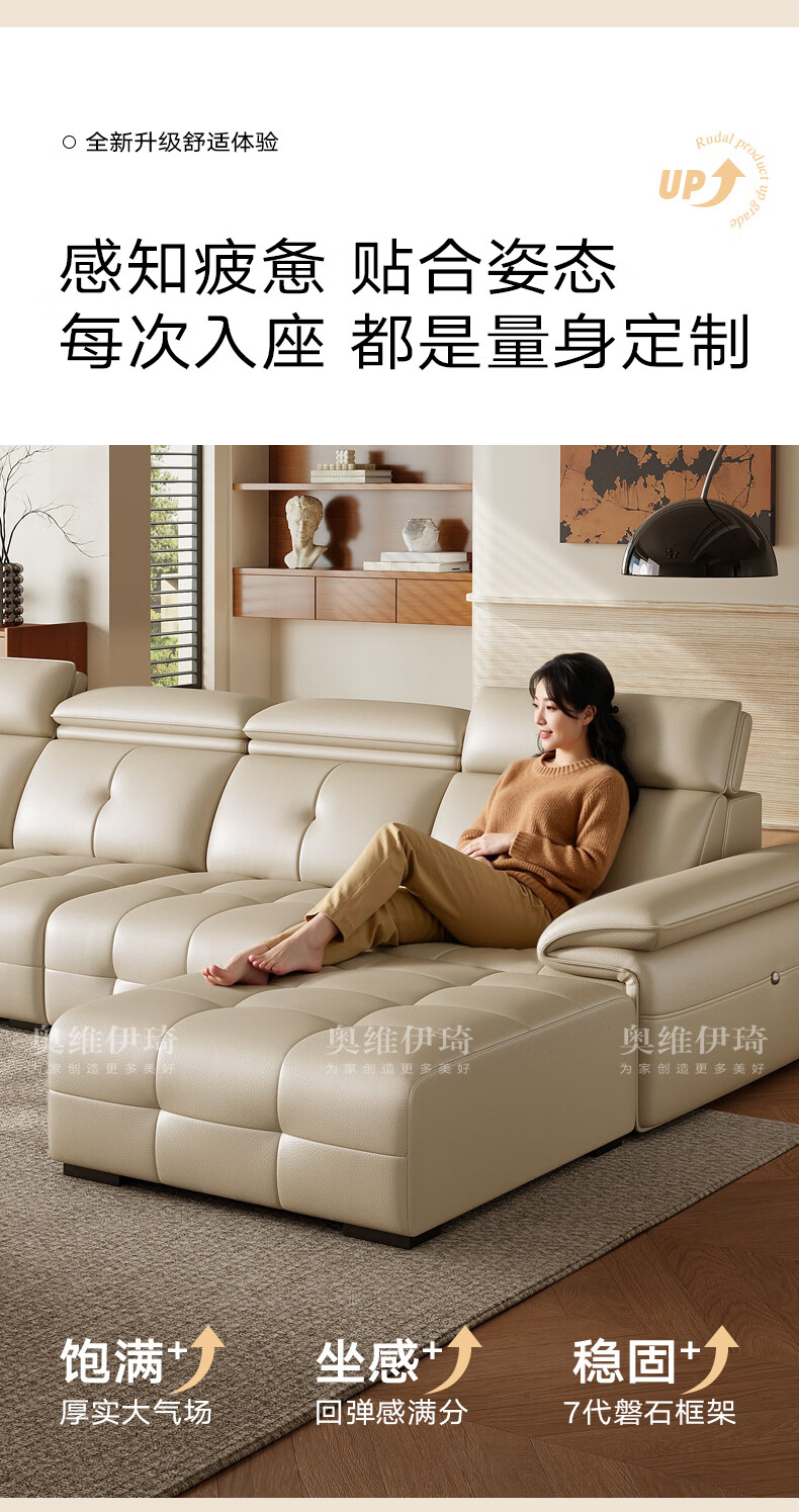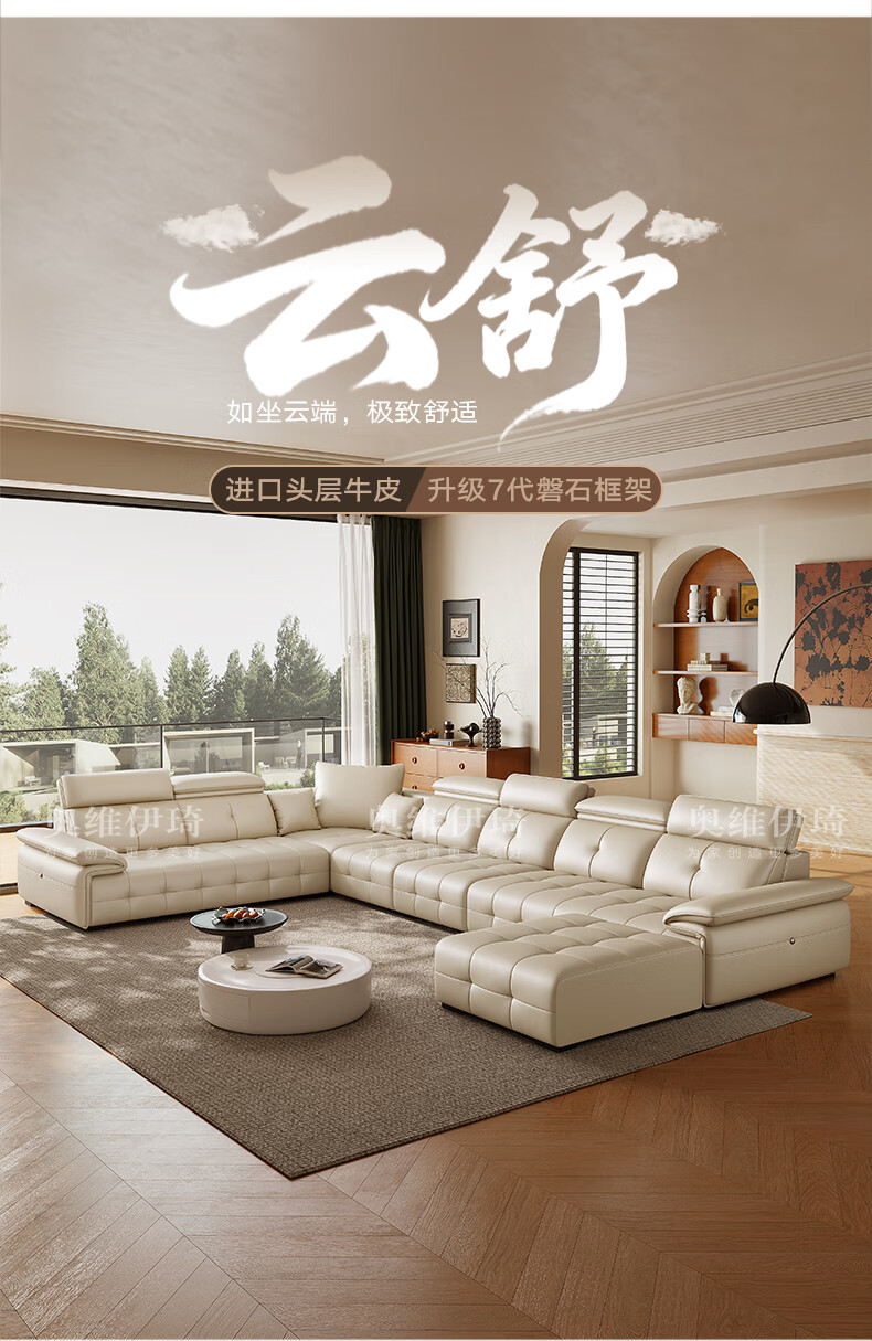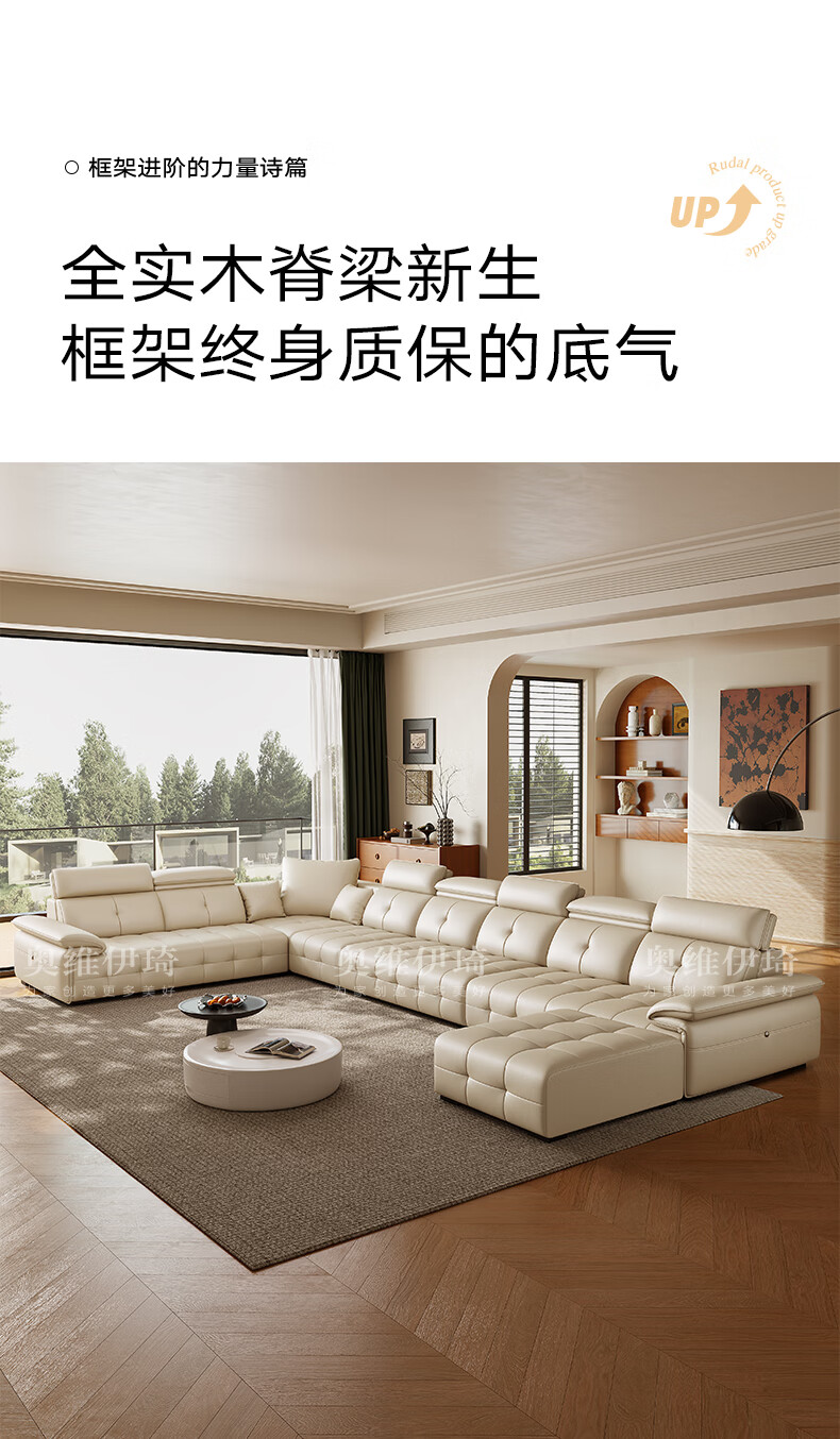 Oviyiqi state-subsidized leather sofa living room 2025 new large-sized first-layer yellow leather imperial concubine leather art sofa 3.1 meters multi-seater five-piece set newly upgraded frame-lifetime warranty deluxe version (contact surface) 2.4mm imported first-layer yellow leather
