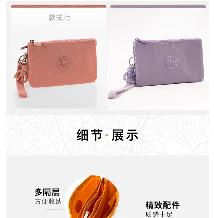 Keplin Keplin Waterproof Monkey Clutch Casual Fashion Nylon Handbag Thick Fabric Three-Layer Coin Purse Mobile Phone Bag Spray Painted Rose Gold