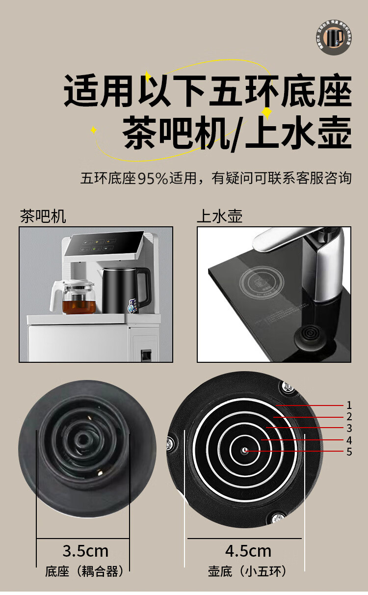 Tea bar machine accessories kettle universal small five-ring suitable for water dispenser glass kettle sold separately accessories tea bar machine kettle 1L