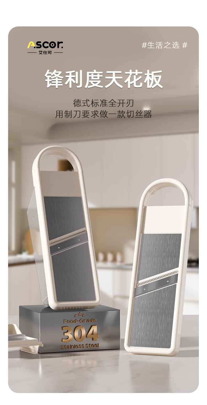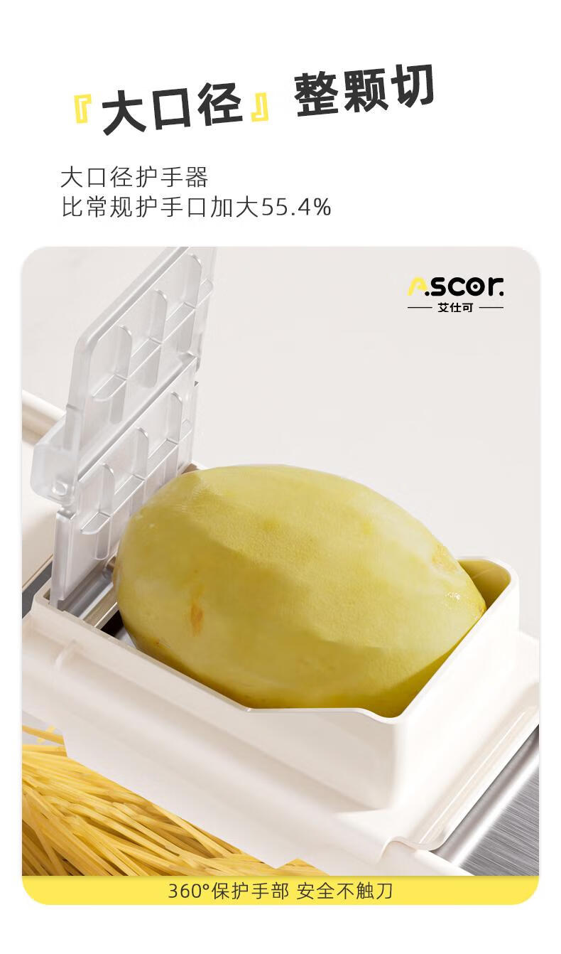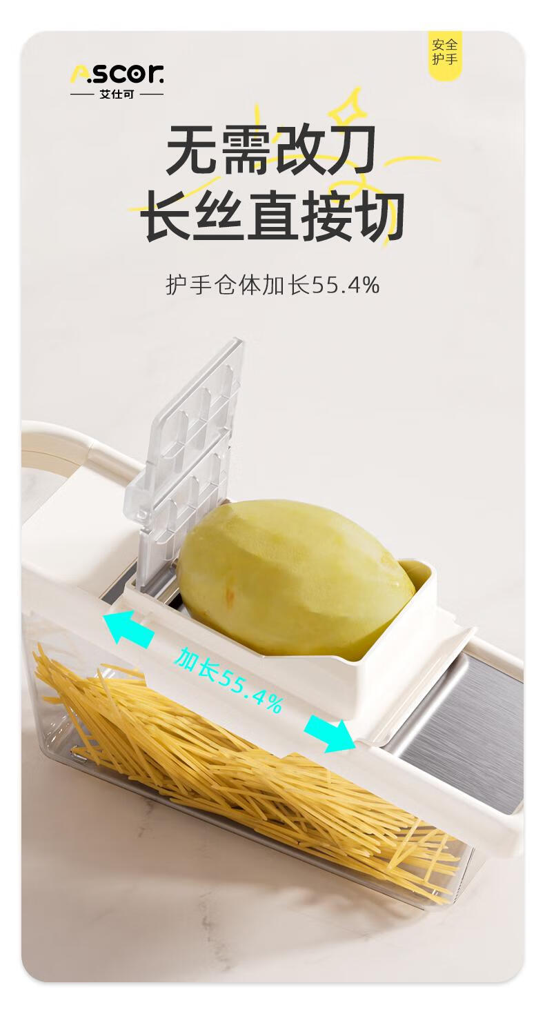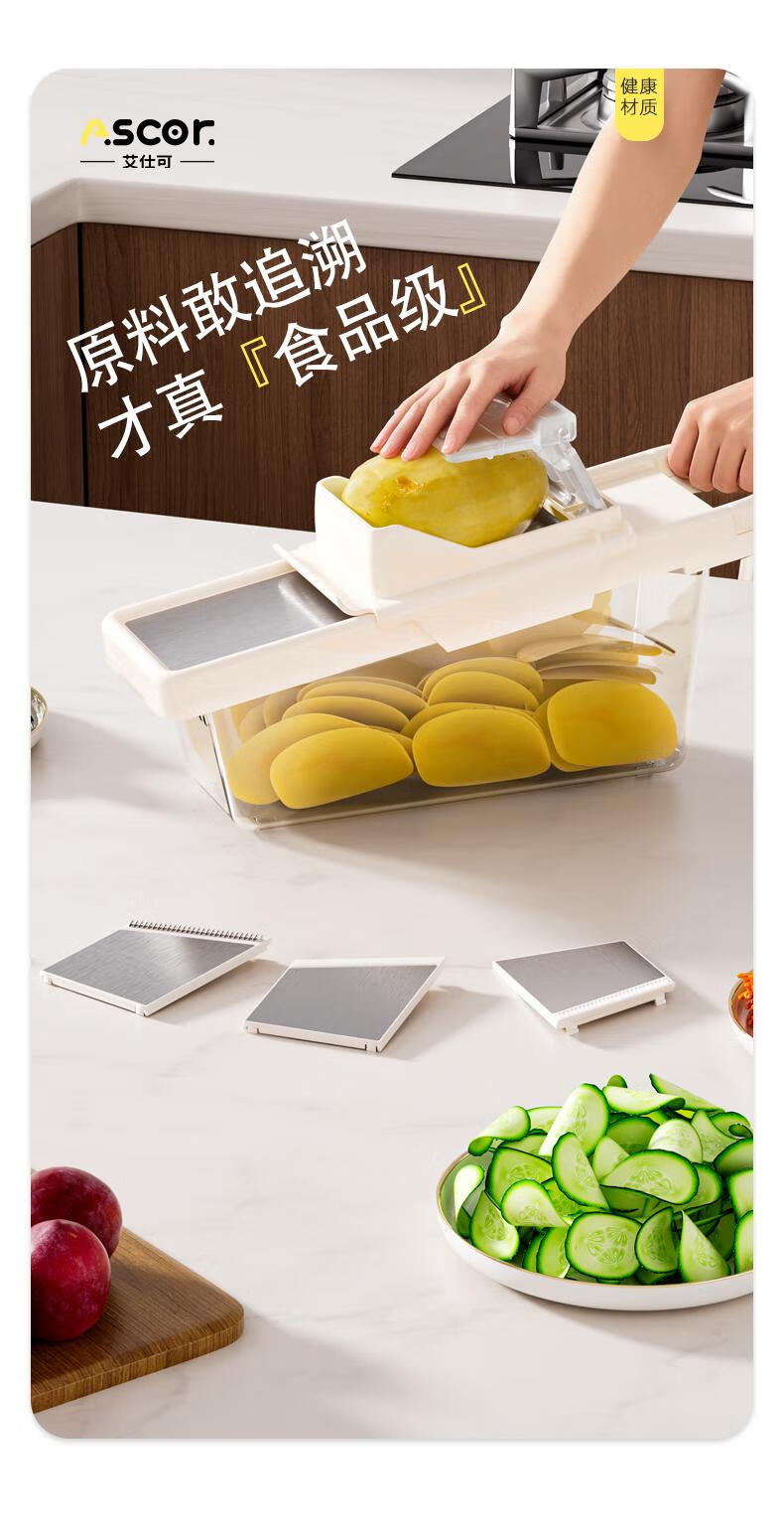 ASCOR grater household potato grater multifunctional vegetable cutter new scraper does not hurt your hands kitchen shredding artifact stainless steel vegetable cutter + hand guard + slicing + thick shreds + drain basket