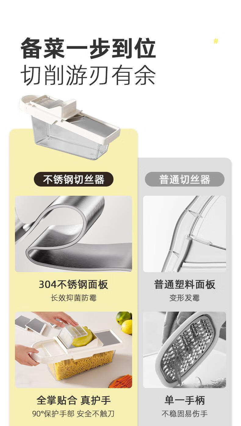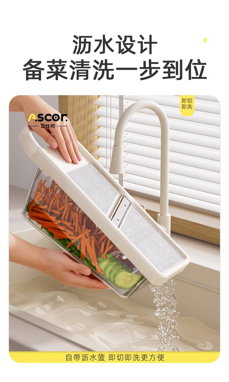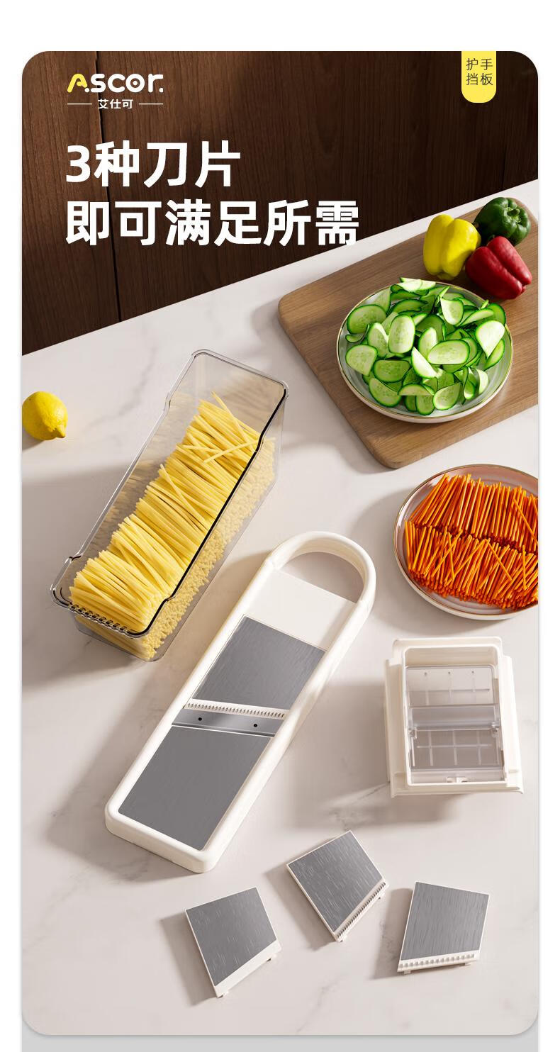 ASCOR grater household potato grater multifunctional vegetable cutter new scraper does not hurt your hands kitchen shredding artifact stainless steel vegetable cutter + hand guard + slicing + thick shreds + drain basket