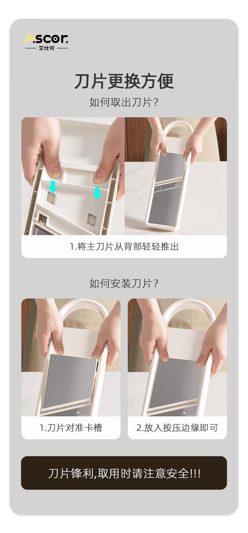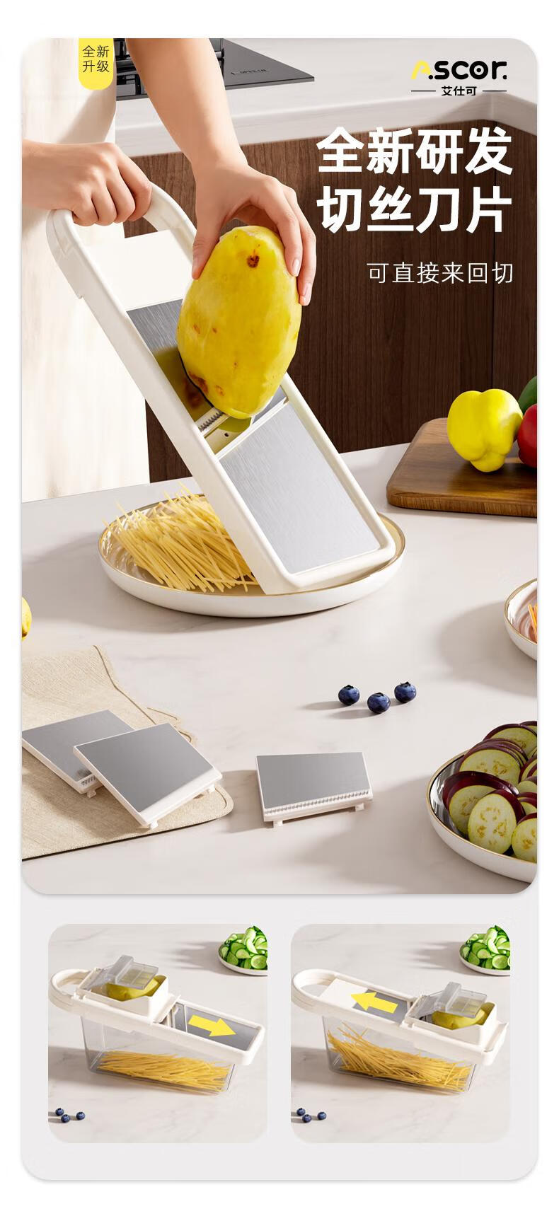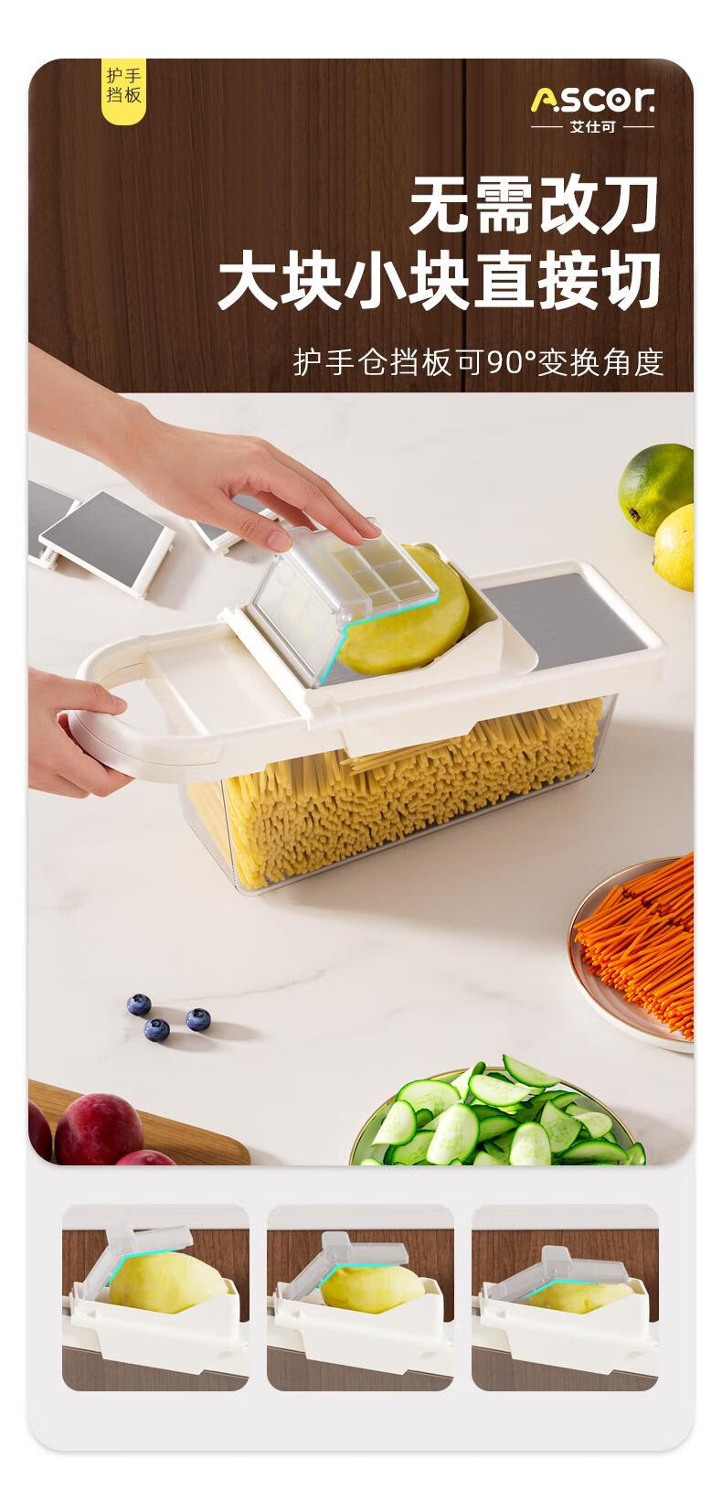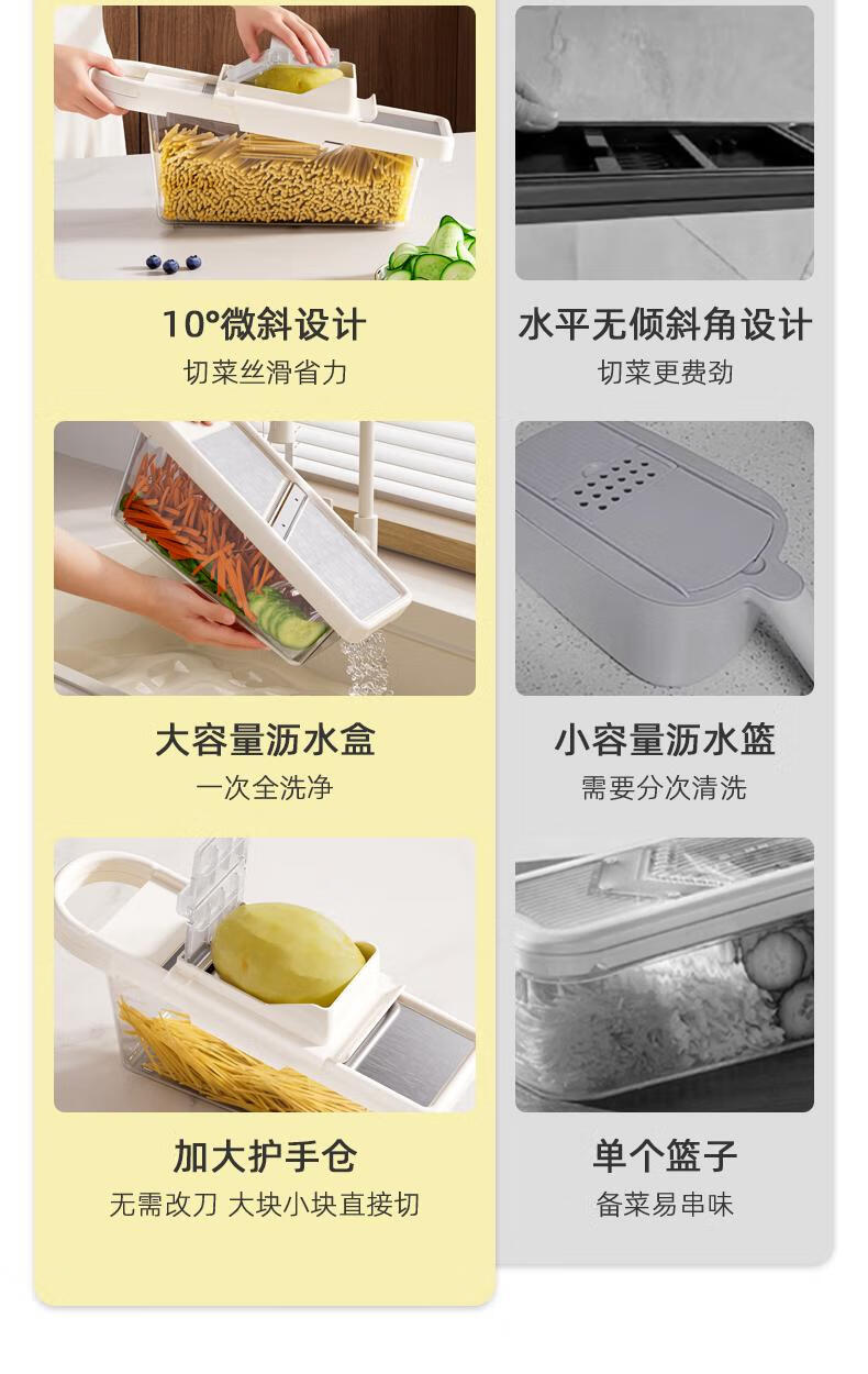 ASCOR grater household potato grater multifunctional vegetable cutter new scraper does not hurt your hands kitchen shredding artifact stainless steel vegetable cutter + hand guard + slicing + thick shreds + drain basket