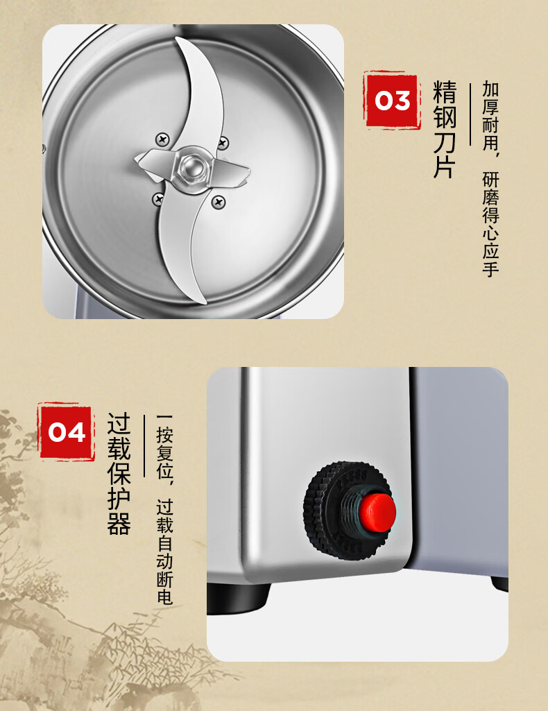 Fat Donglai's same style spice grinder grinder electric household small grinder grinder powder machine same style in Shangchao Supermarket 800g (copper motor)/six-leaf thickened steel blade.