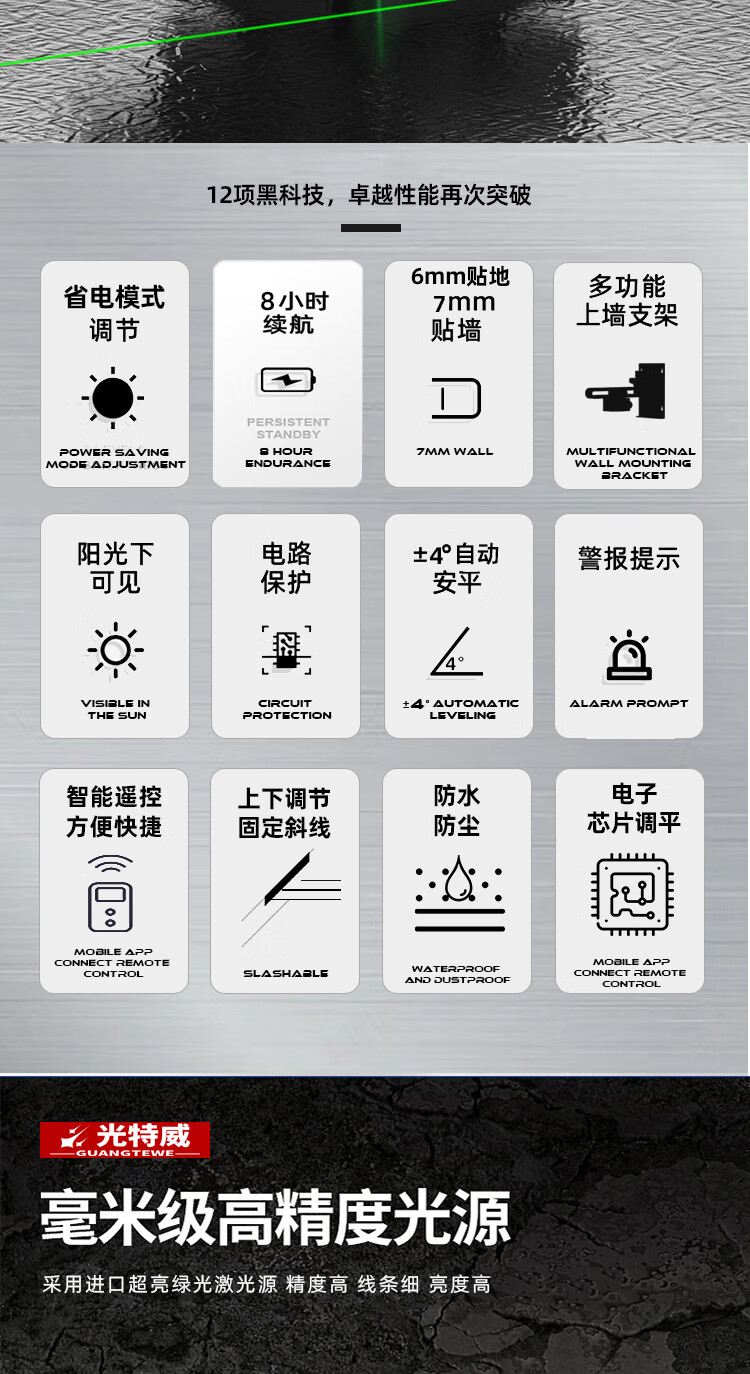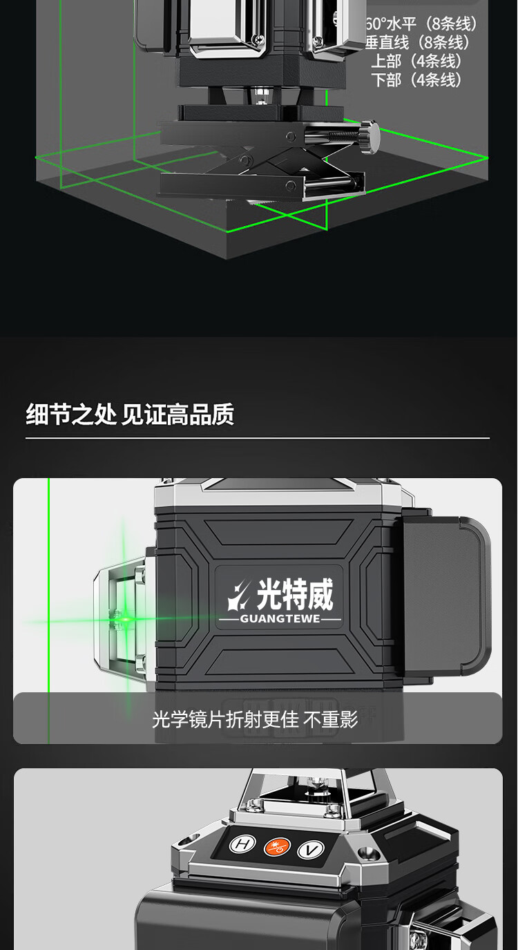 Yingtang High-Precision Strong Light Level 12-Line Wall-to-Ground Integrated Green Light 16-Line Big Mac Laser Automatic Leveling High-Precision Strong Light 8-Line Dual Electric