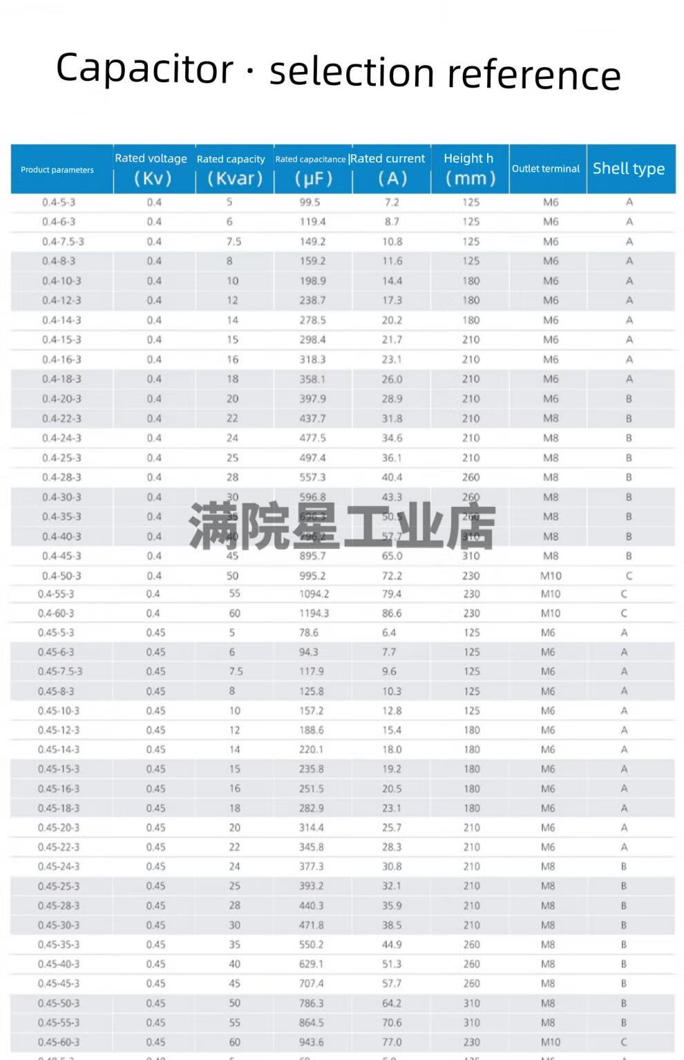 Refers to 0.4/0.45-30/3/1 self-healing parallel power supply capacitor 0.45-30-3