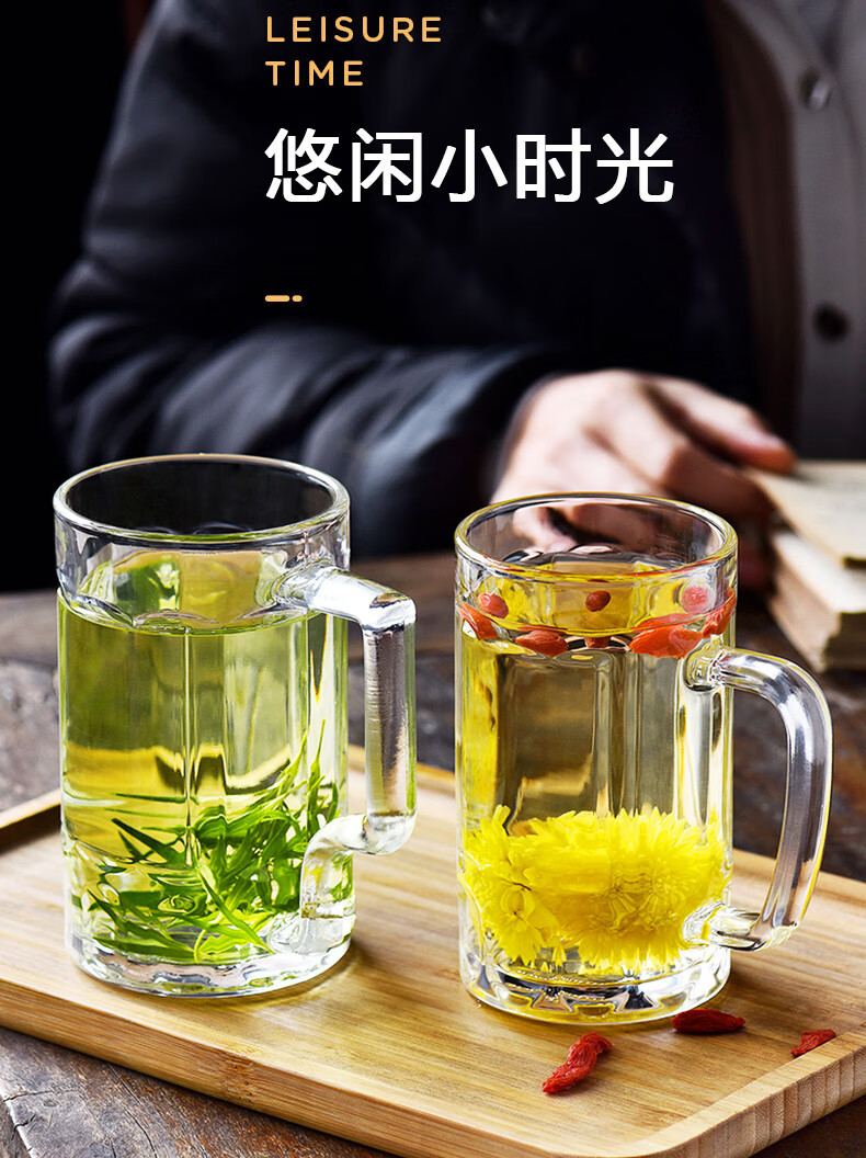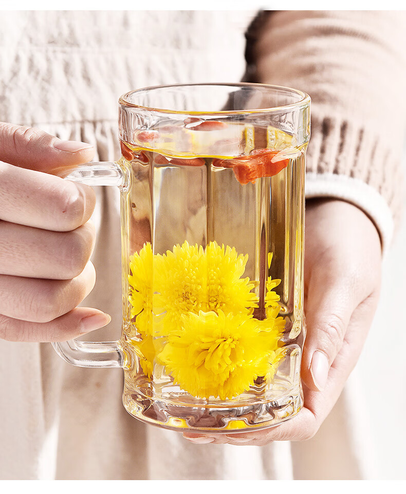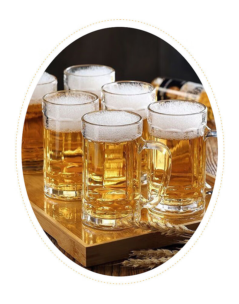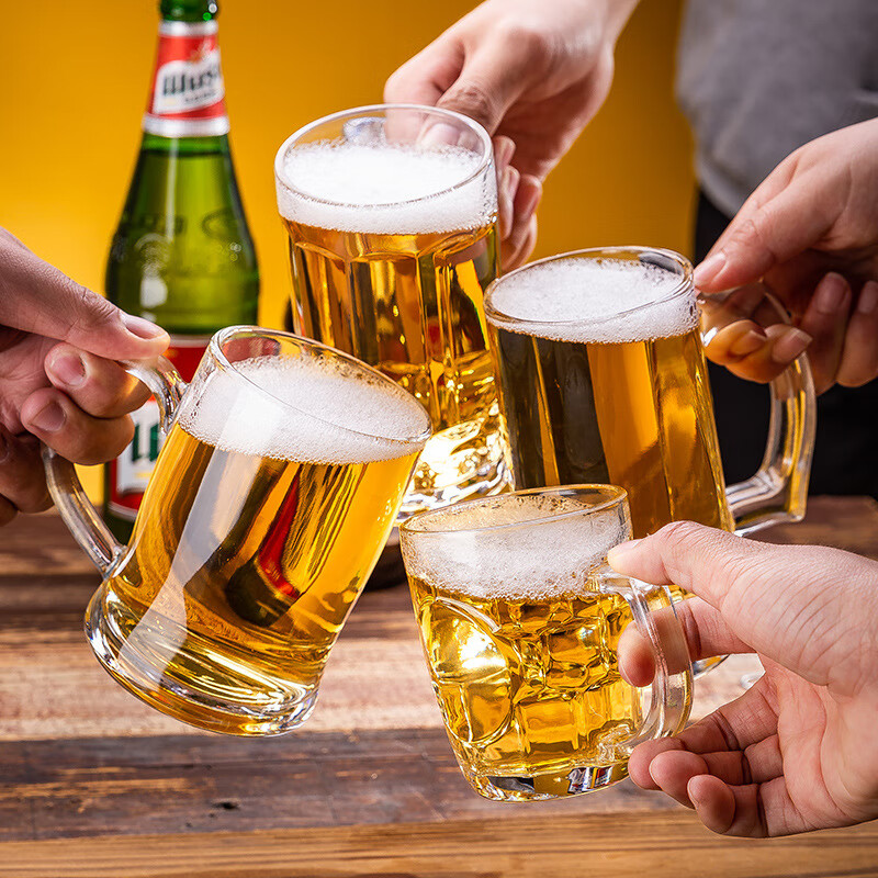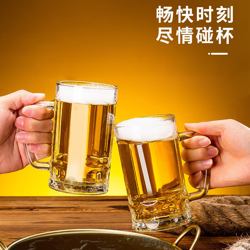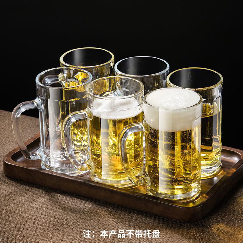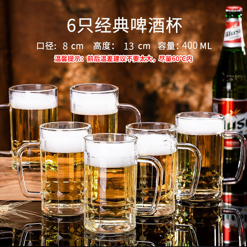Ershanji 6-piece beer mug, transparent glass mug with handle, draft beer mug, tea cup, juice cup, soda-lime glass, transparent glass mug with handle, 6-pack, 400ml