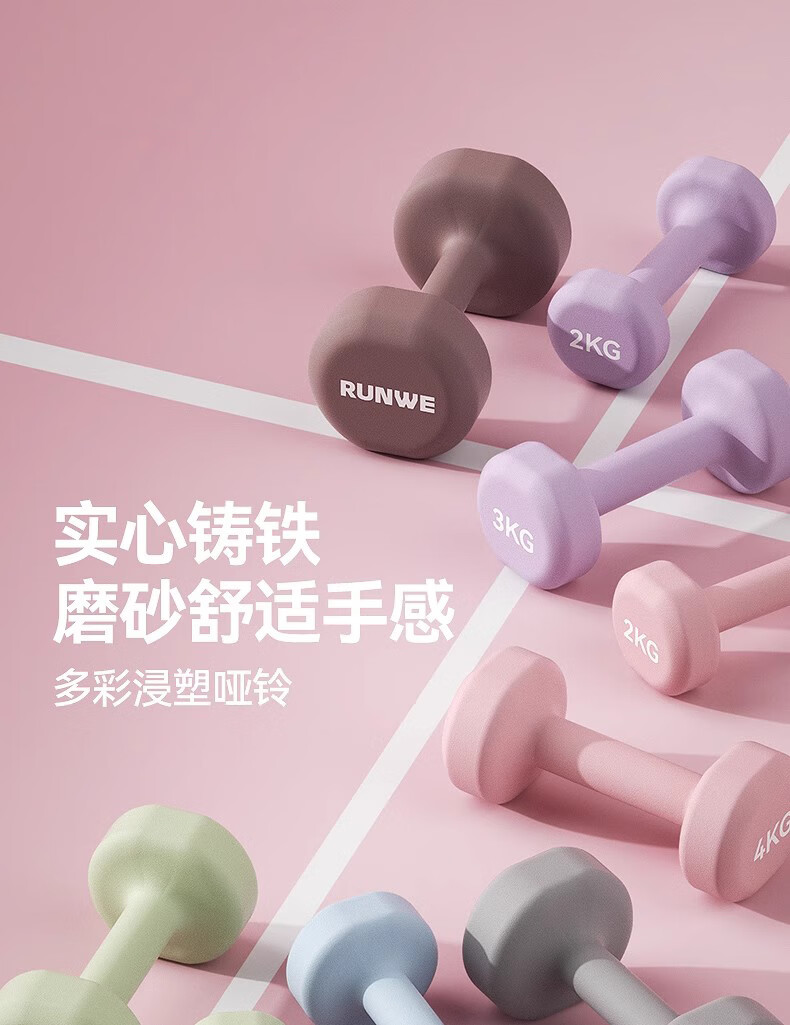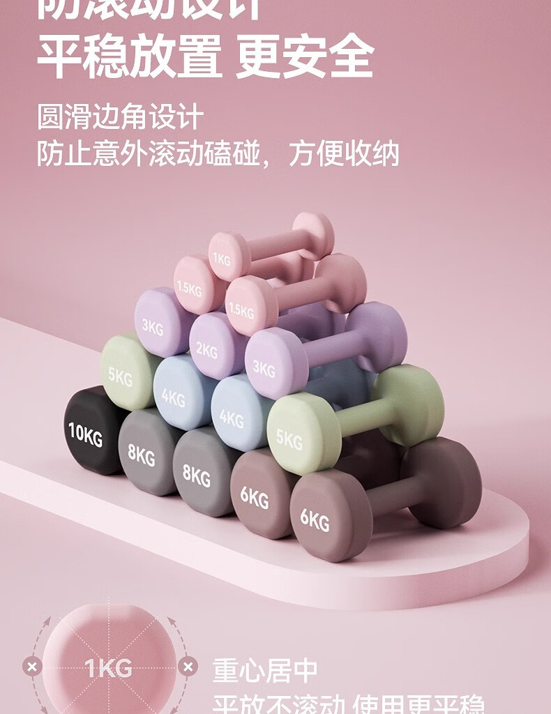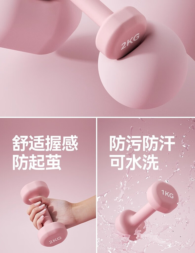 LDVEP German quality dumbbell women's fitness home equipment youth dumbbell adult strength training solid cast iron small cherry blossom powder 2KG_2 shaping aerobic