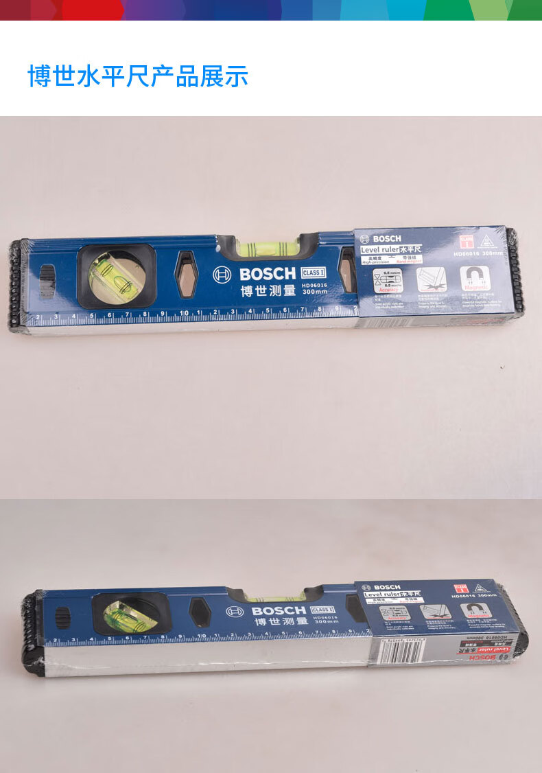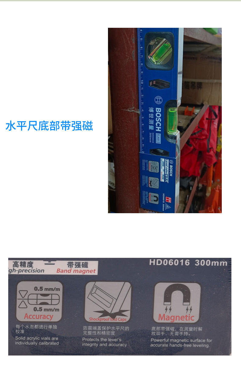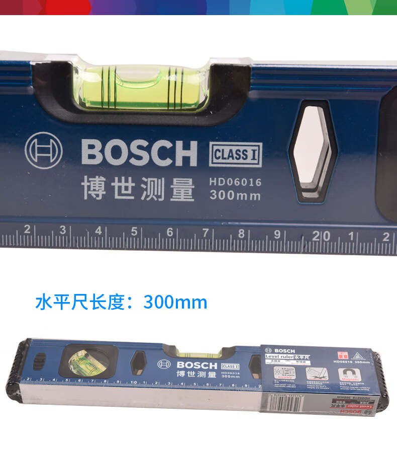Bosch (BOSCH) level 300mm thickened aluminum profile high-precision bottom magnetic level mini portable measuring instrument level 300mm magnetic HD06016