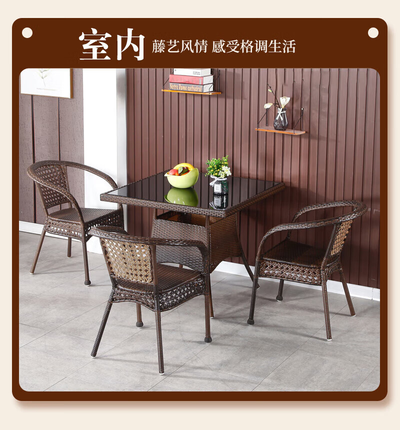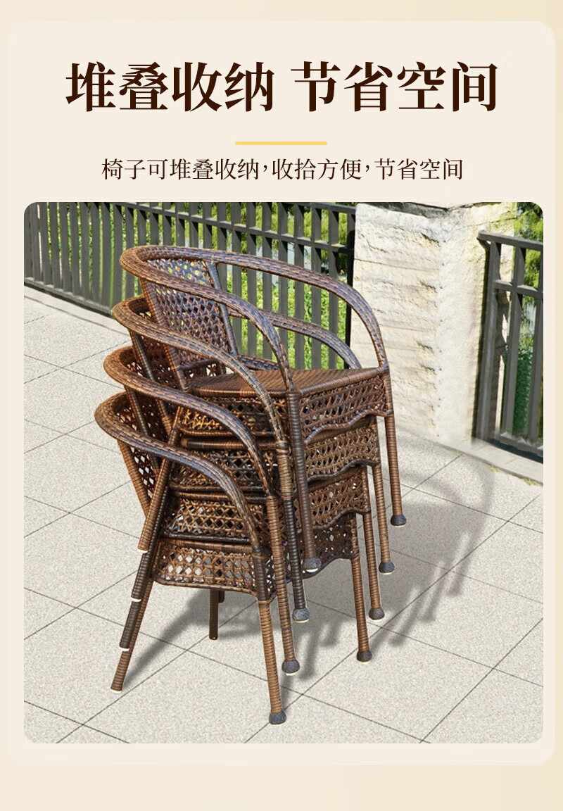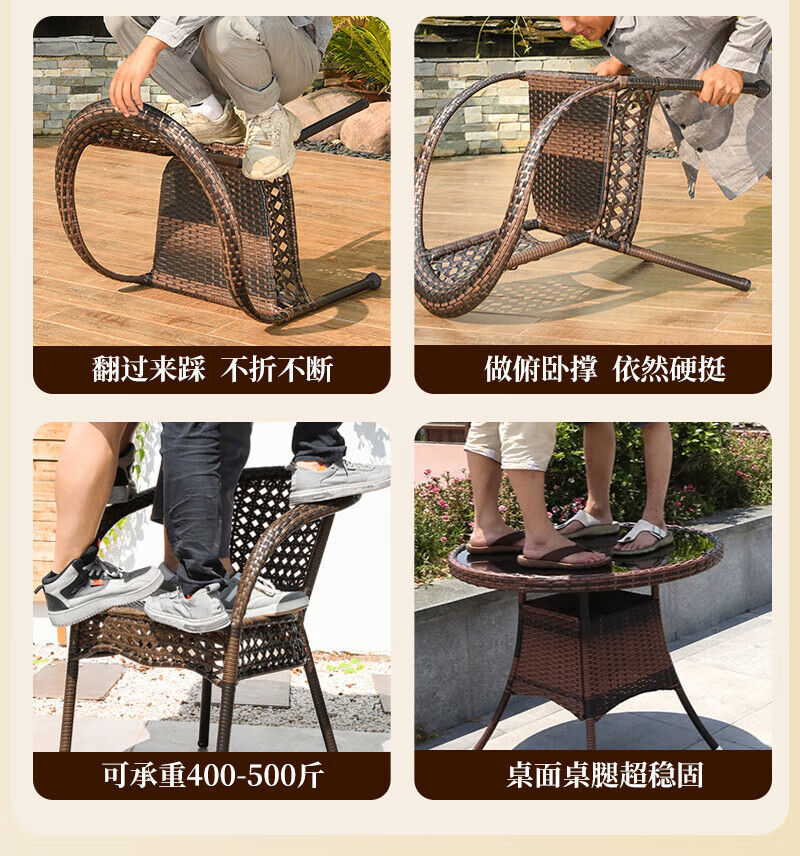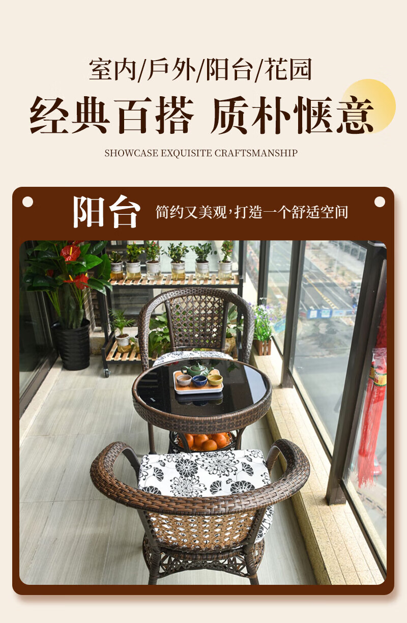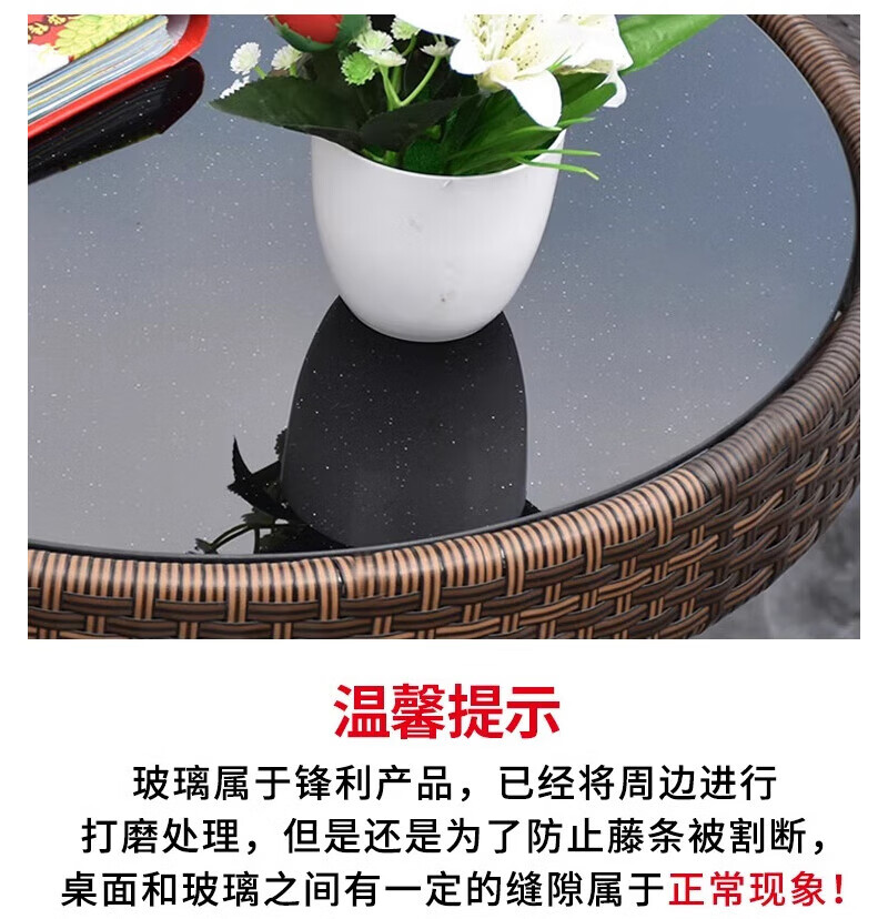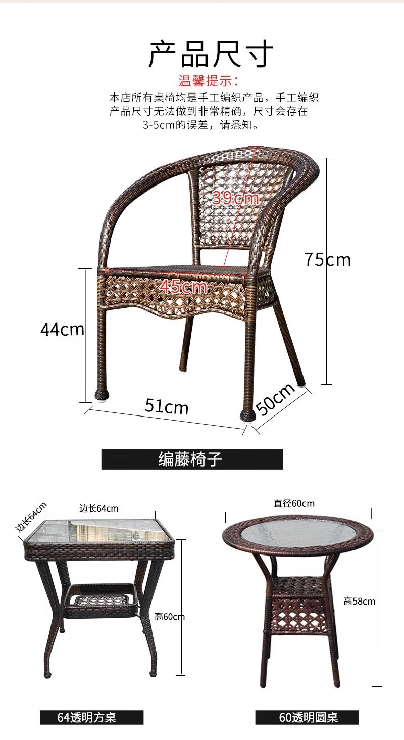 Rattan impression balcony tea table, small tea table, leisure table and chair three-piece set, outdoor open-air rattan chair set, courtyard home tea table, 2 chairs + 58 double-layer round table, free cushions