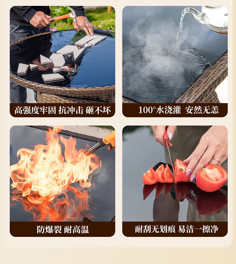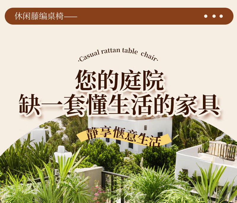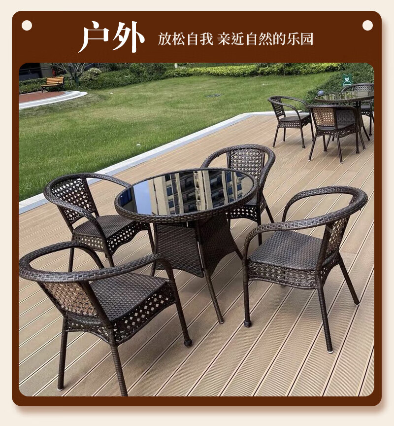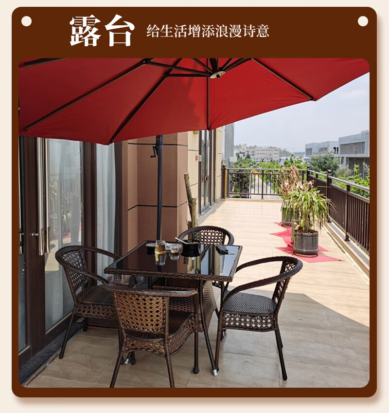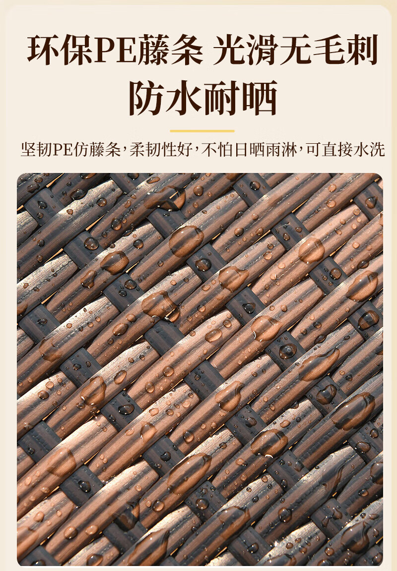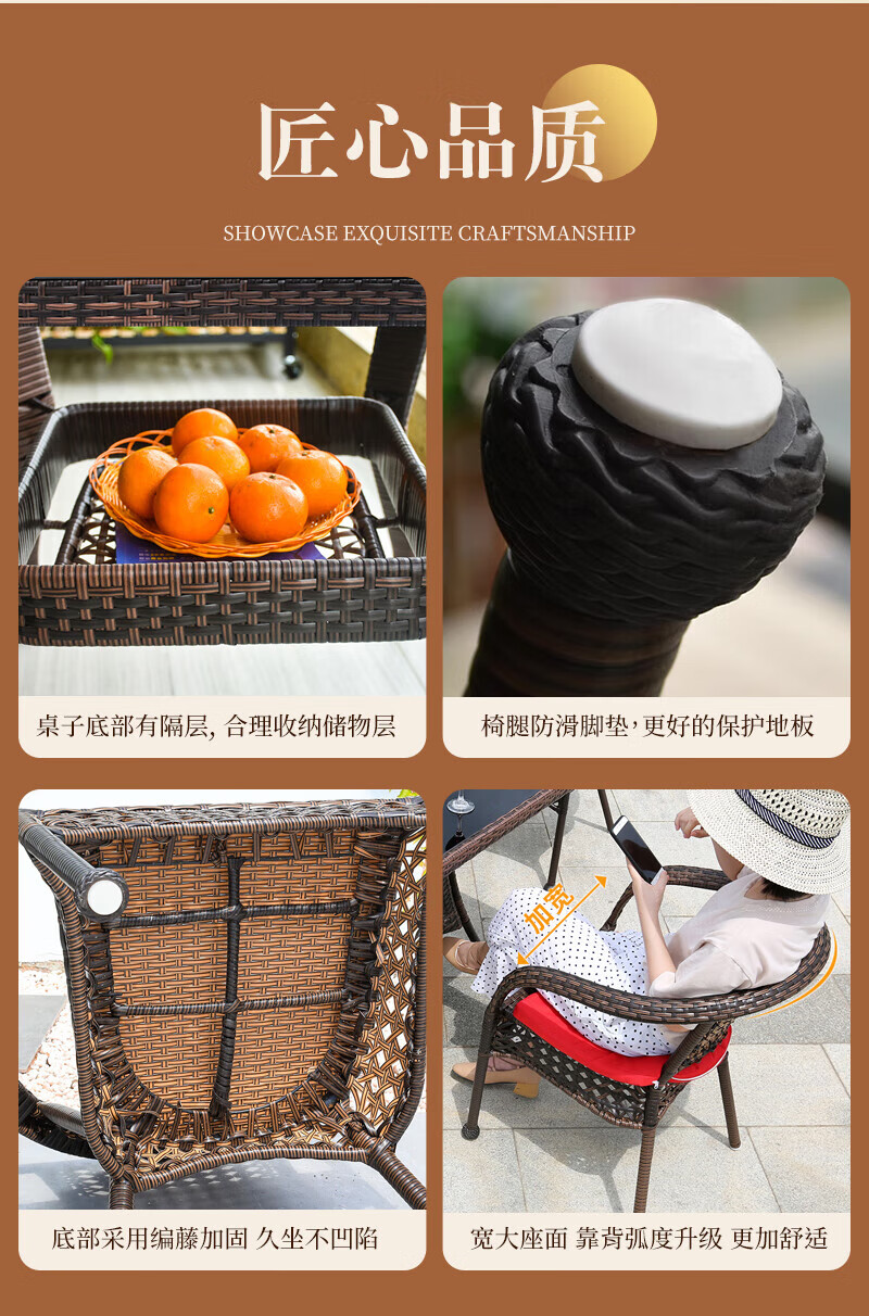 Rattan impression balcony tea table, small tea table, leisure table and chair three-piece set, outdoor open-air rattan chair set, courtyard home tea table, 2 chairs + 58 double-layer round table, free cushions