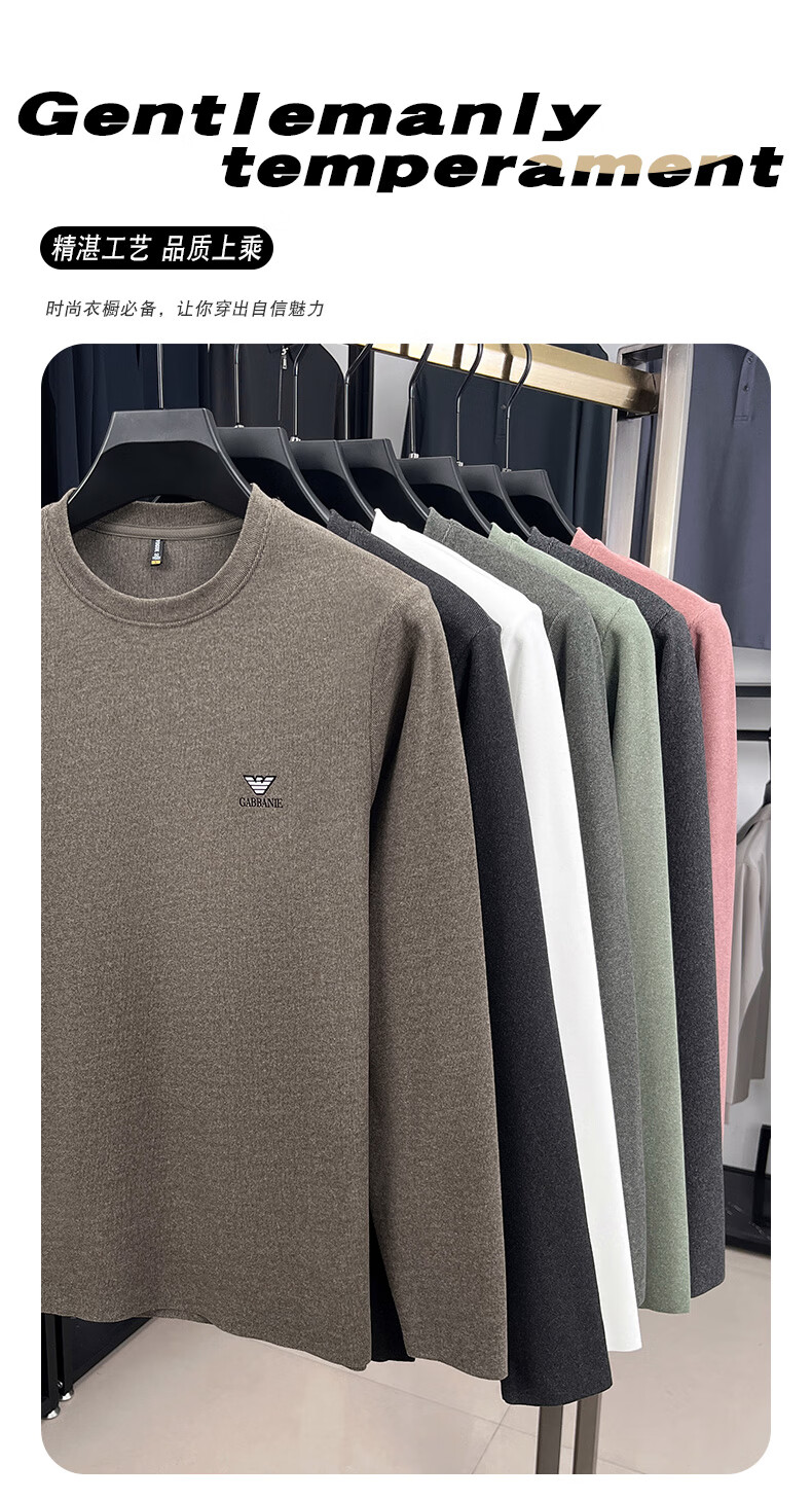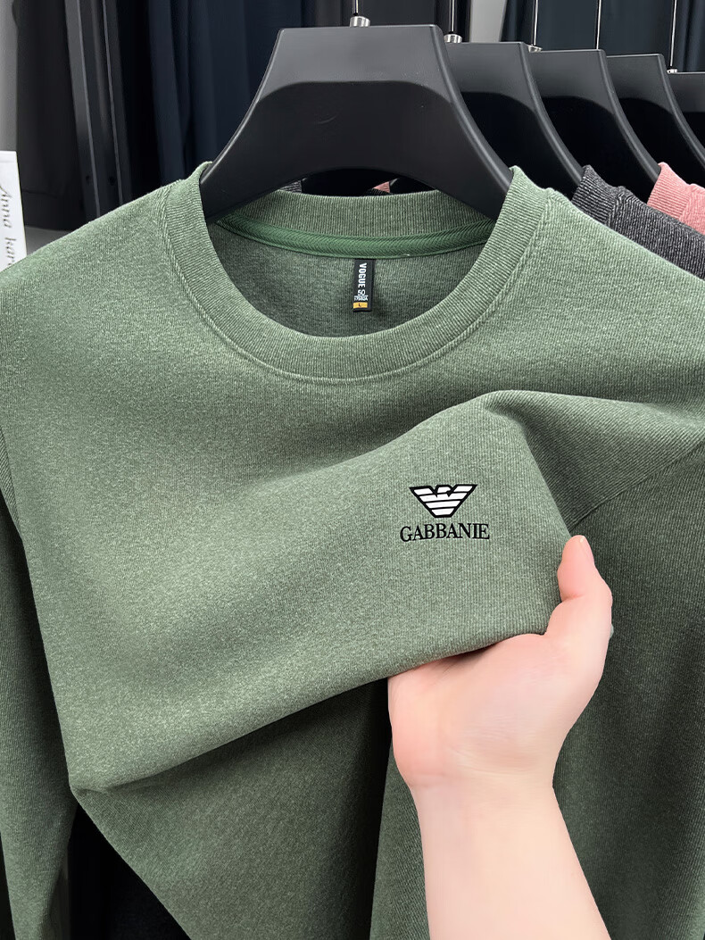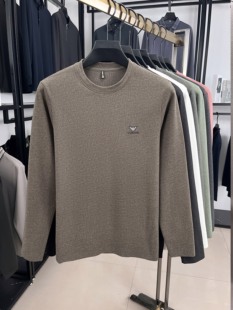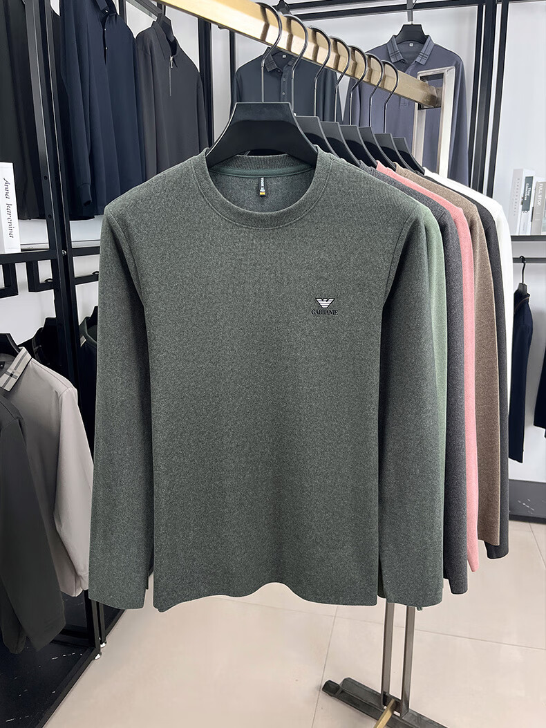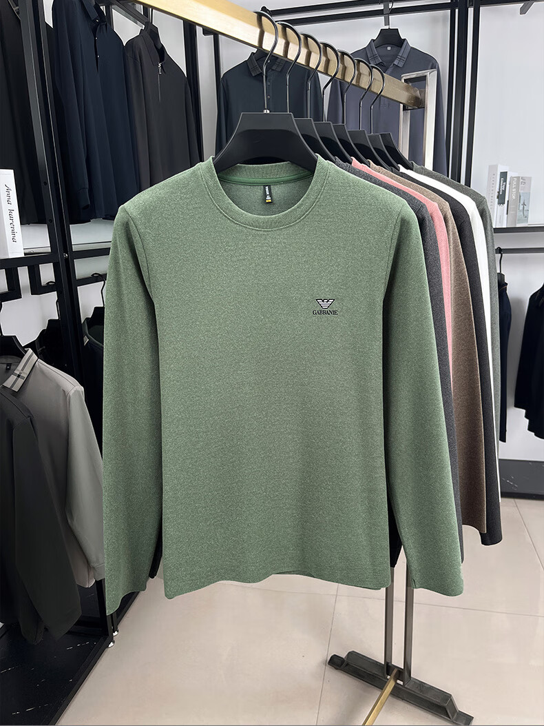 ARMANI EXCHANGE Armani men's spring and autumn round neck men's long-sleeved T-shirt German velvet sweatshirt casual loose bottoming shirt top AG/2522 bean green 3XL 185
