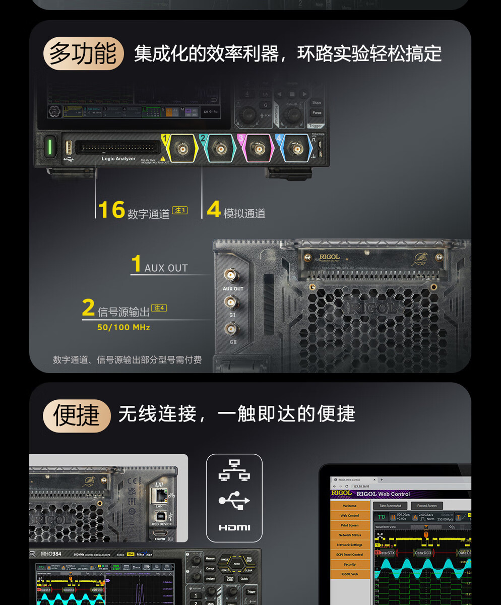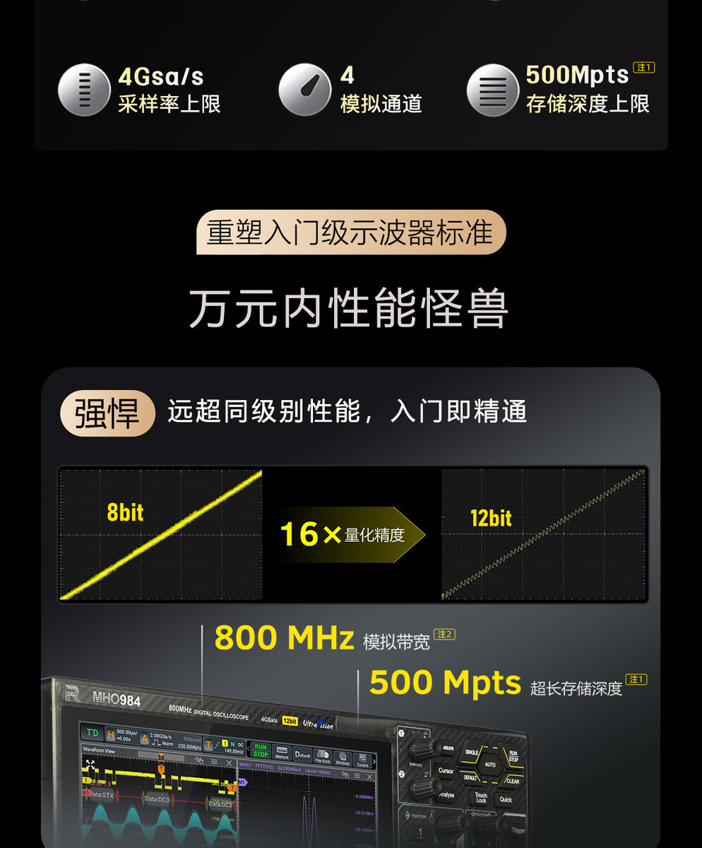 Shantou Lincun RIGOL Puyuan digital oscilloscope MHO9/934/MHO954/MHO94 four channels MH984 (800MHz, four channels)
