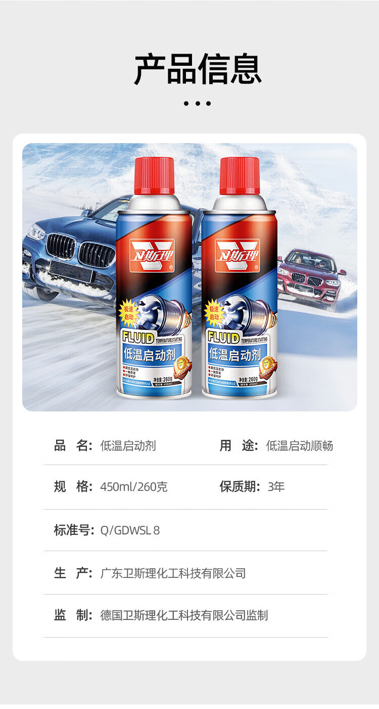 Wesley Automobile Diesel Vehicle Low Temperature Starter 450ml Subzero Temperature Quickly Supports Combustion without Producing Crashes