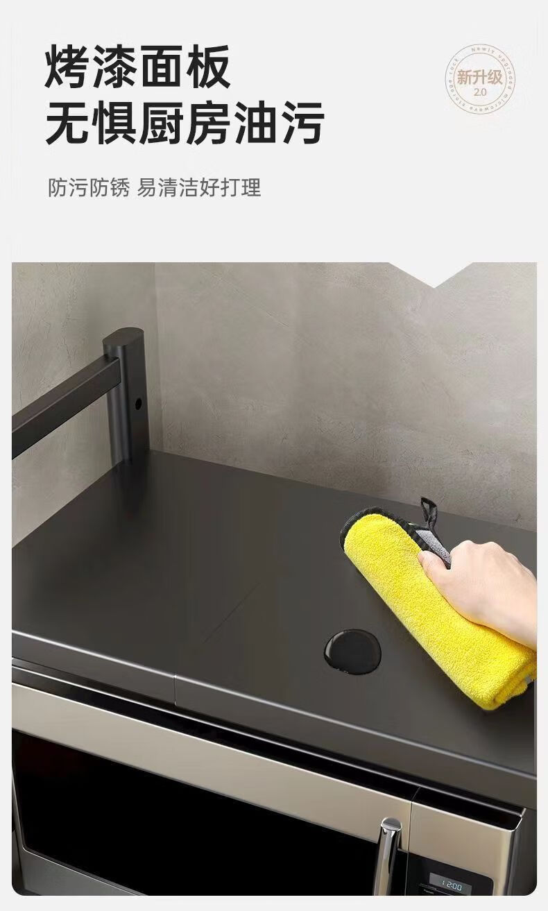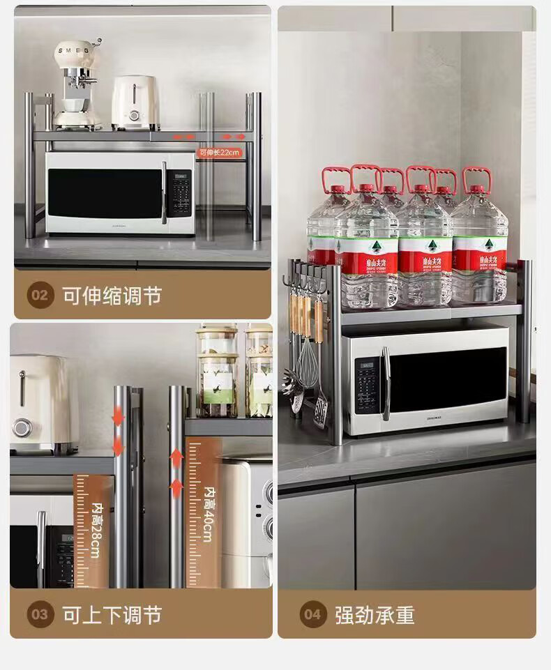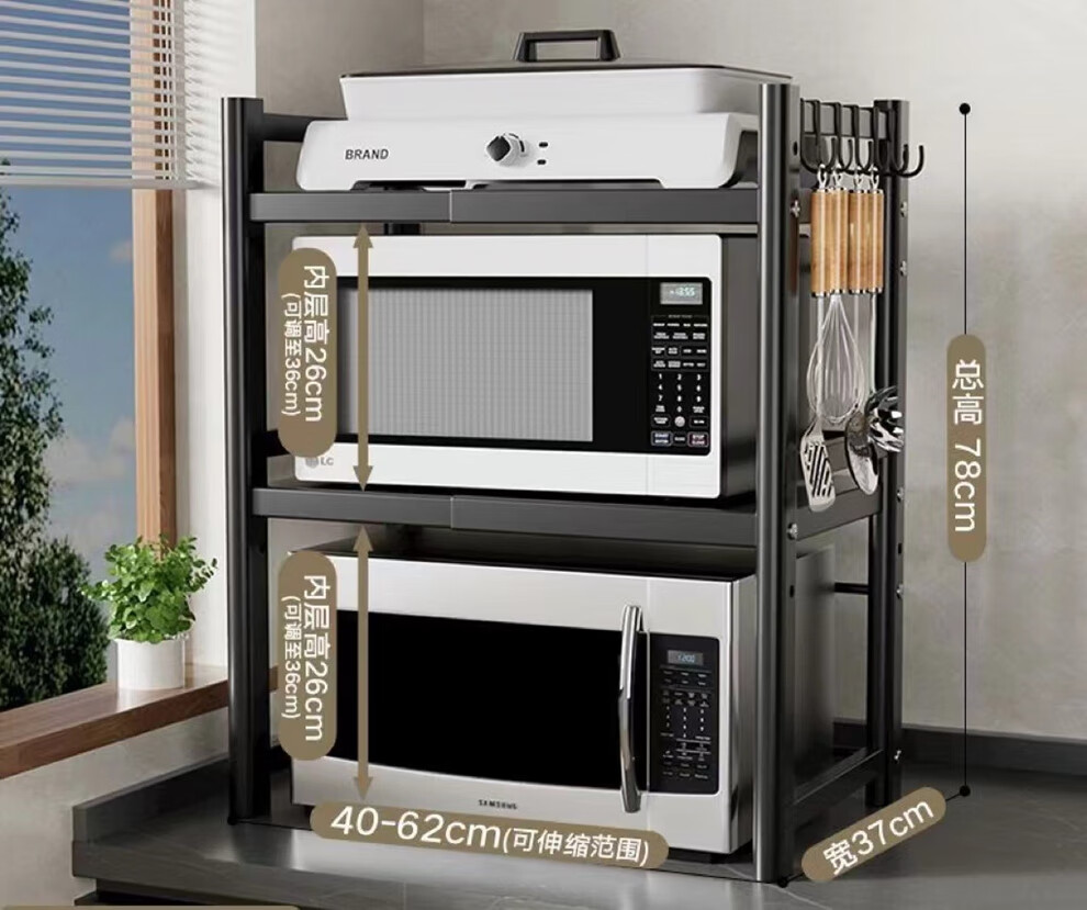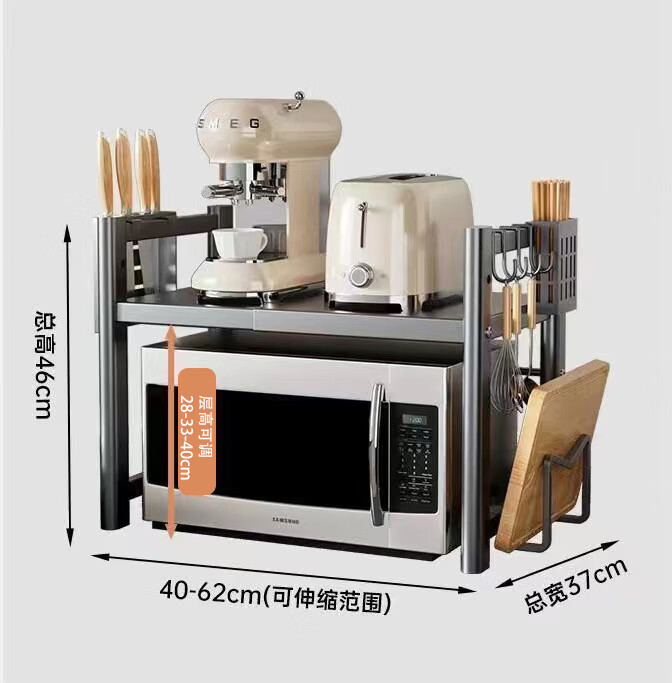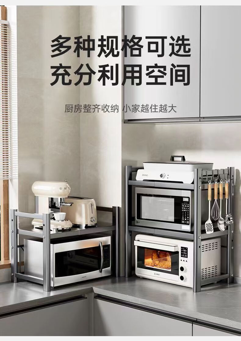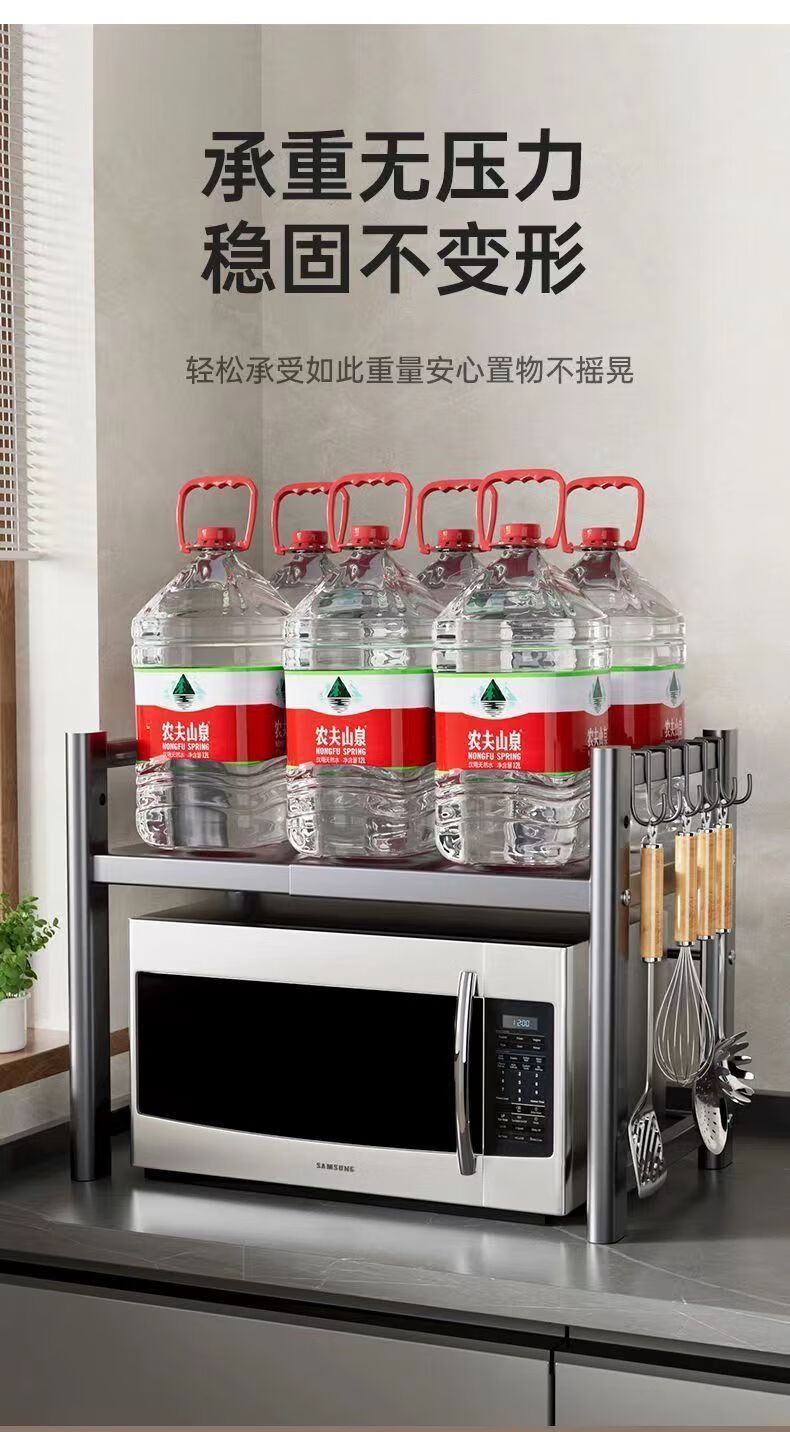 Kexiangtu kitchen microwave oven rack retractable household double-layer oven rack countertop tabletop rice cooker storage rack black single layer-fixed version bold and thickened with hook