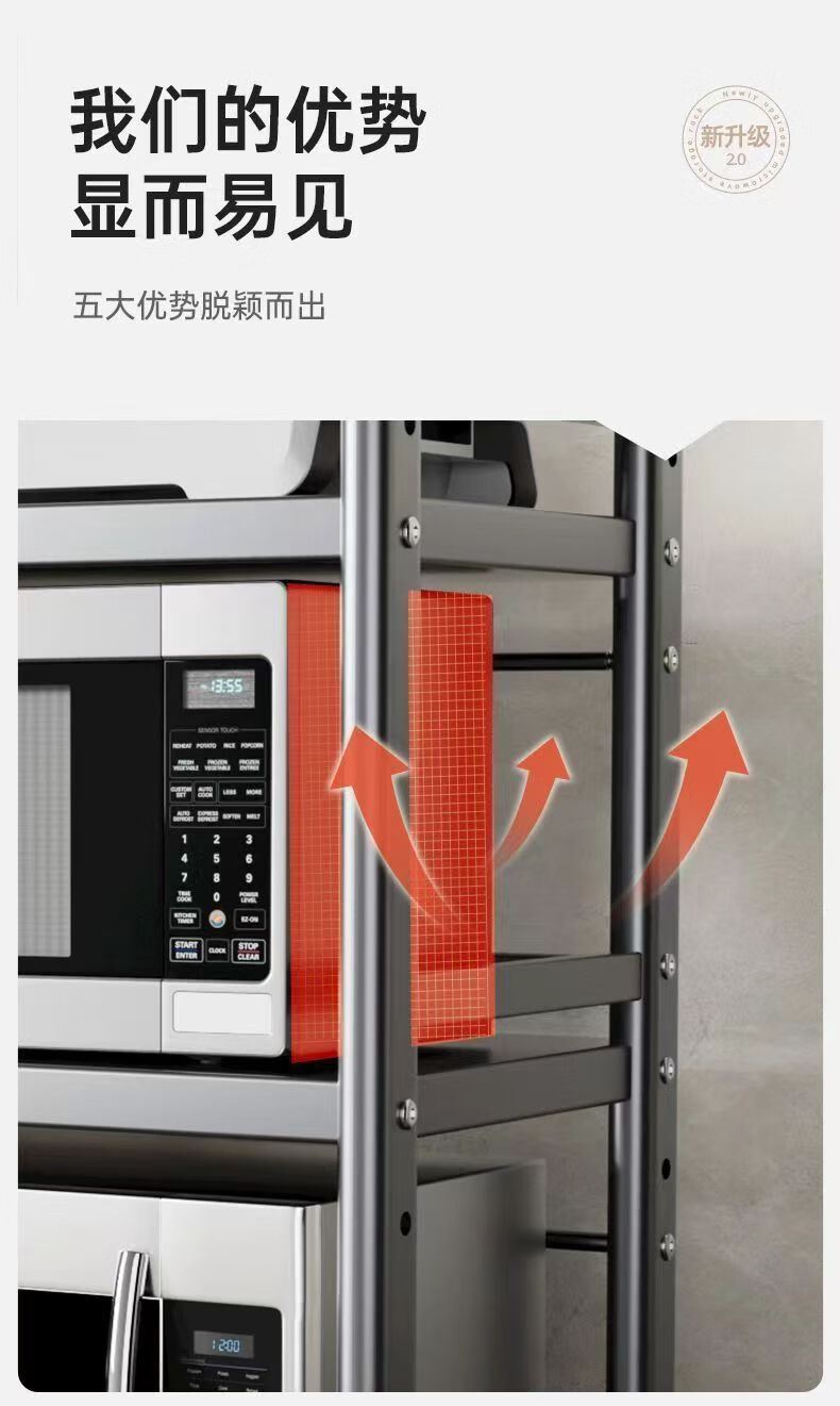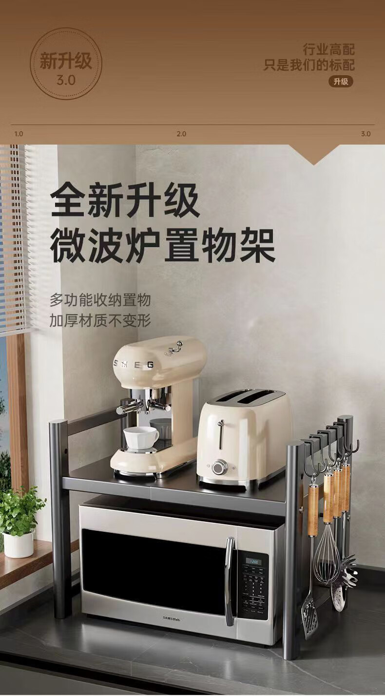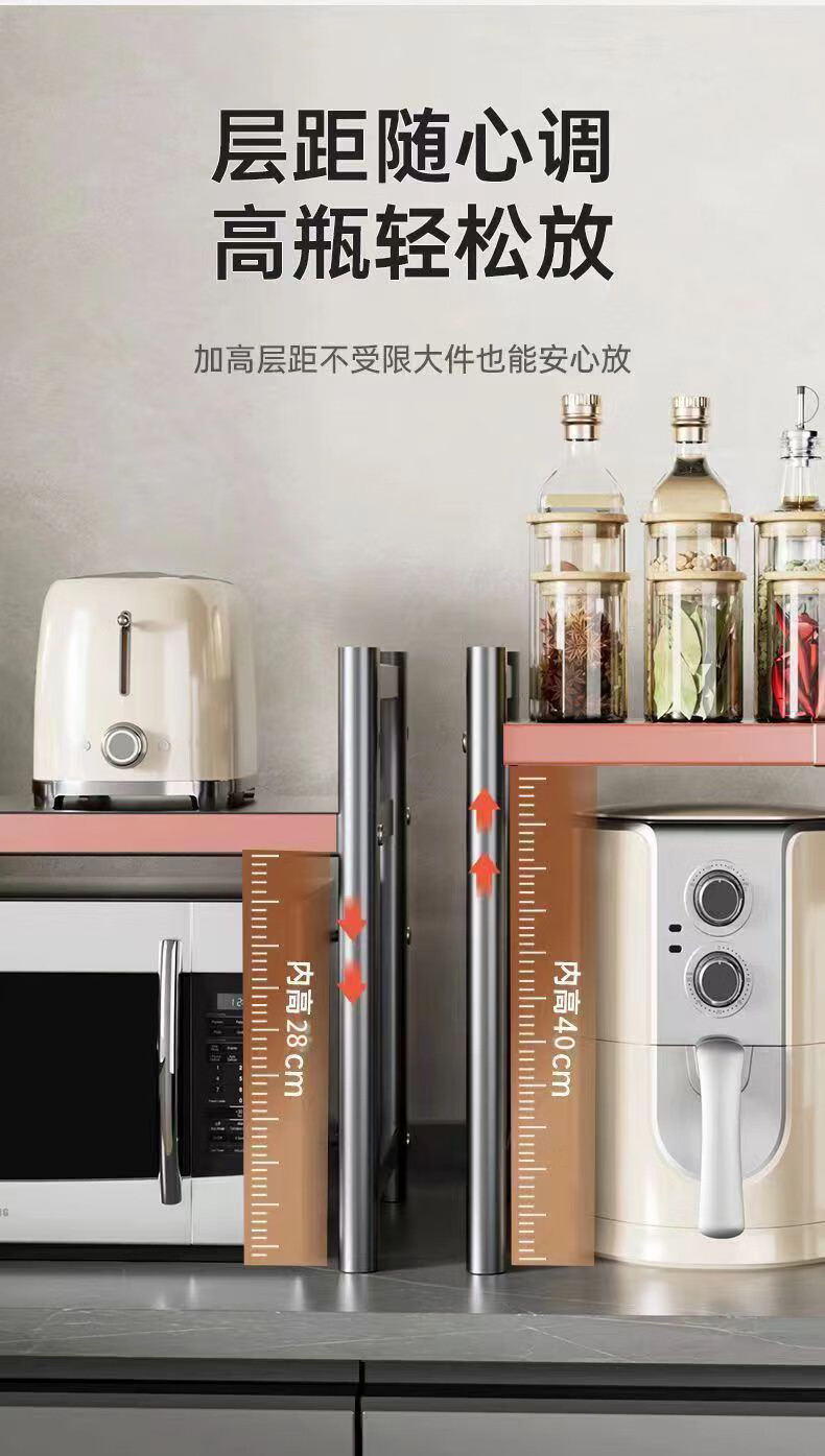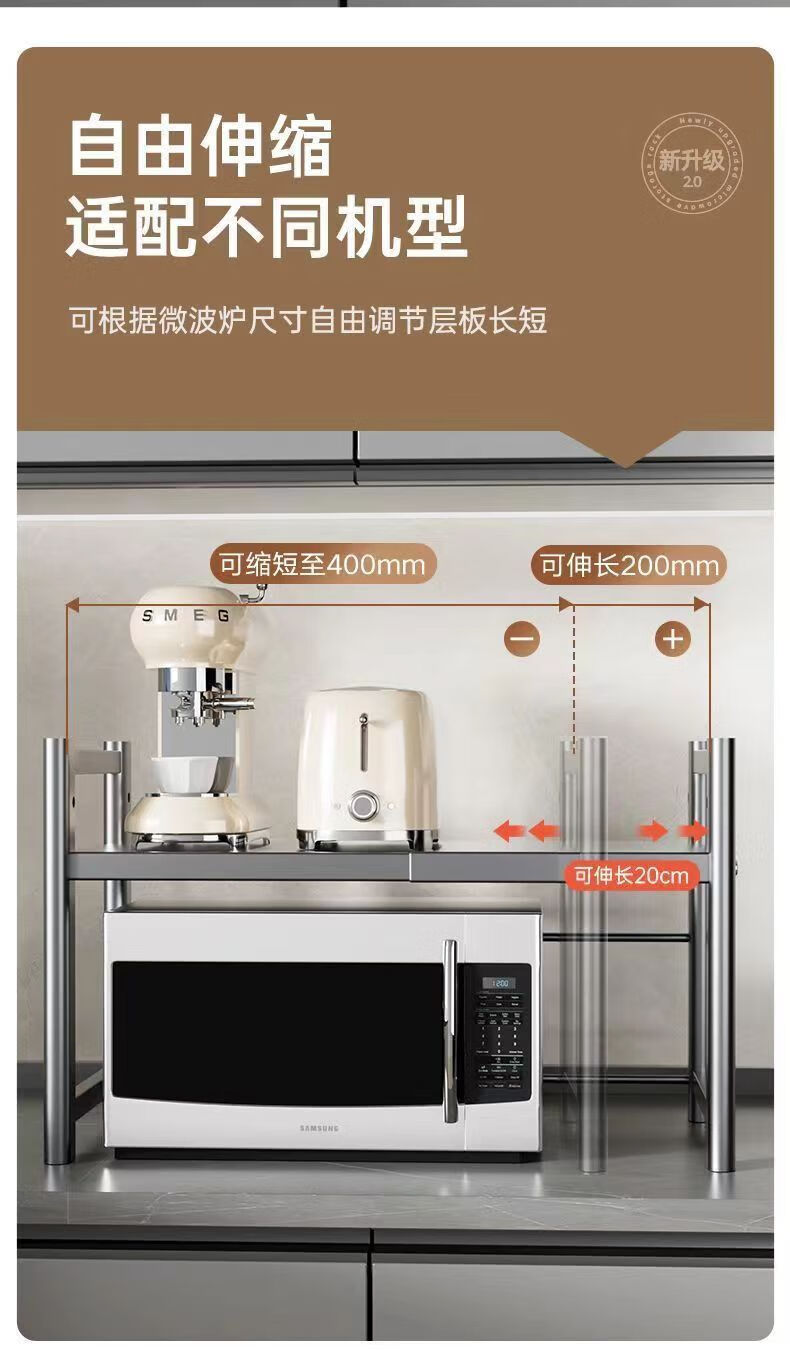 Kexiangtu kitchen microwave oven rack retractable household double-layer oven rack countertop tabletop rice cooker storage rack black single layer-fixed version bold and thickened with hook
