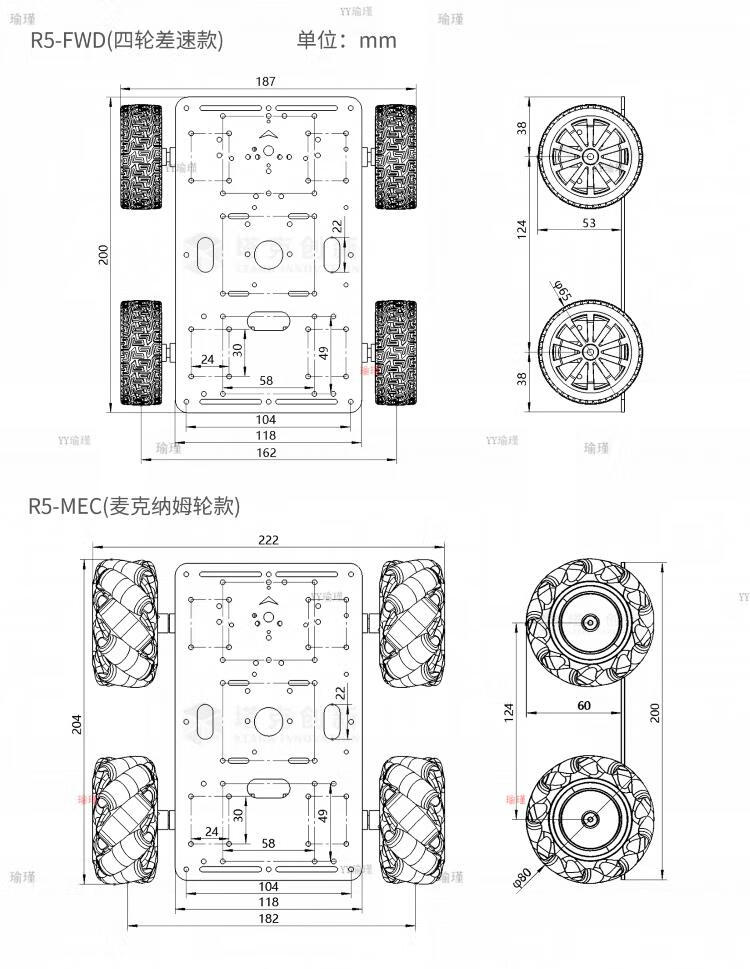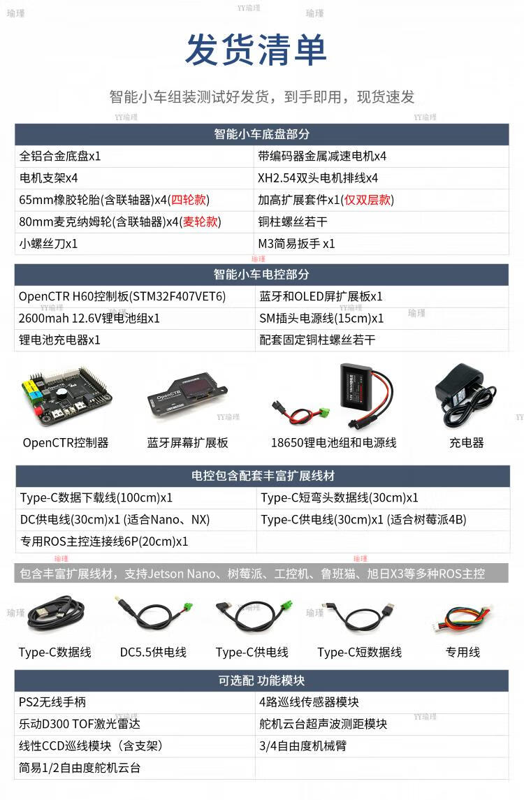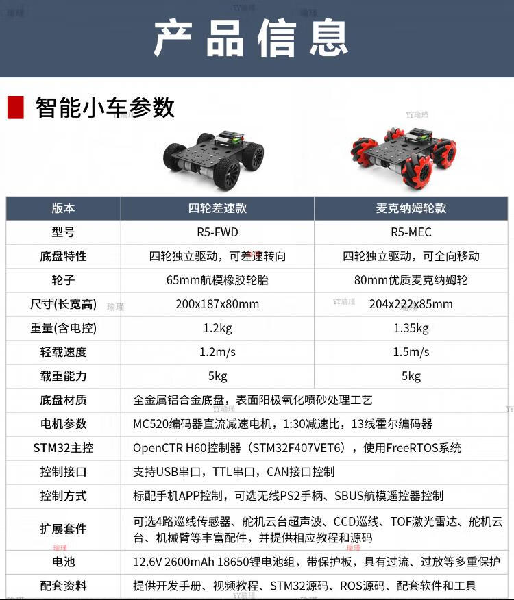 Lingle STM32 lidar smart car R5 four-wheel mecanum wheel ultrasonic obstacle avoidance following infrared CCD tracking ROS R5 series Mecanum wheel car (single layer does not include electronic control only chassis