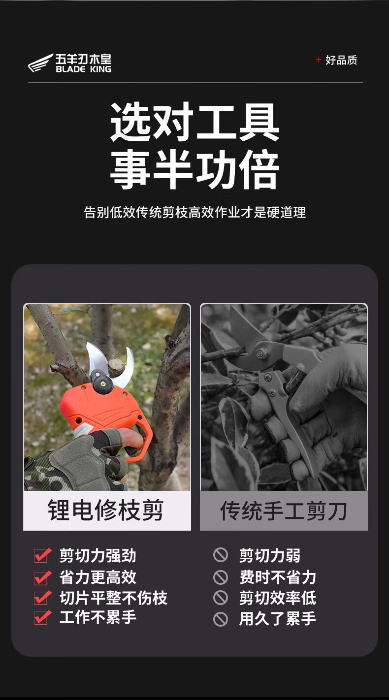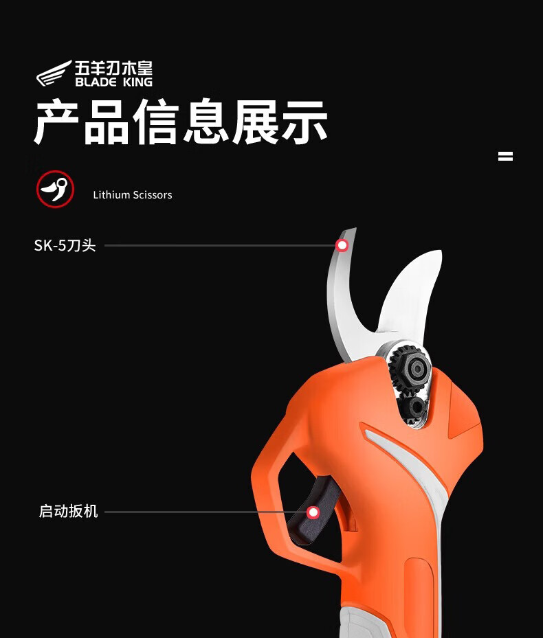 Wuyang Blade Muhuang Wuyang electric shears for branch pruning, high-power lithium battery rechargeable electric pruning scissors for fruit trees, 6.0 Smart Edition, lithium battery * 2 + luxury gift pack