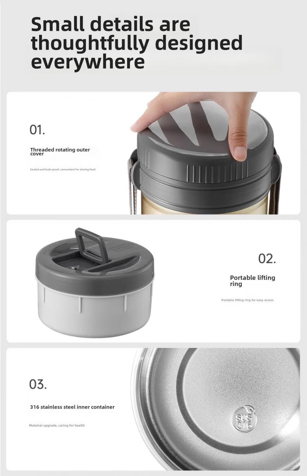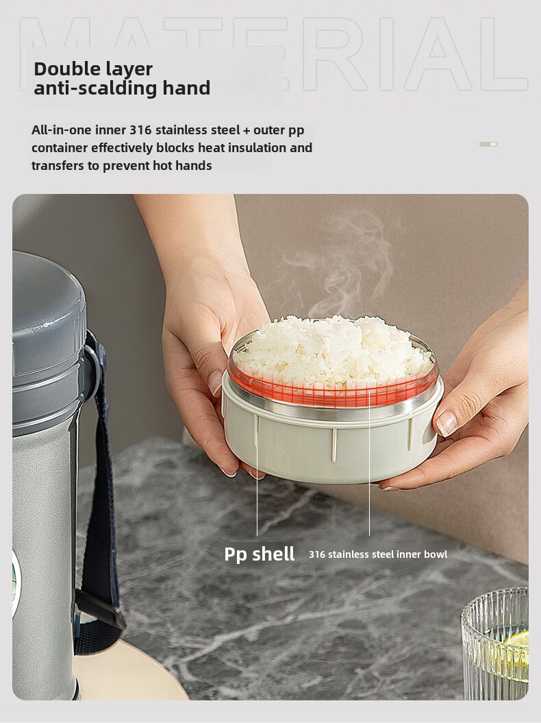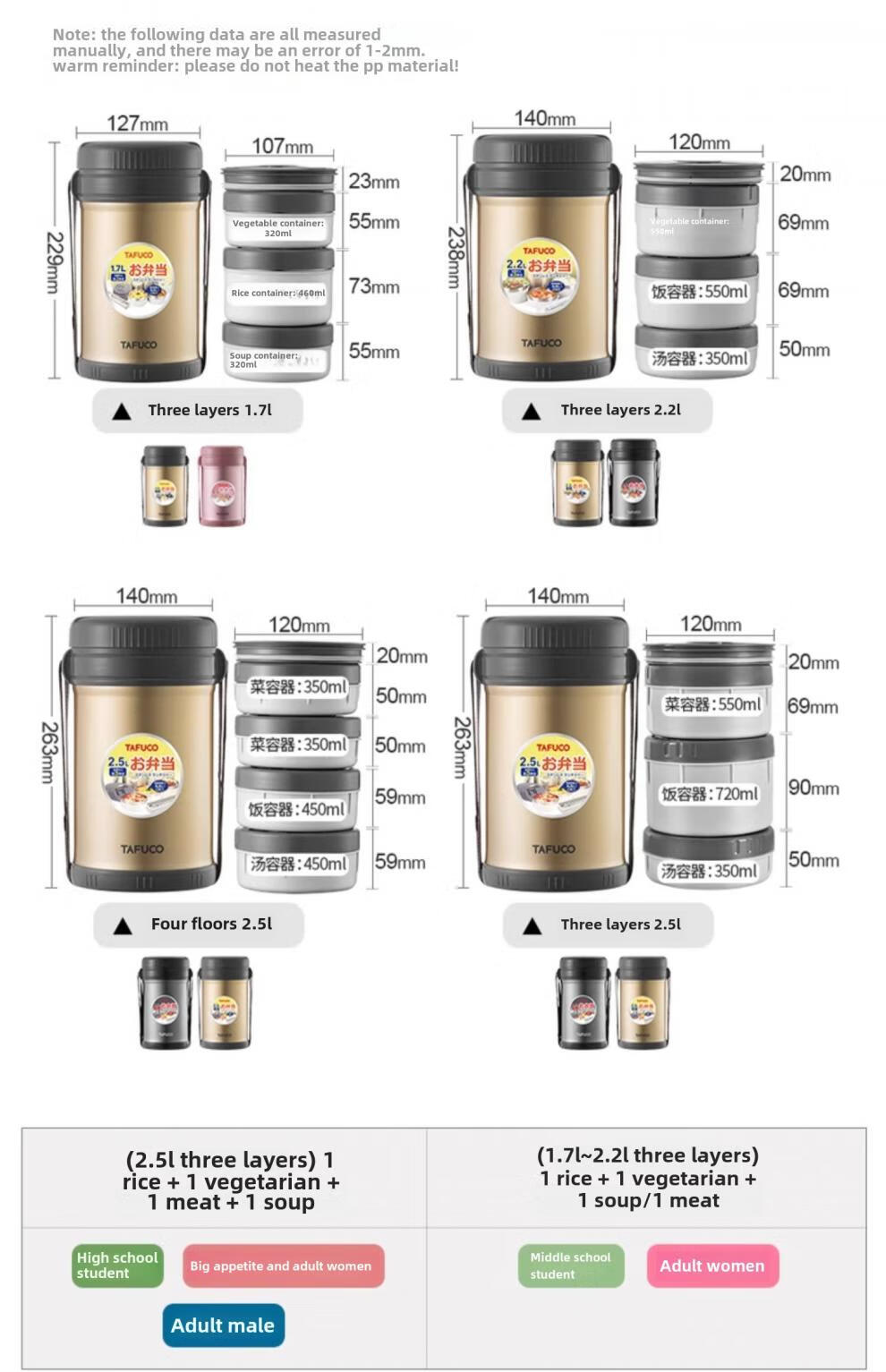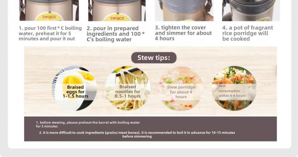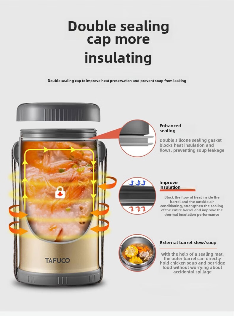 TAFUCO Japanese TAFUCO Insulated Lunch Box Large Capacity Extra Long Insulated Bucket Winter Portable Lunch Box for Office Workers and Students Anti-scalding - Enhanced Insulation _2.5L Champagne Color Four Layers + Insulation Bag +