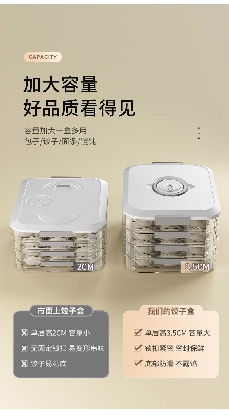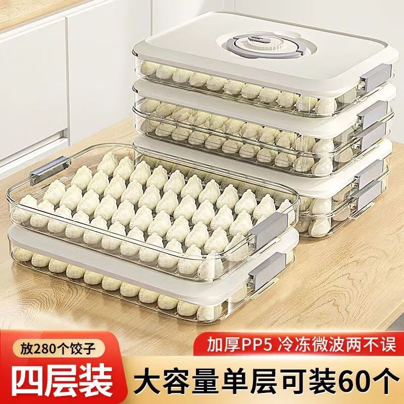 Zixian Dumpling Box Special Frozen Dumpling Box Refrigerator Storage Box Household Large Capacity Speed Wonton Frozen Preservation Box Multi-layer PP Material-Timed Fresh Lock Pink One Layer Zero Cover Holds 20 Dumplings Uncovered Model