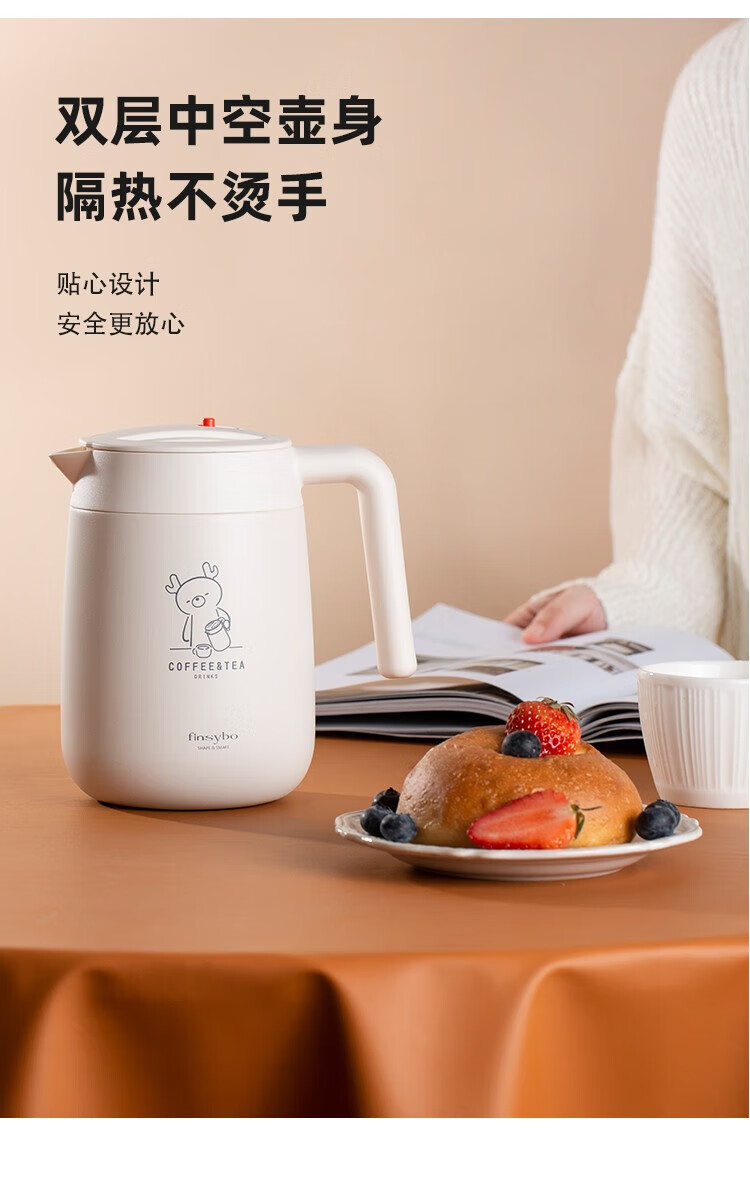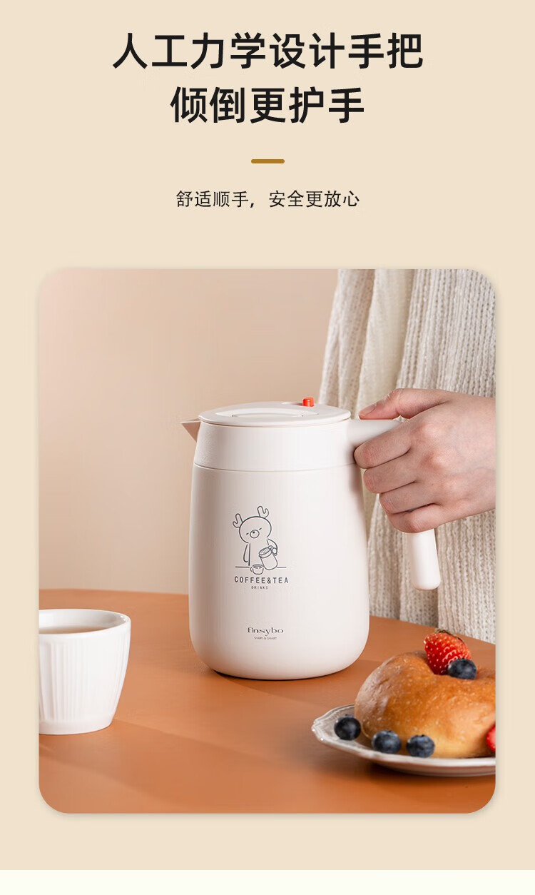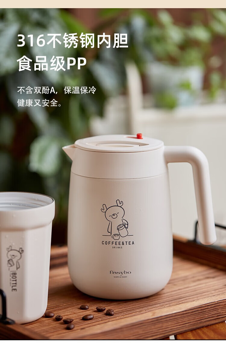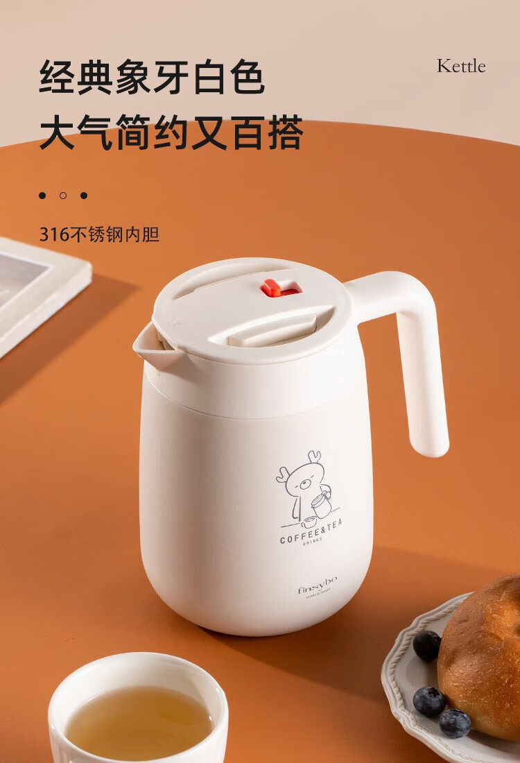 Finsybo coffee pot 316 stainless steel liner, light and easy to handle for home use F-KS01 ivory white 316 stainless steel 1000ml