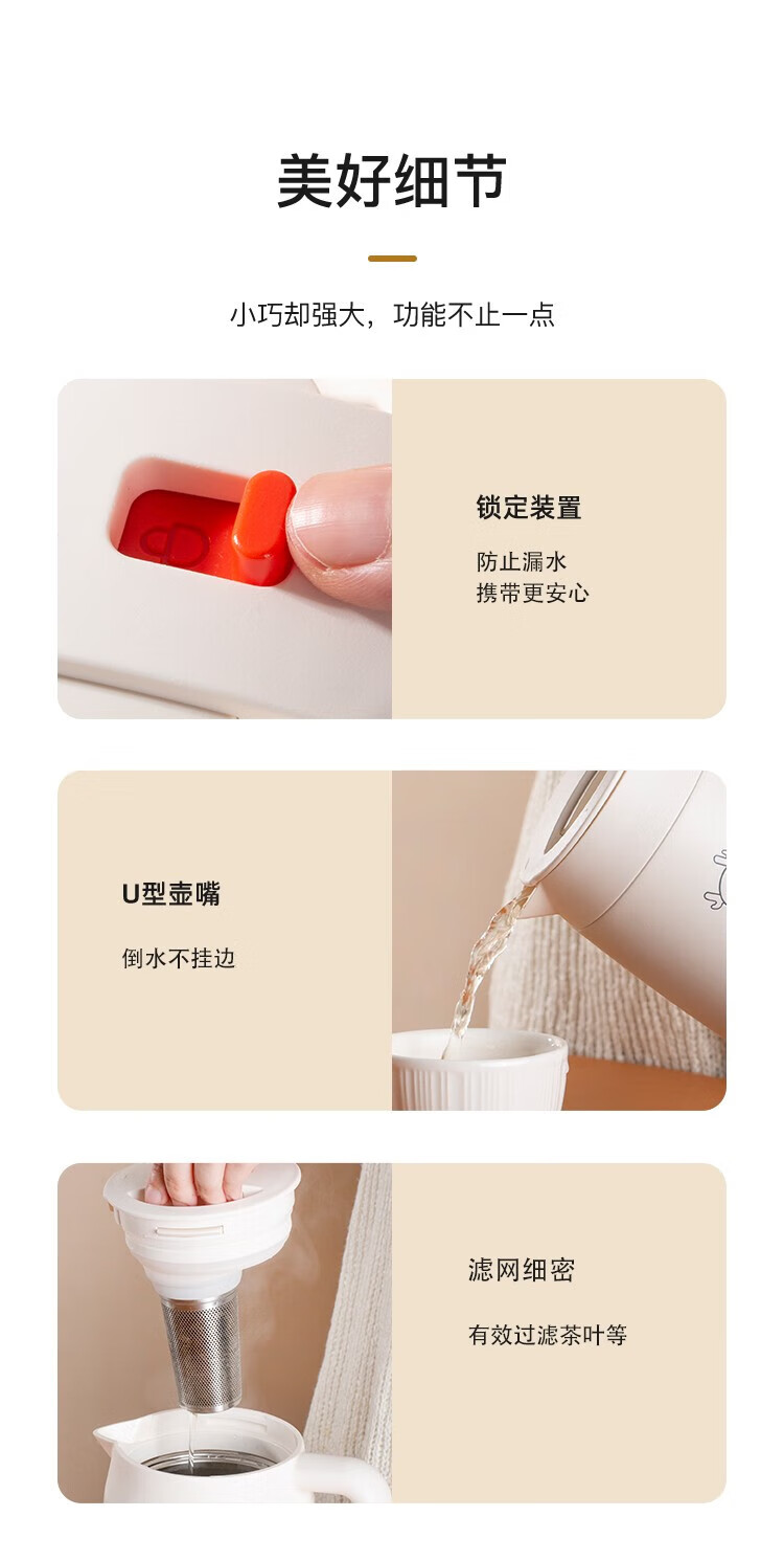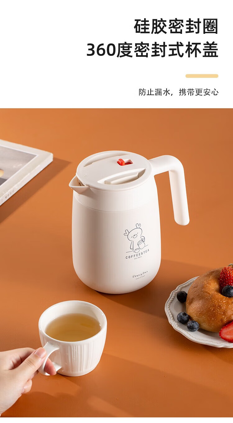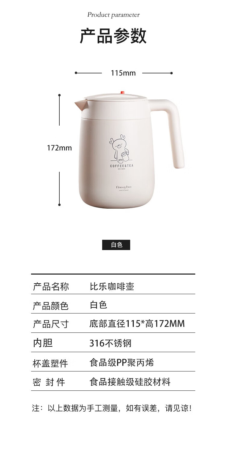 Finsybo coffee pot 316 stainless steel liner, light and easy to handle for home use F-KS01 ivory white 316 stainless steel 1000ml