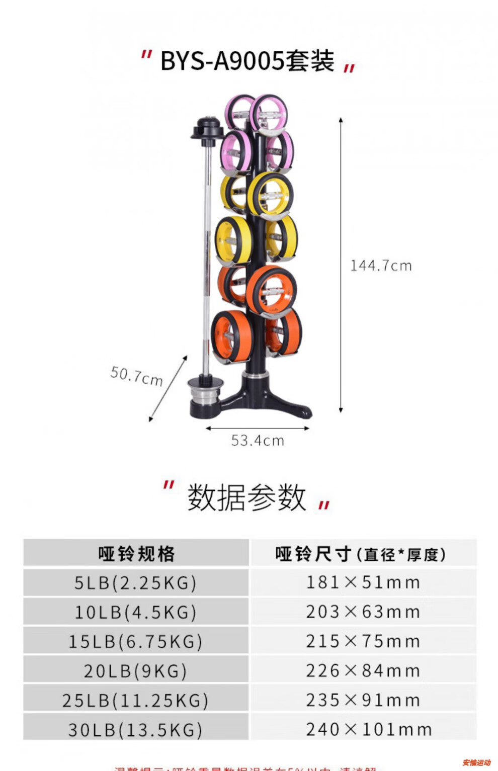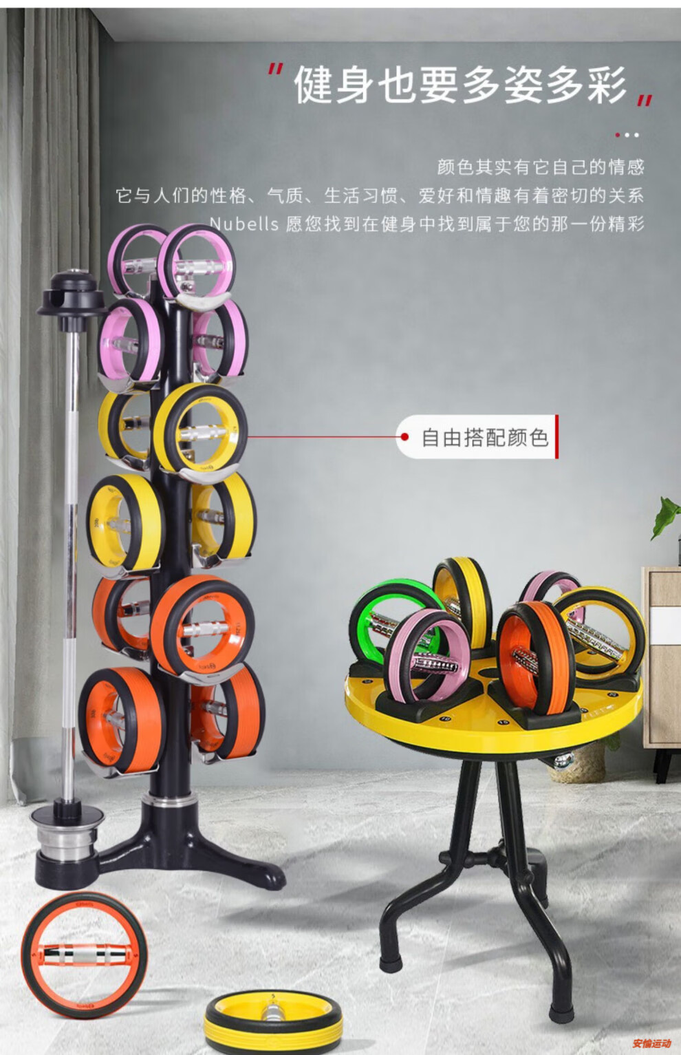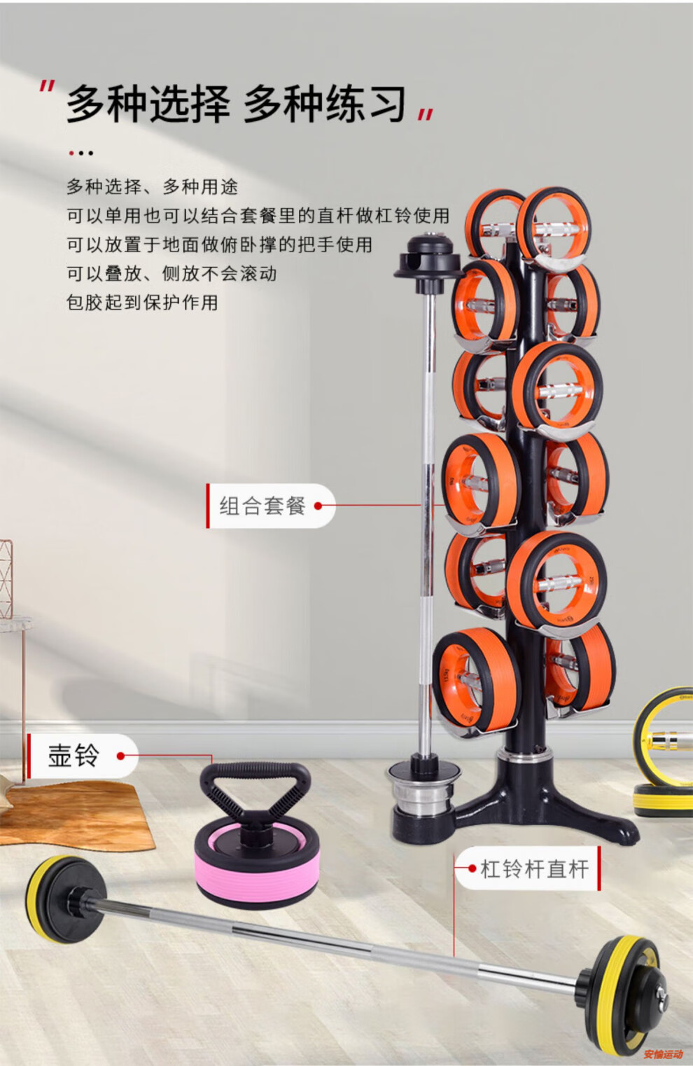 OEMG German imported quality Nubells vertical 6 sets of dumbbell set barbell combination multi-functional rotatable Christmas tree A9005-2 orange 66KG More