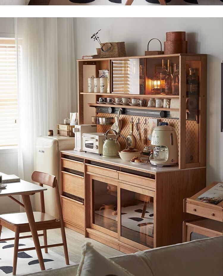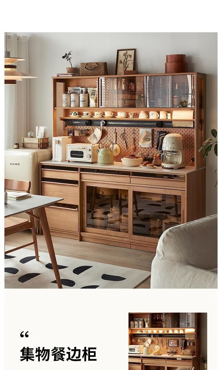 Suzhan sideboard Nordic medieval retro simple storage solid wood cherry wood slate Japanese tea table restaurant integrated 120-45-185