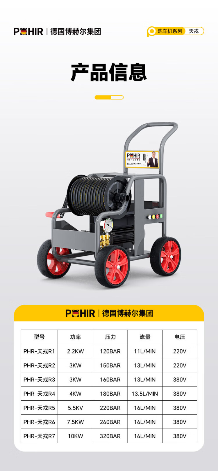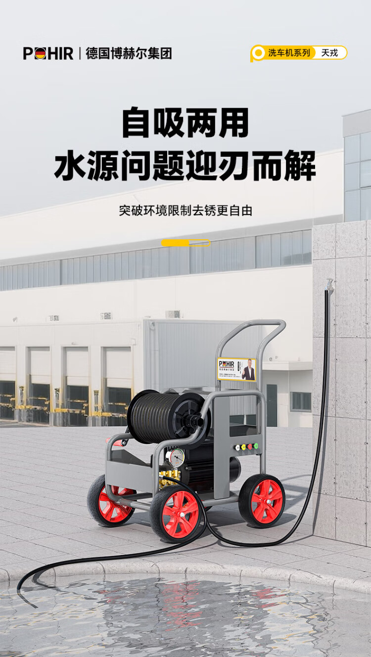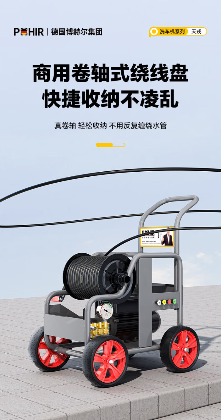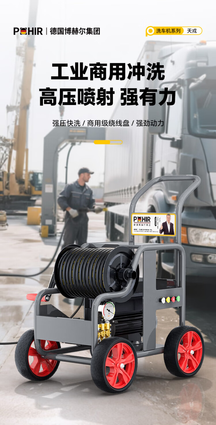 POHIR high-pressure car washing machine commercial industrial high-pressure cleaning machine high-power high-pressure water gun household model 1850W + 15 meters pipe