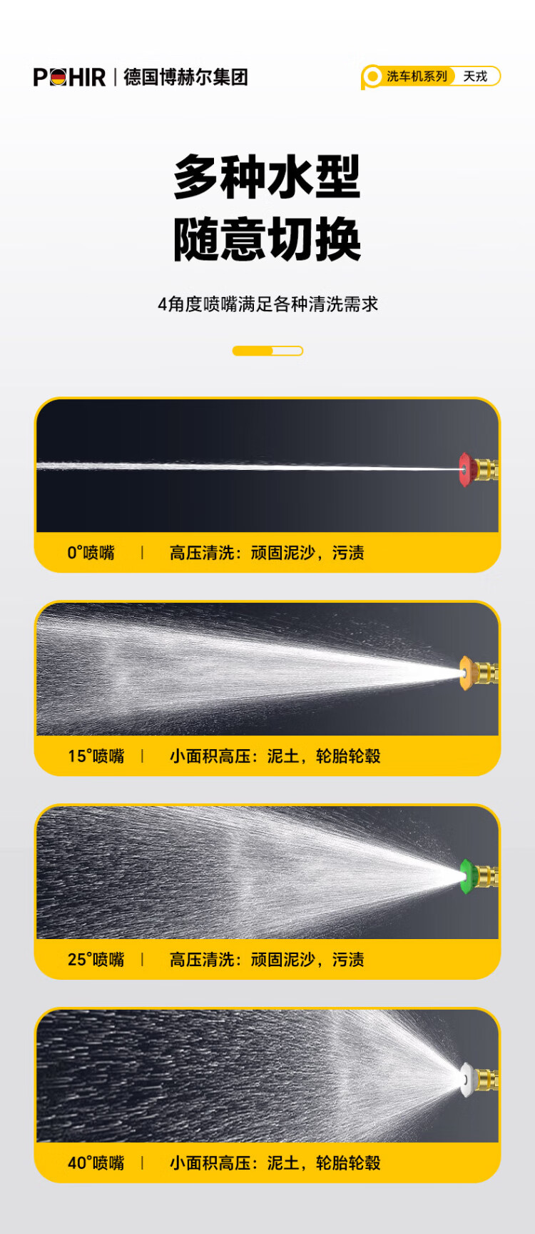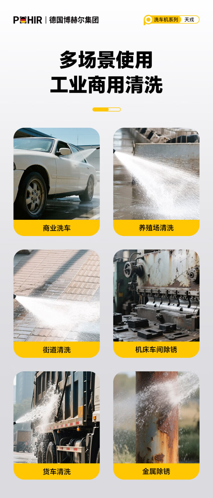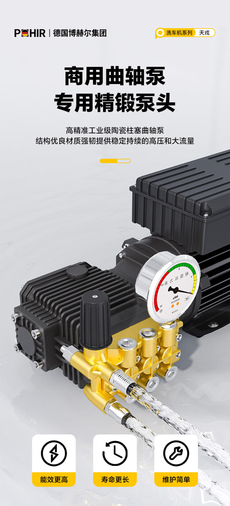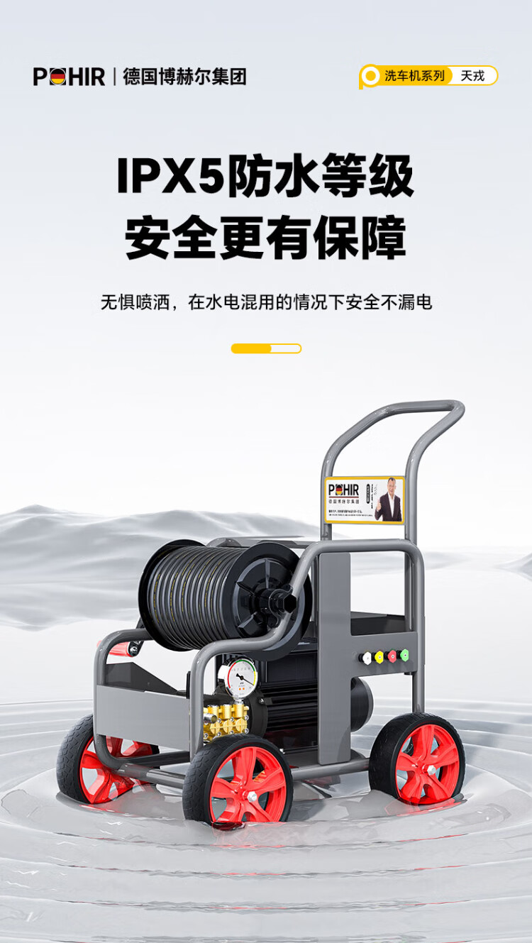 POHIR high-pressure car washing machine commercial industrial high-pressure cleaning machine high-power high-pressure water gun household model 1850W + 15 meters pipe