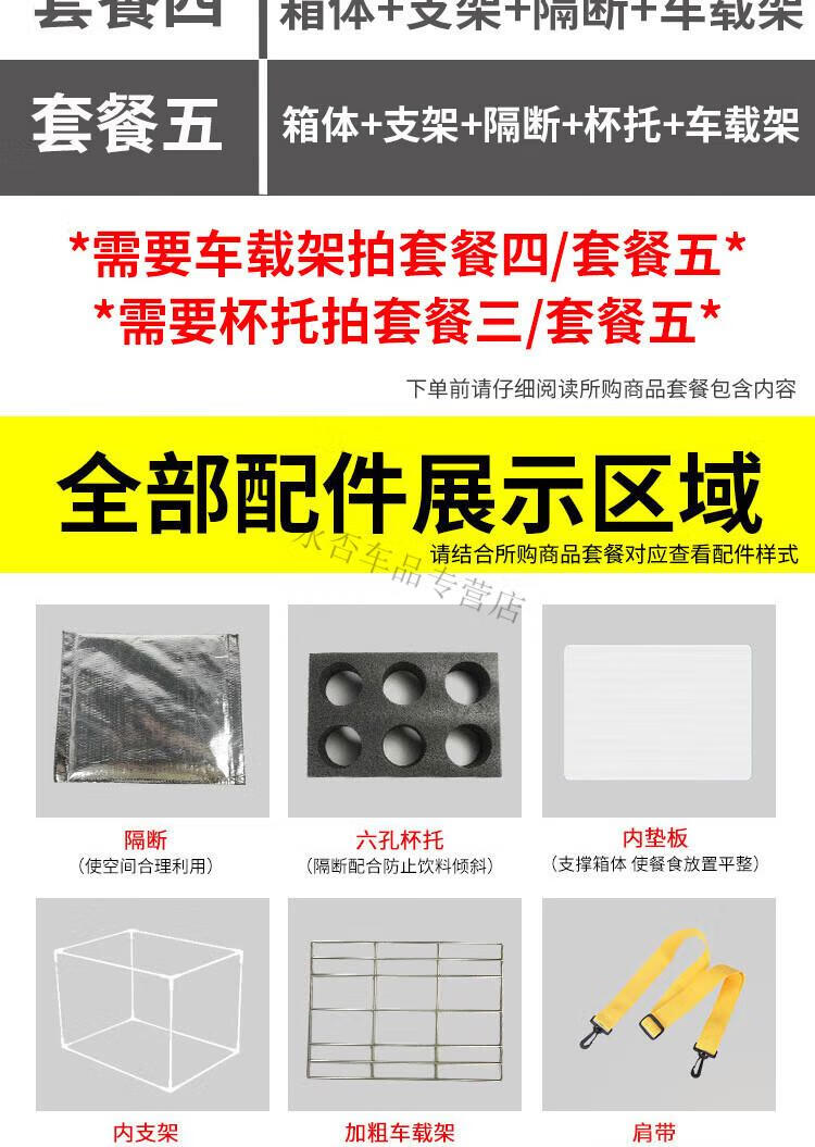 After-travel take-out box, food delivery box, vehicle-mounted commercial stall refrigerated, locked, waterproof rider equipment, crowd-sourced insulated box, 62-liter box (large capacity/suitable for full-time riders), package four, bracket + pad + partition + vehicle rack