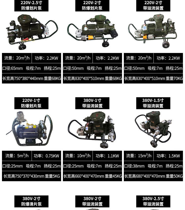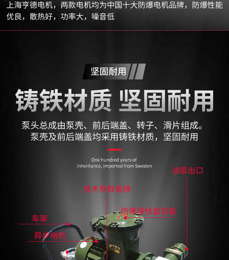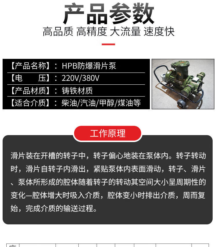 HPB explosion-proof sliding vane pump 220V380V electric large flow oil pump gasoline diesel methanol self-priming oil pump 1 inch 220 volt portable explosion-proof pump 0.75kw