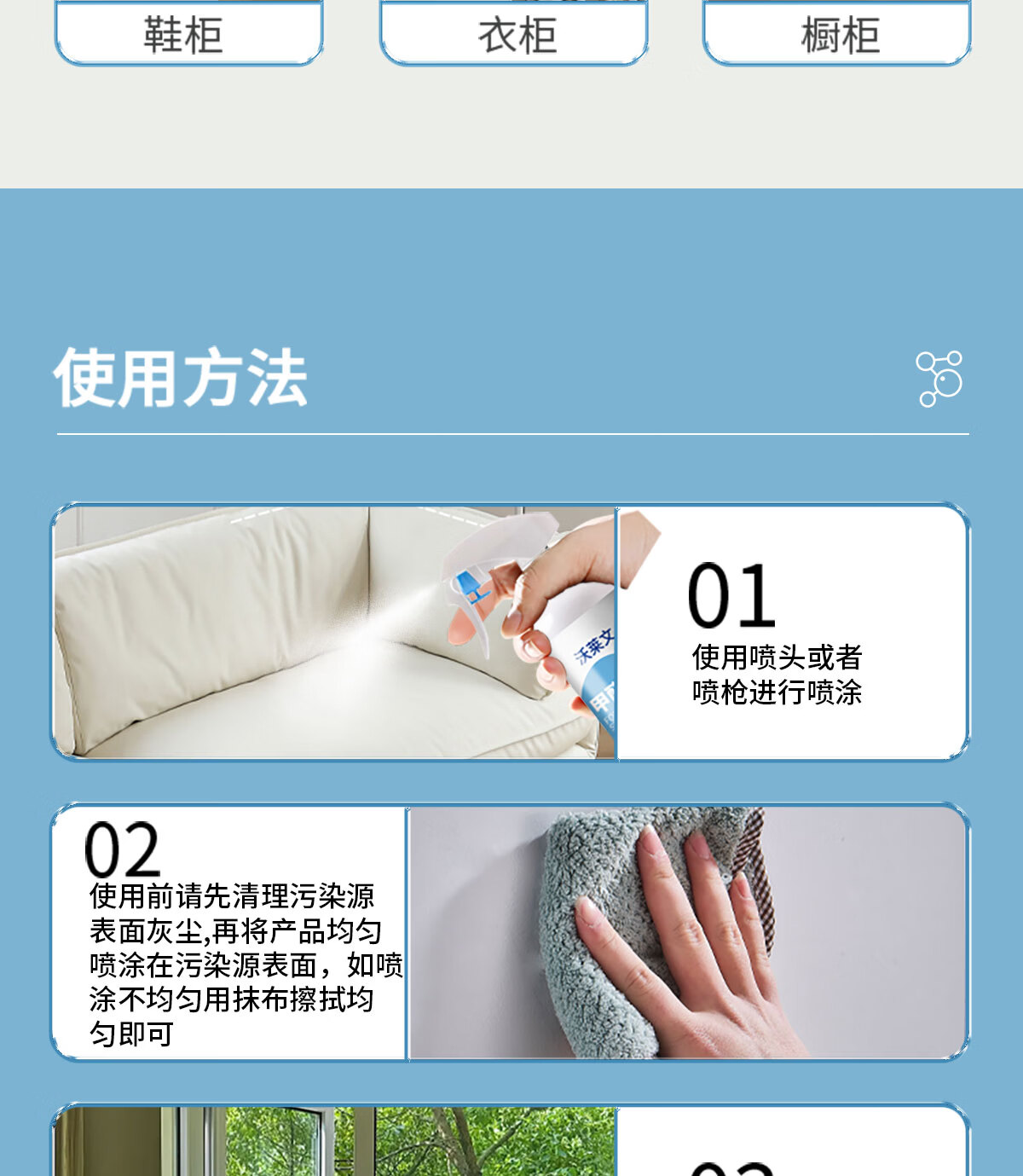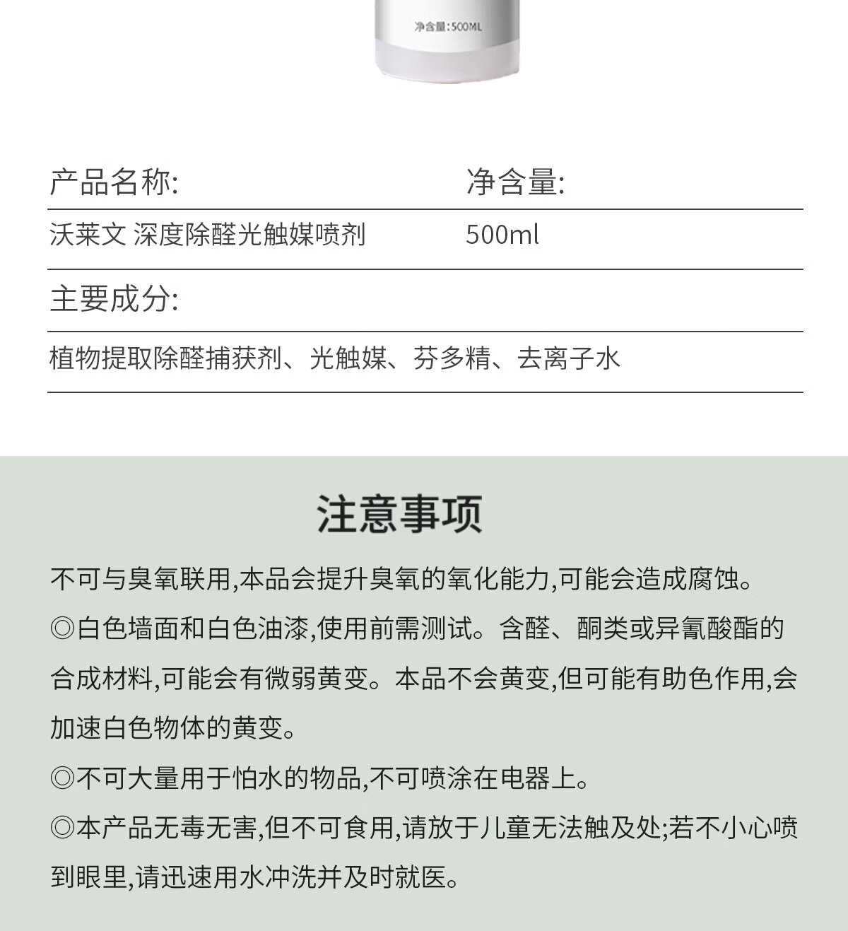 Wolevin official authentic Wolevin photocatalyst formaldehyde removal spray furniture new house home use 3 three bottles of periodic packaging, the third bottle is 0 yuan