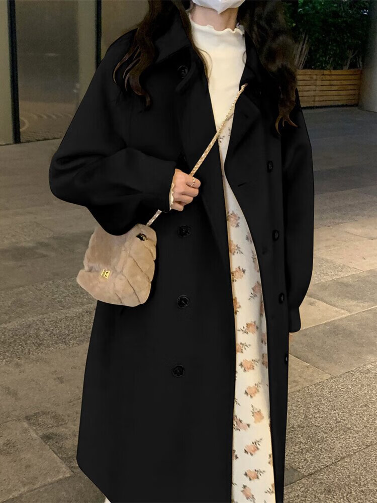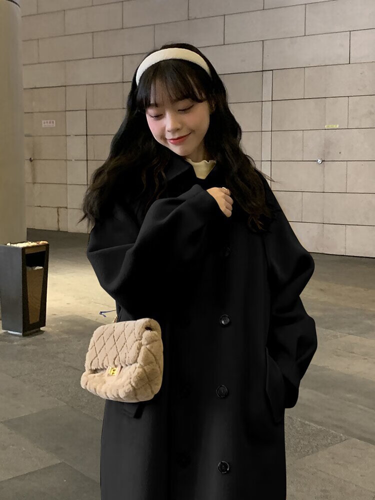 Korean style small women's woolen coat 2025 new autumn and winter thickened quilted woolen mid-length coat windbreaker milk coffee color cotton thickened L