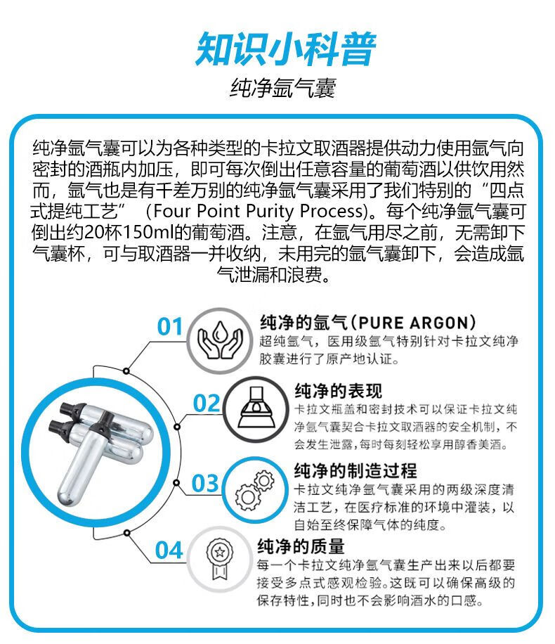 Suitable for Coravin Coravin wine dispenser, pure argon air bag, red wine preservation, 6.5g argon gas bottle, Ar gas tank, 2 boxes of 6 argon air bags
