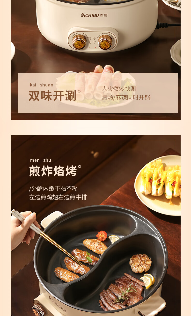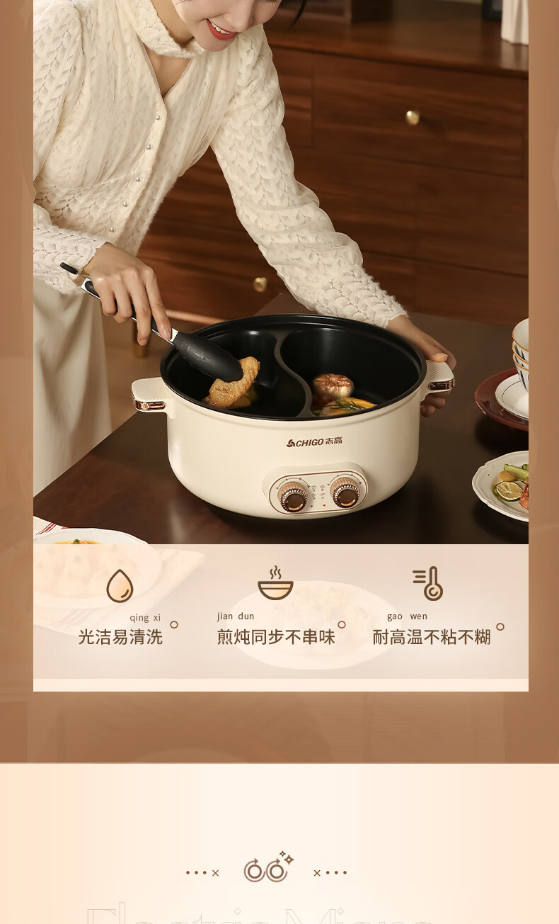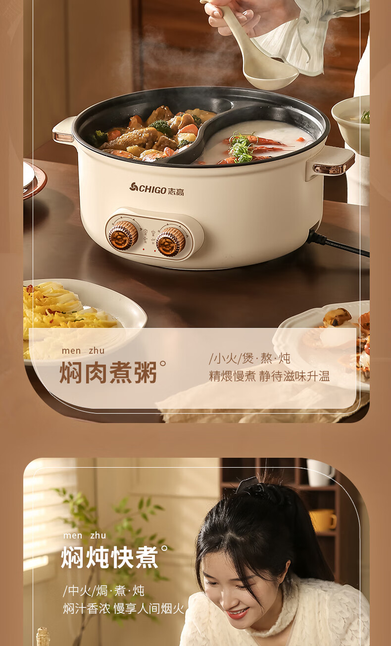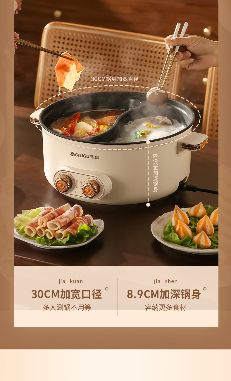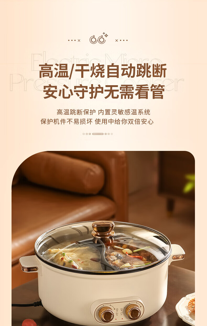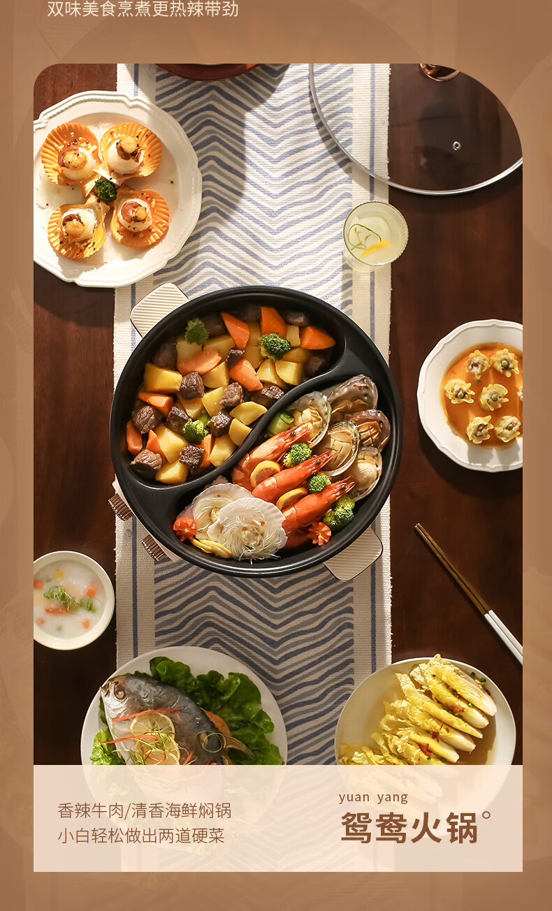 Skingcond German Yuanyang Electric Hot Pot Large Capacity Household All-in-one Yuanyang Pot Independent Temperature Control Multifunctional Non-stick Electric Cooking Pot 5.5L Bilateral Independent Temperature Control Yuanyang Pot Suitable for 2-5 People 1 Inch