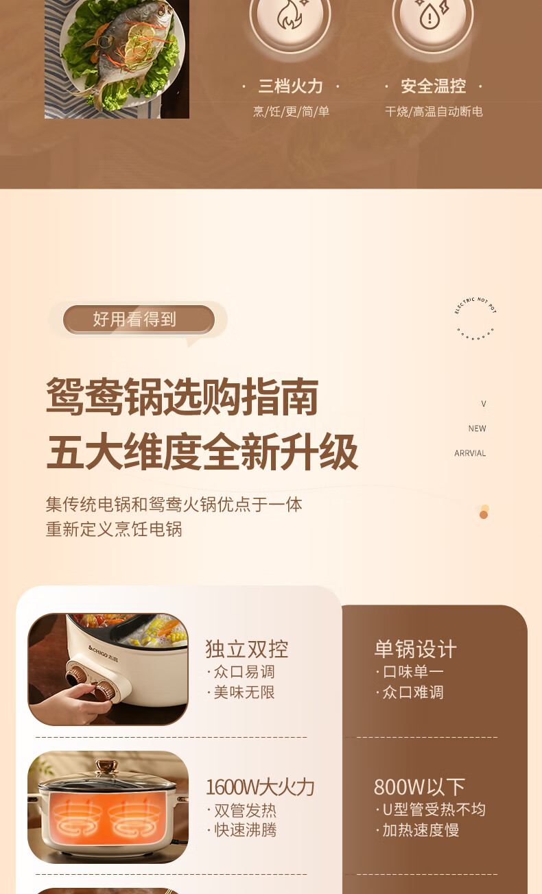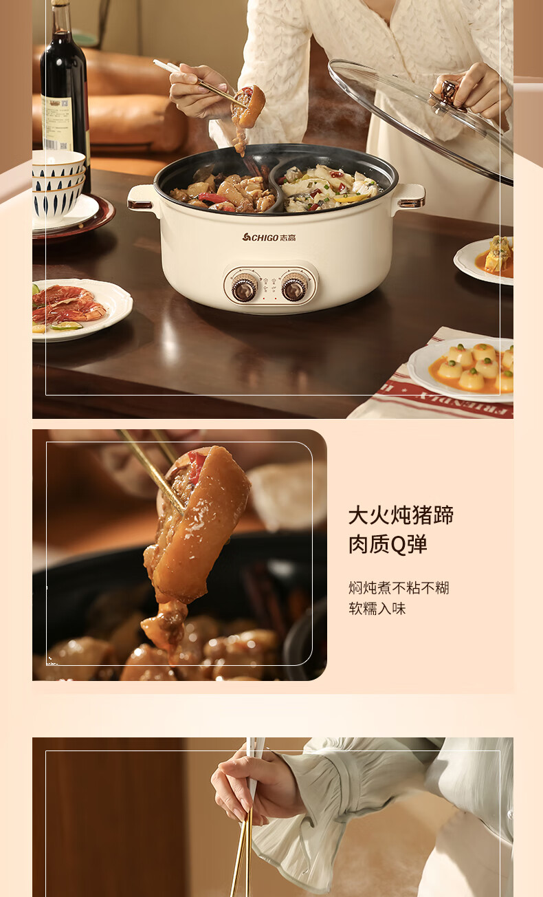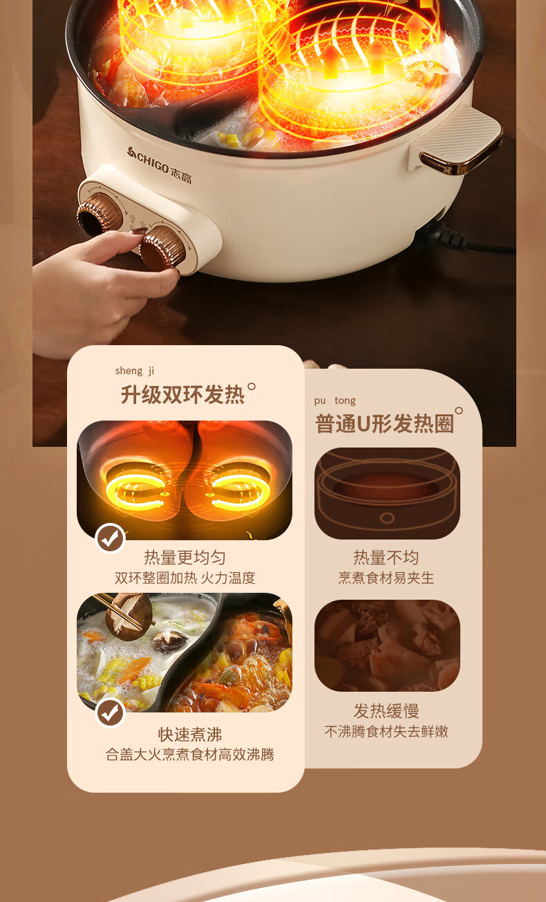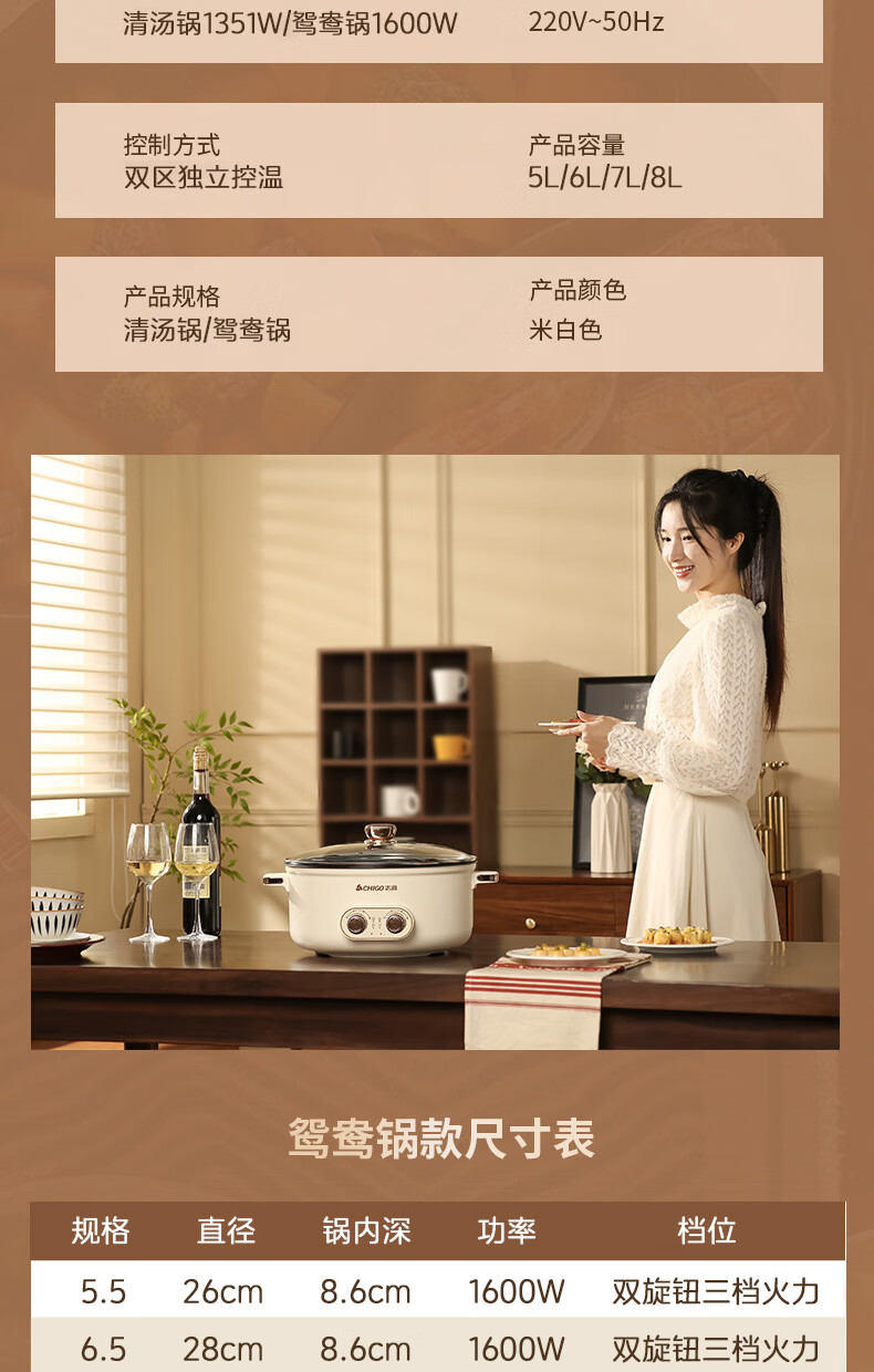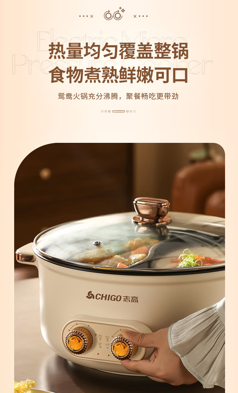 Skingcond German Yuanyang Electric Hot Pot Large Capacity Household All-in-one Yuanyang Pot Independent Temperature Control Multifunctional Non-stick Electric Cooking Pot 5.5L Bilateral Independent Temperature Control Yuanyang Pot Suitable for 2-5 People 1 Inch