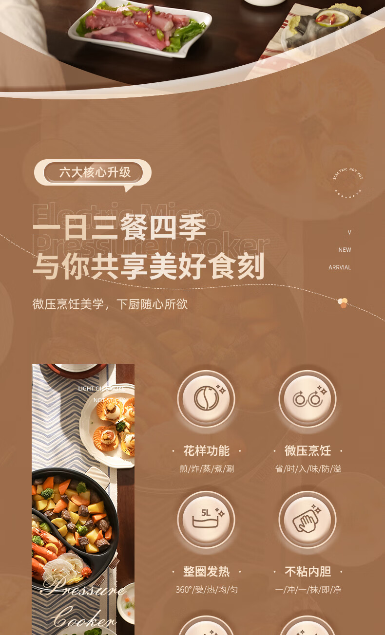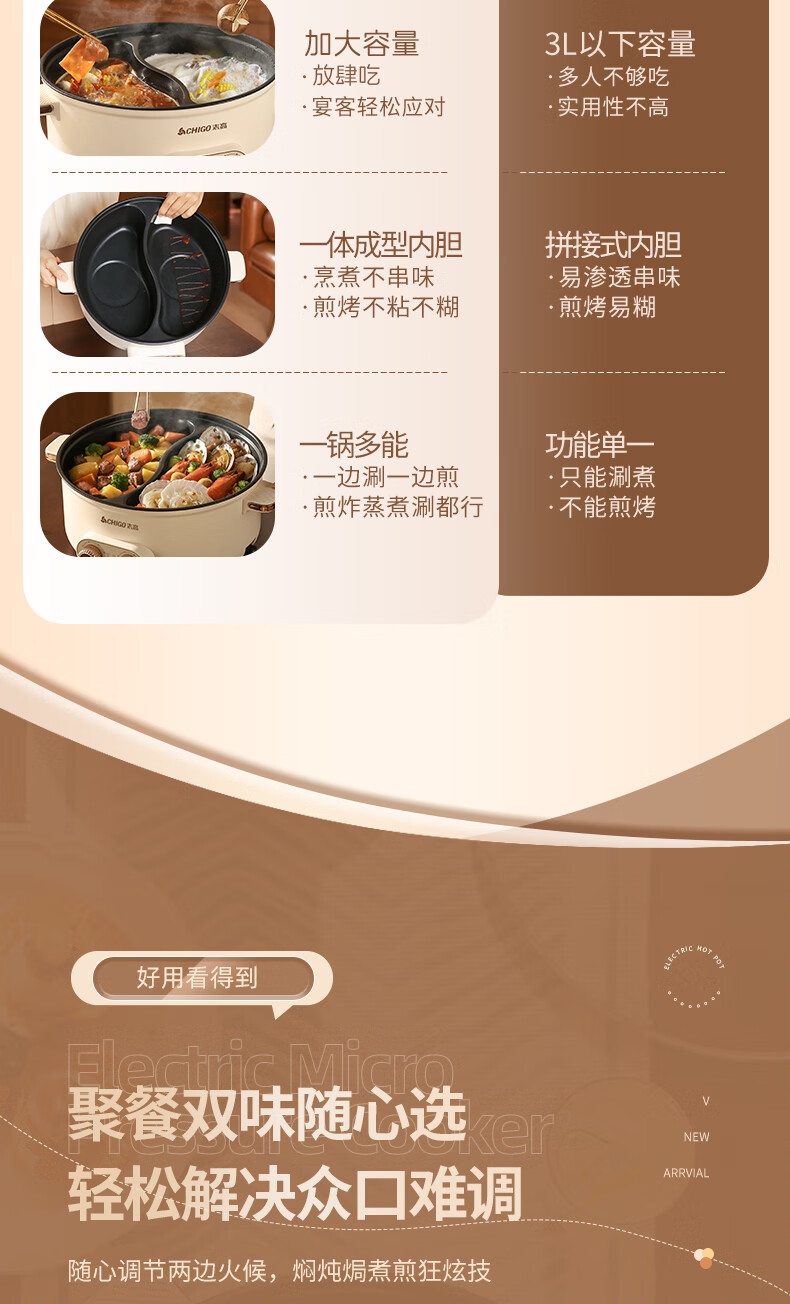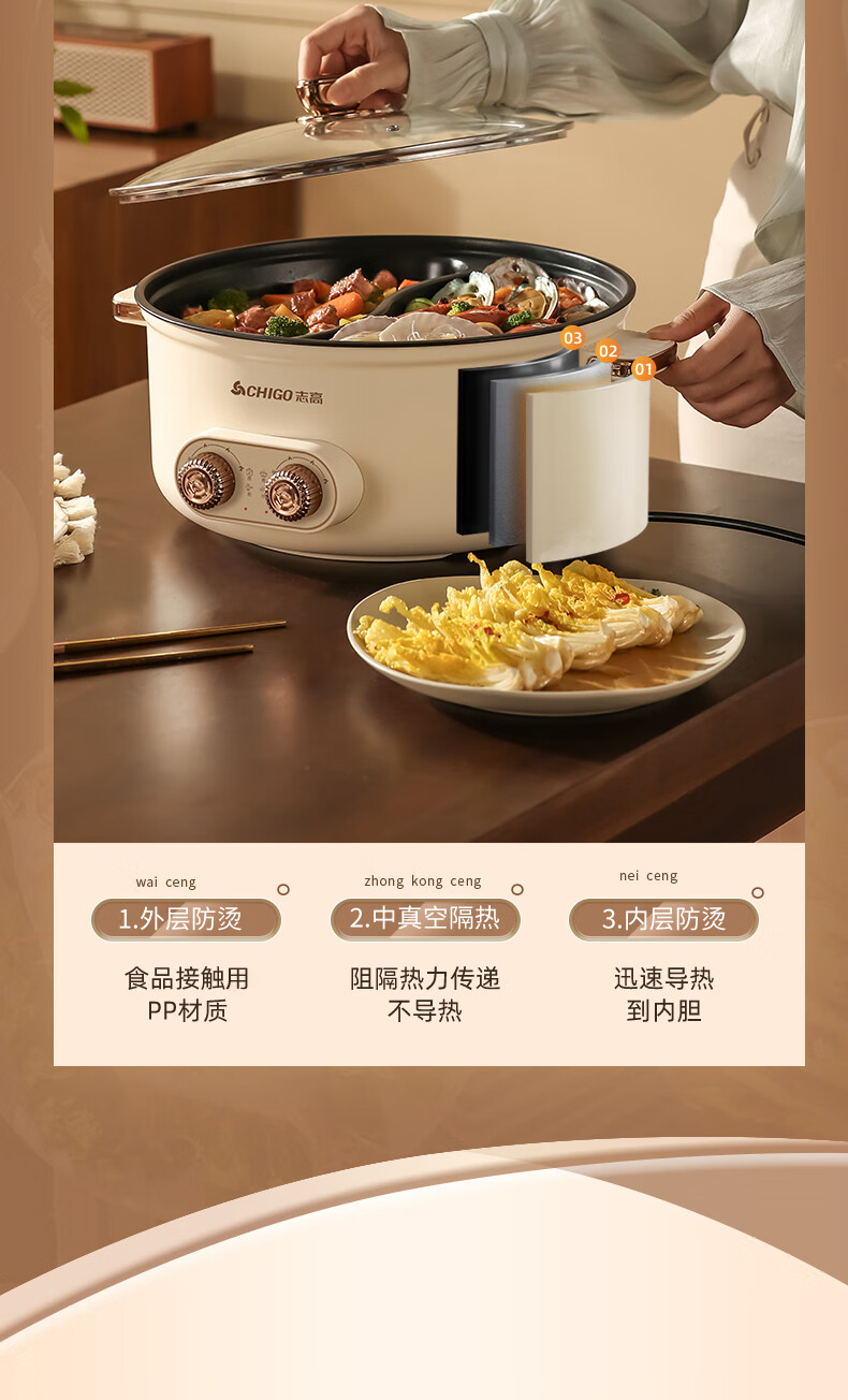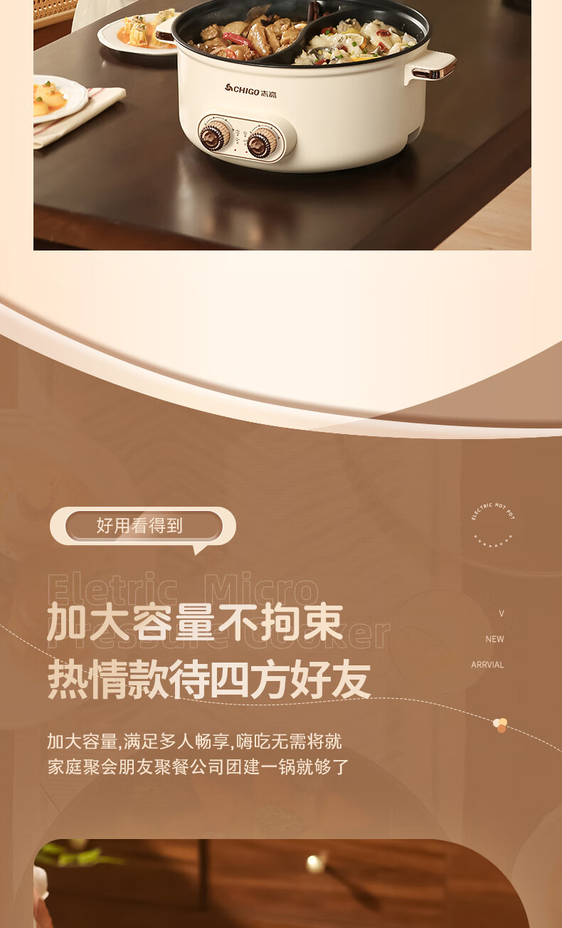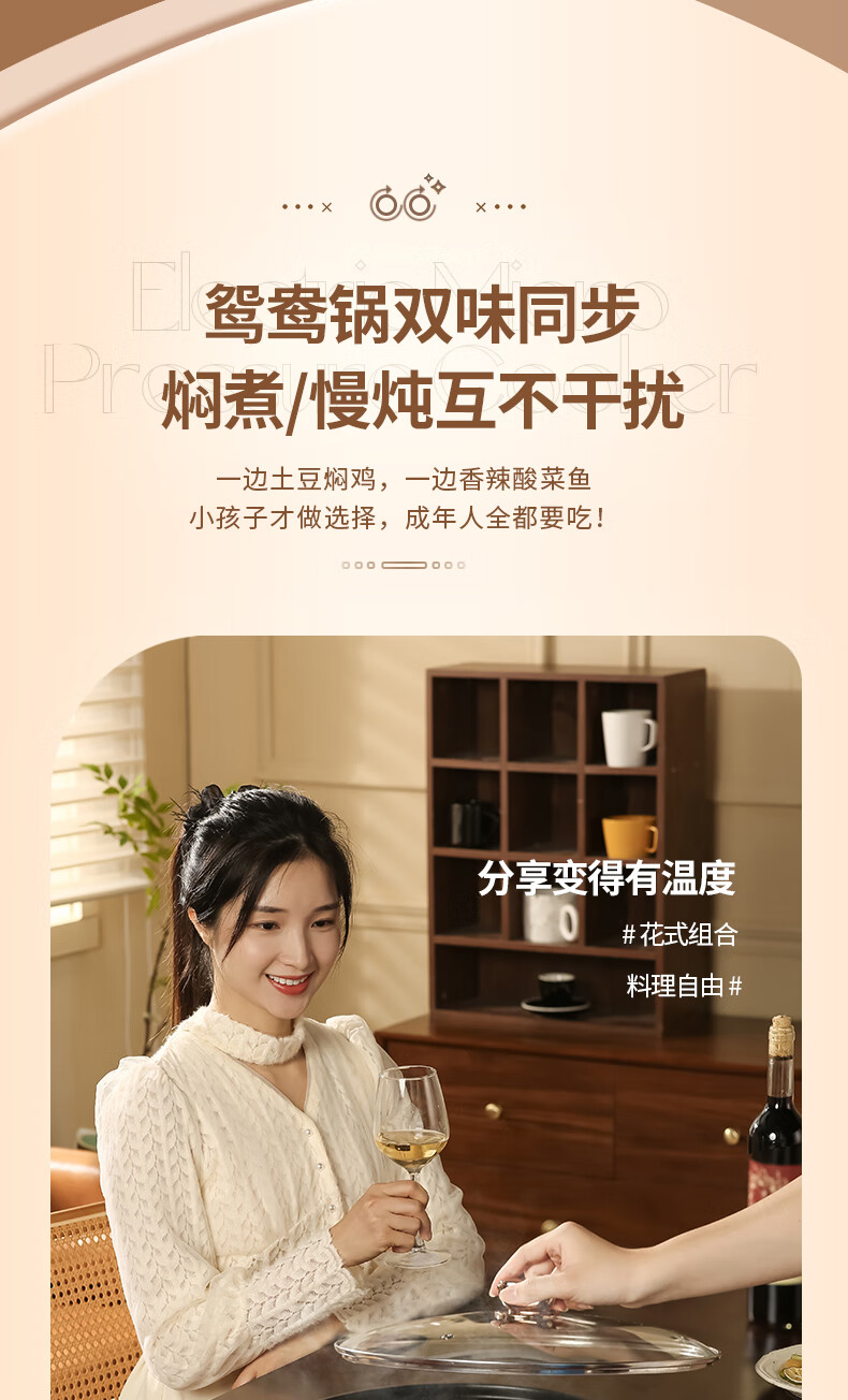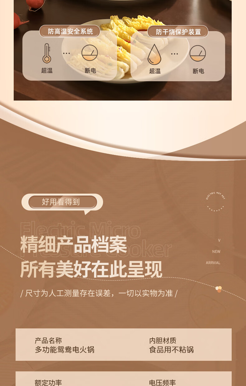 Skingcond German Yuanyang Electric Hot Pot Large Capacity Household All-in-one Yuanyang Pot Independent Temperature Control Multifunctional Non-stick Electric Cooking Pot 5.5L Bilateral Independent Temperature Control Yuanyang Pot Suitable for 2-5 People 1 Inch