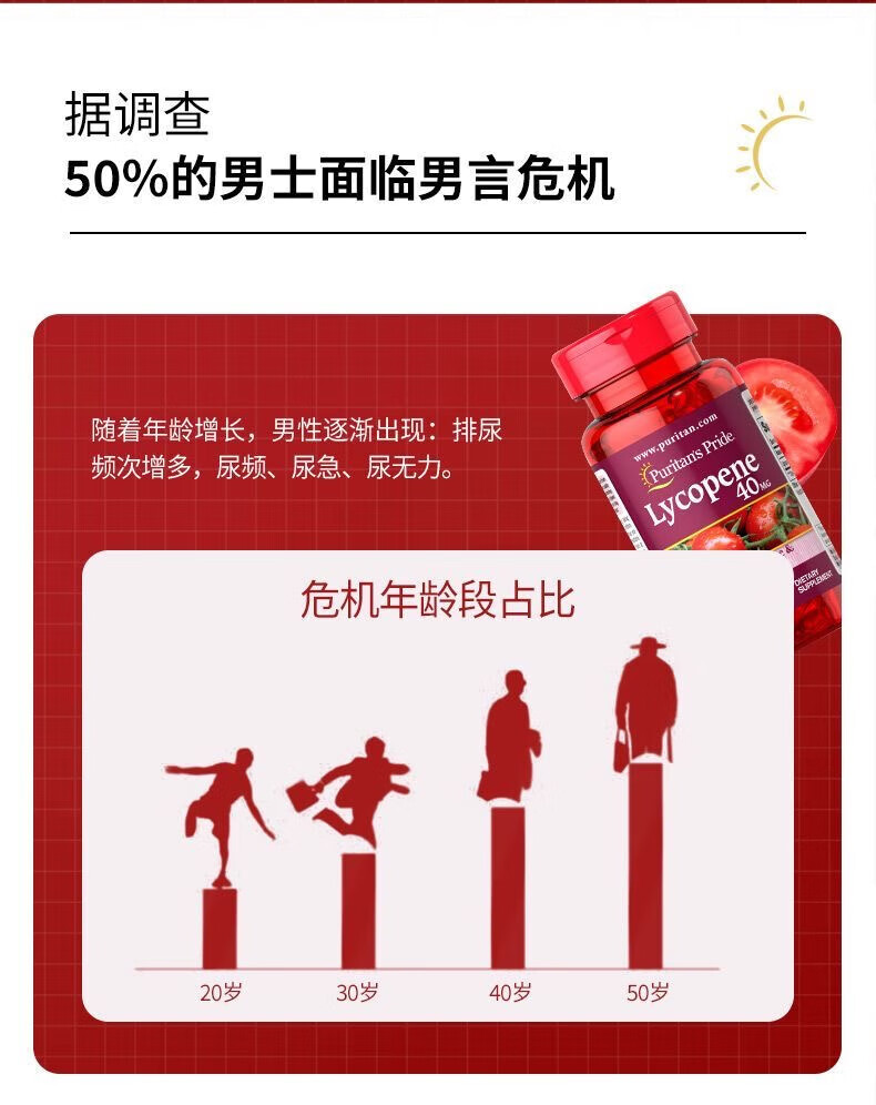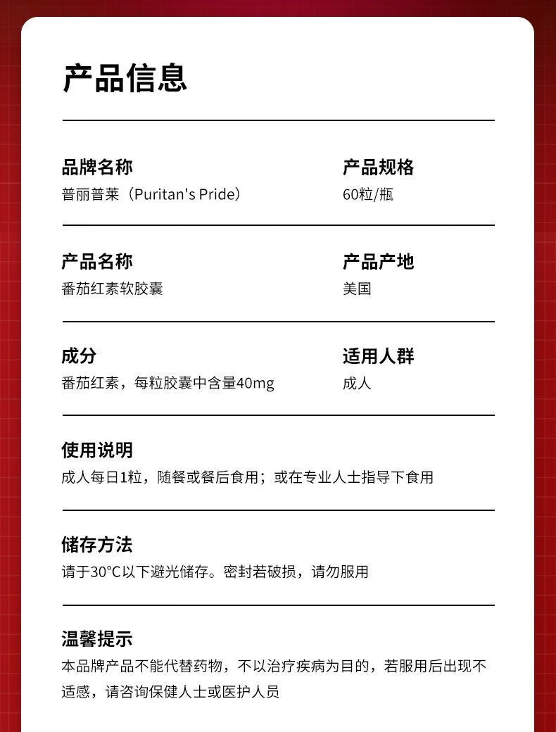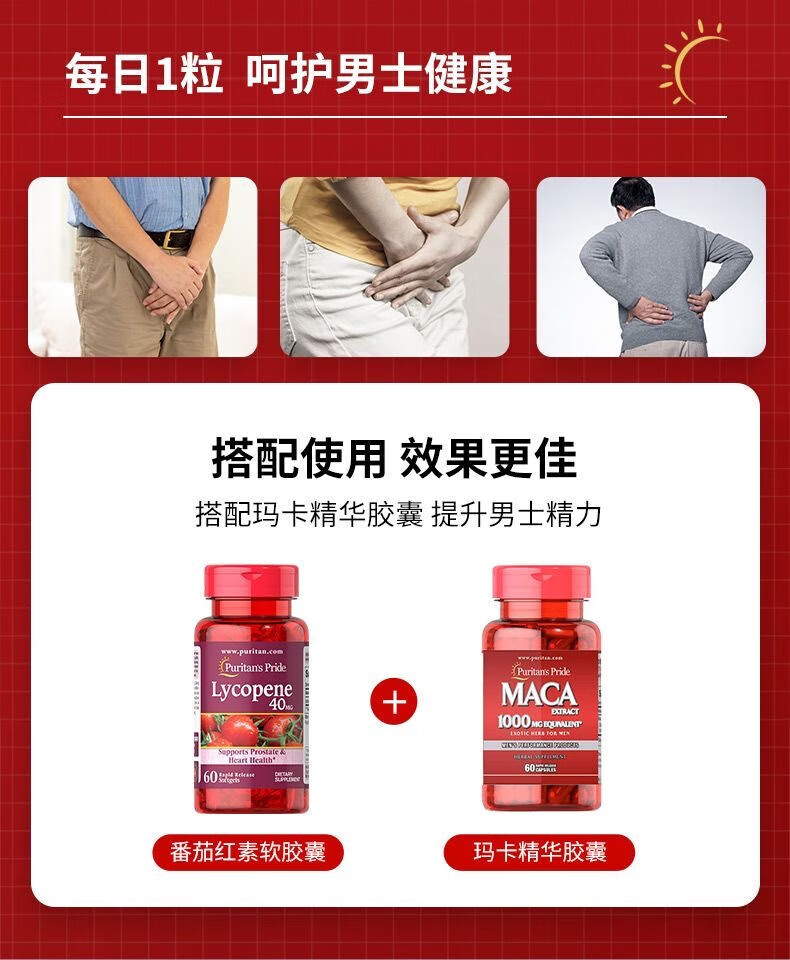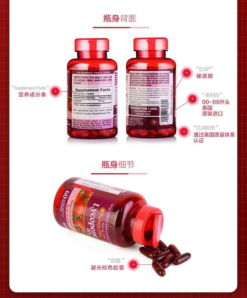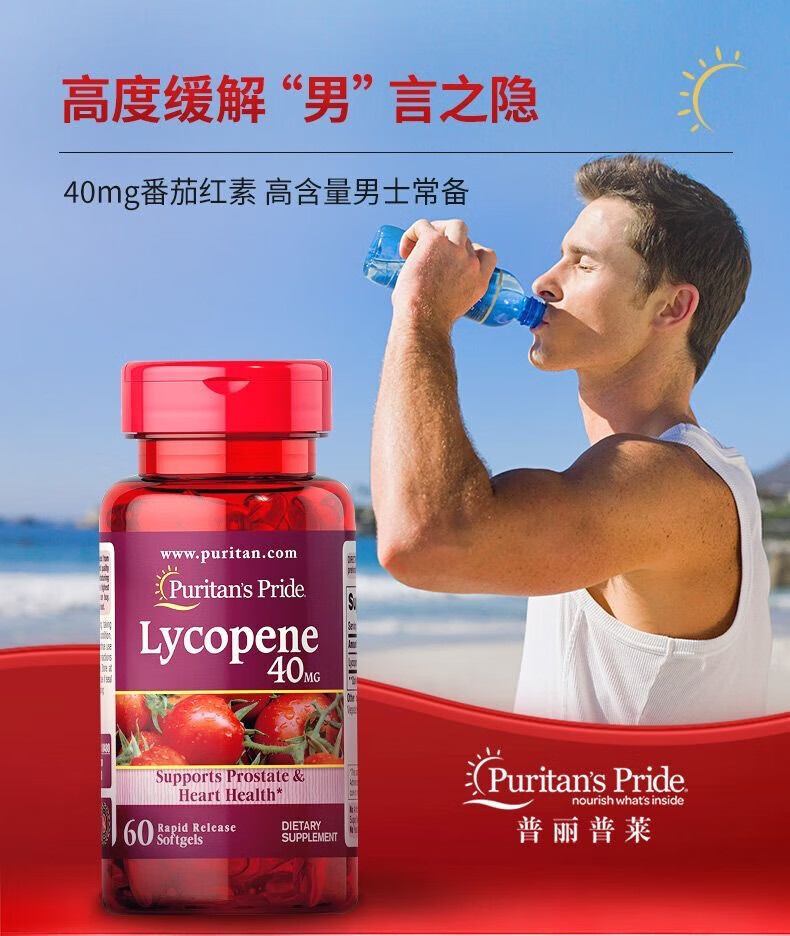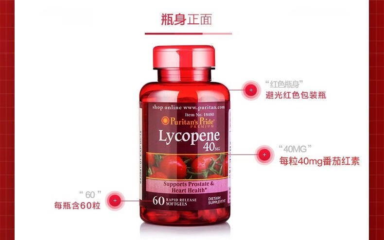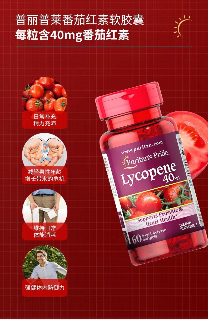 Puritan's Pride Lycopene Soft Capsules imported from the United States for men preparing for pregnancy and prostate to improve sperm motility for men Lycopene 60 capsules/40mg